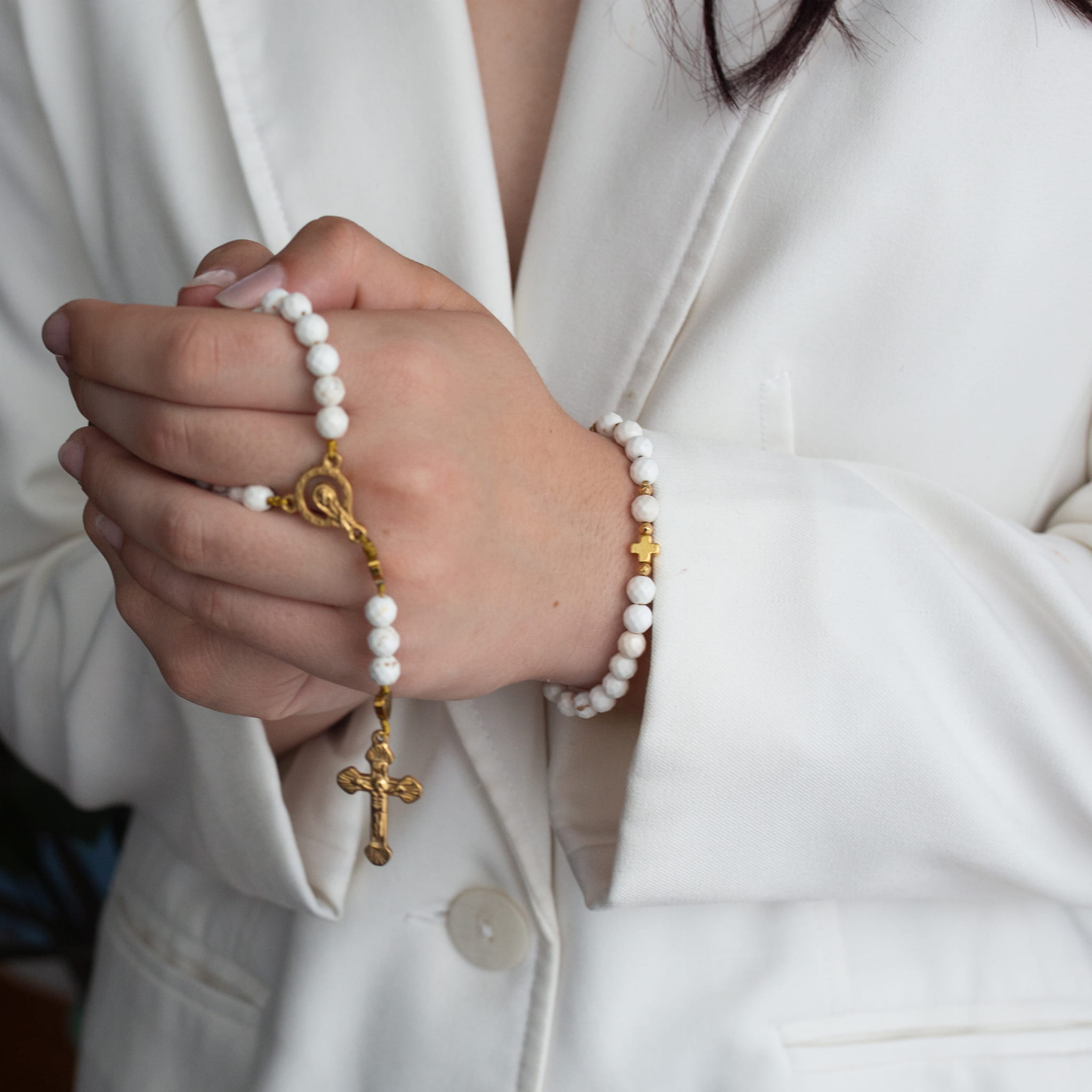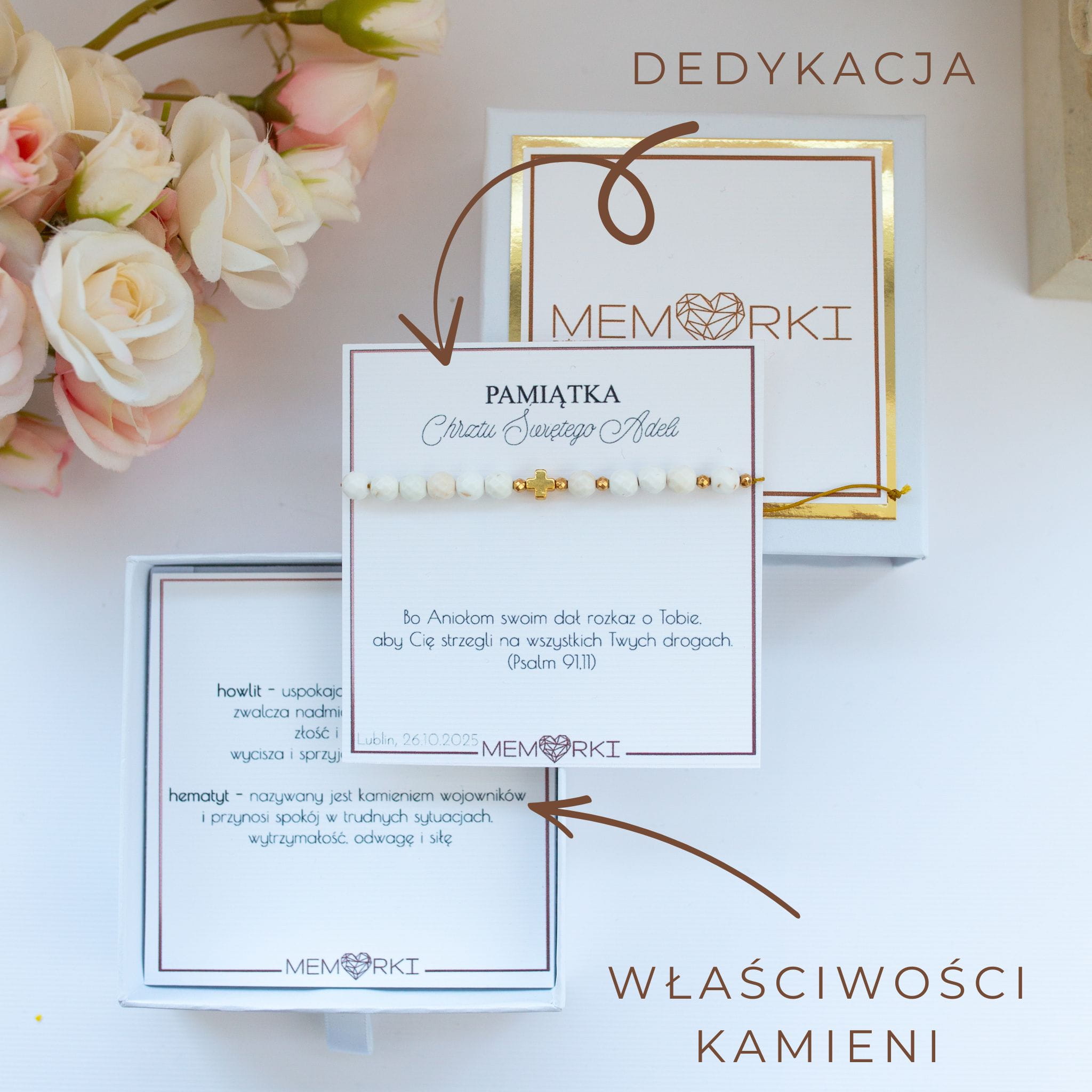 Każdy element został starannie wykonany, łącząc piękno natury z klasyczną symboliką wiary. Kamienie szlachetne nadają całości eleganckiego charakteru, a stal gwarantuje trwałość i odporność na codzienne użytkowanie.