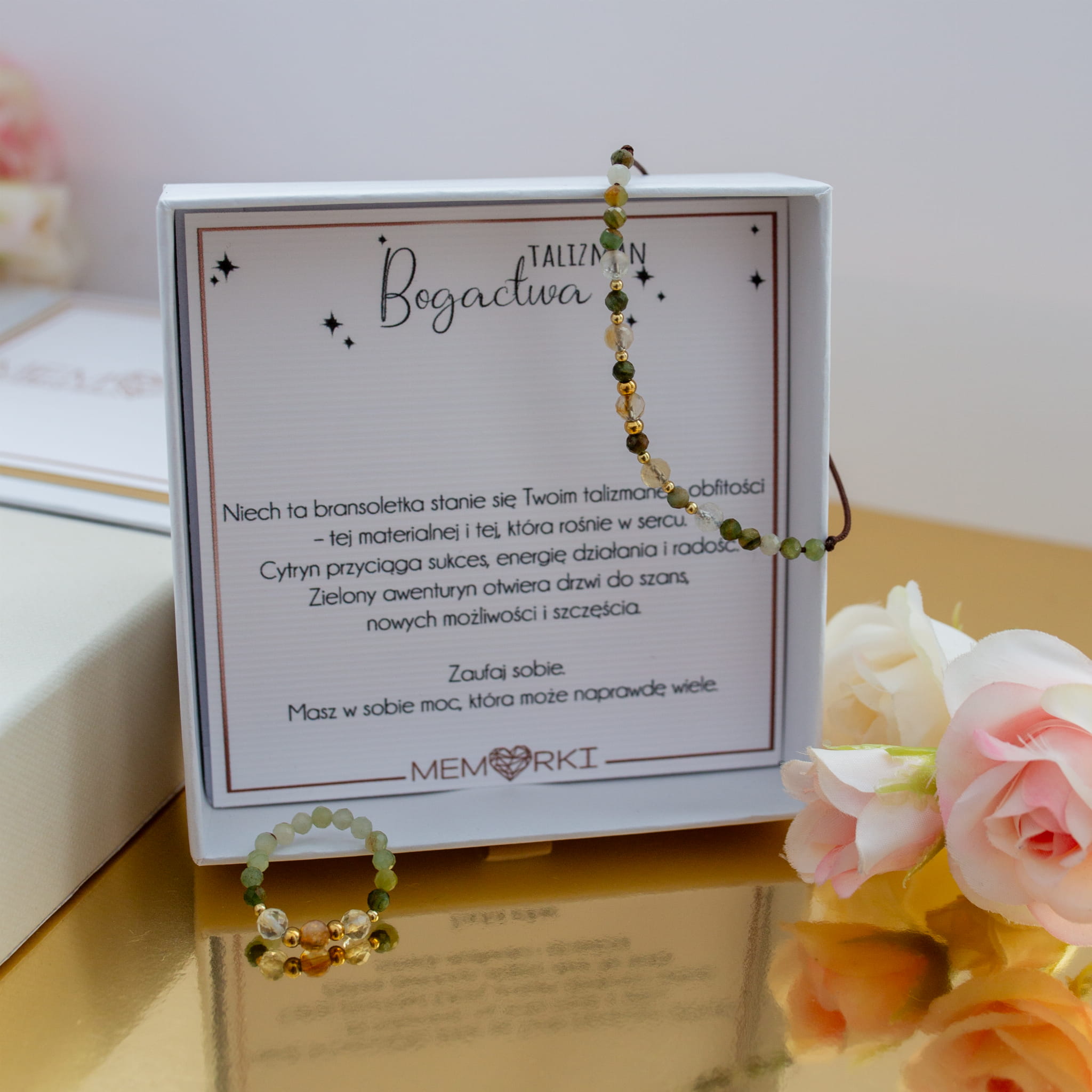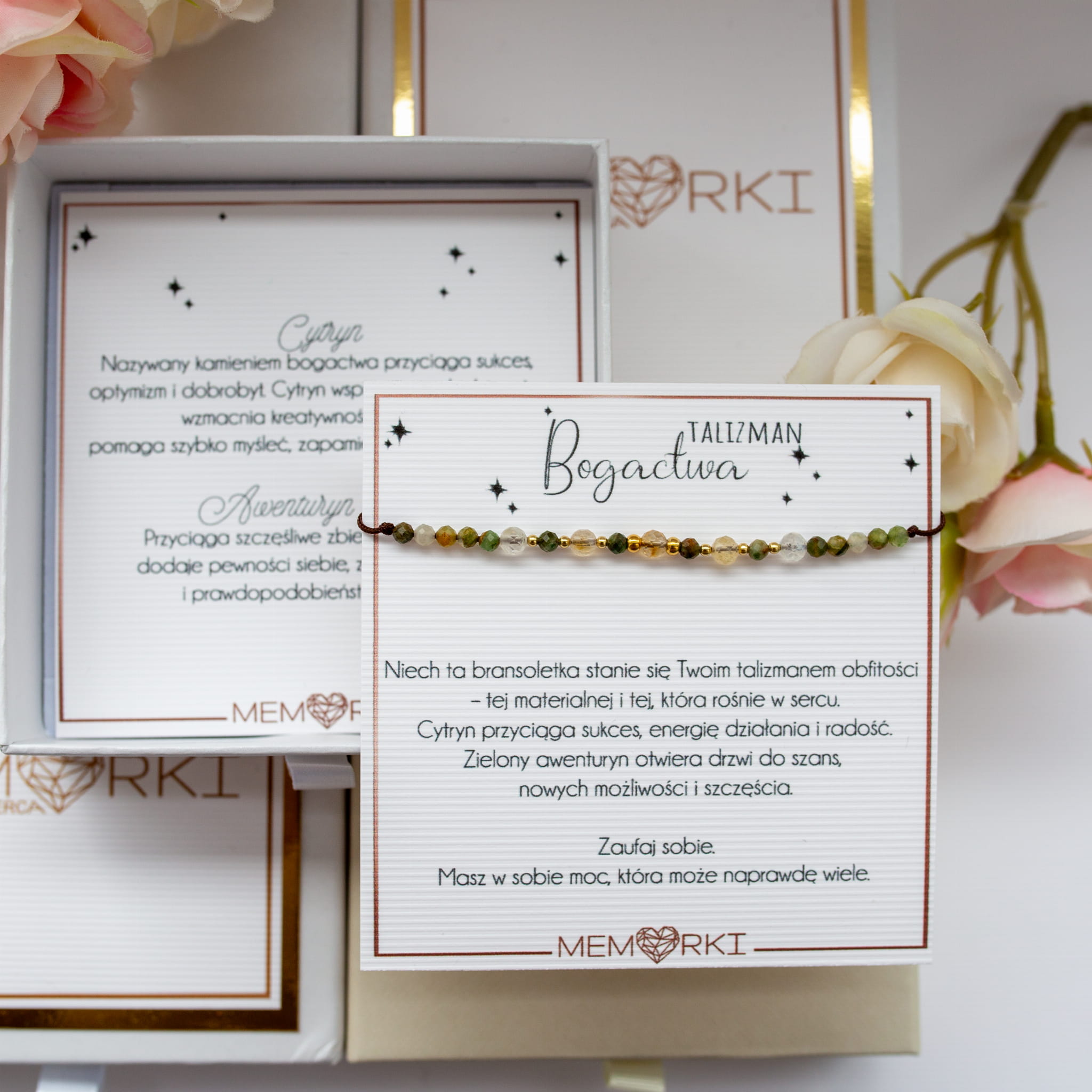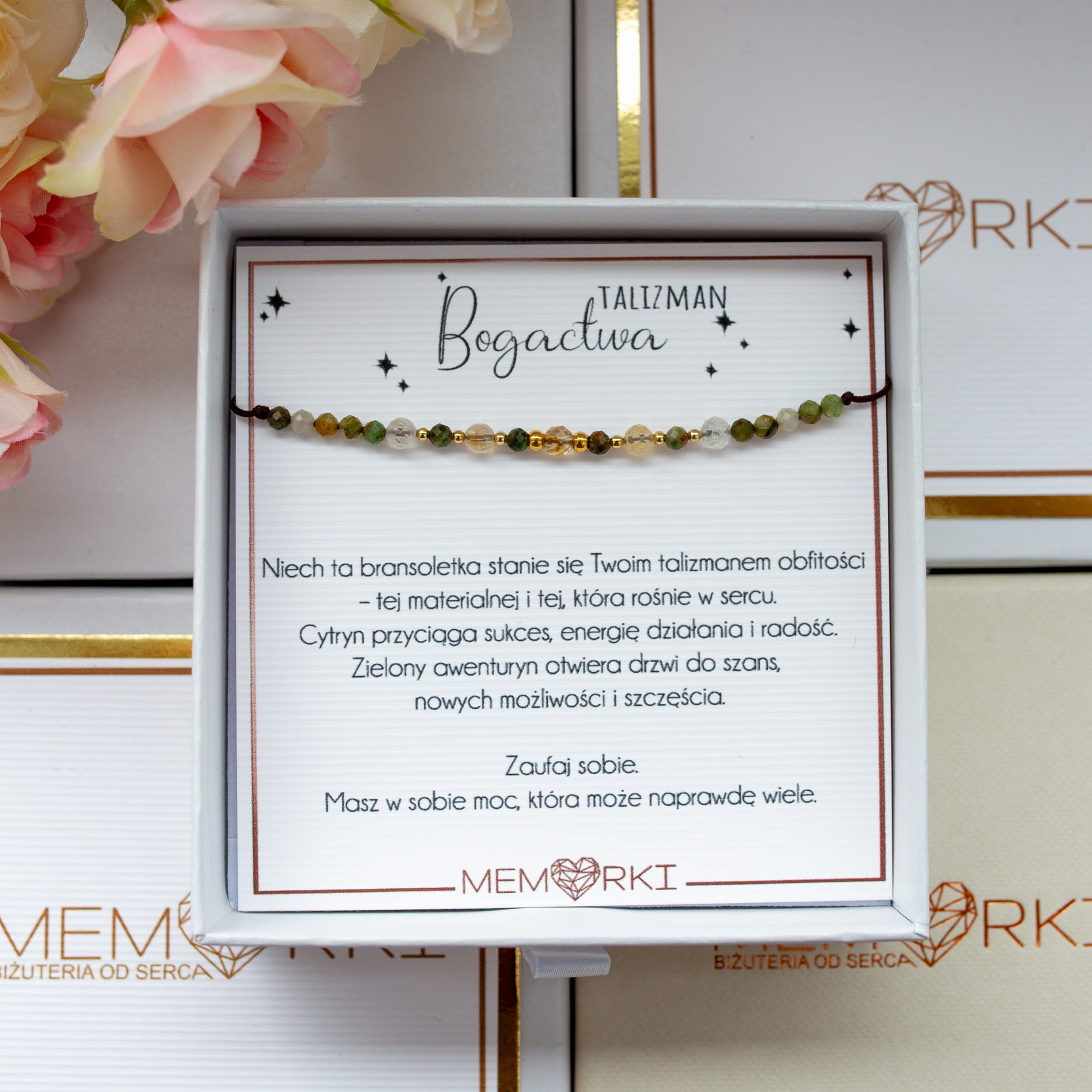 Bransoletka BOGACTWA z kolekcji Bransoletki Mocy, to delikatny rękodzielniczy wyrób z najwyższej jakości materiałów.
