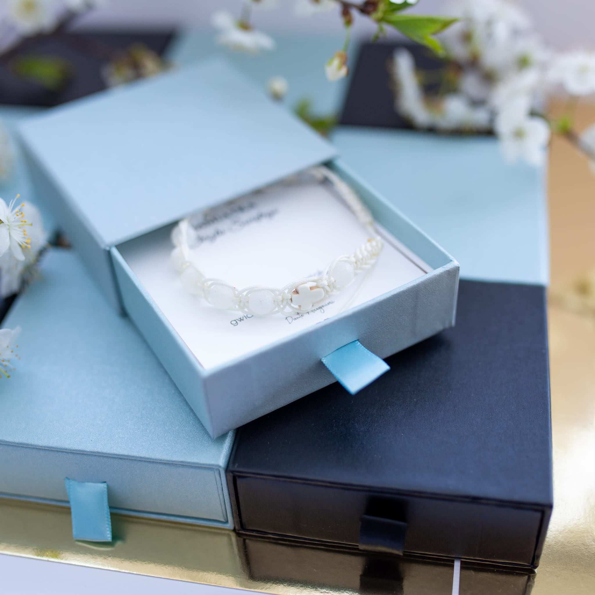 ransoletka RÓŻANIEC z kolekcji Pełni Wiary, to delikatny rękodzielniczy wyrób dostępny w 2 wariantach kolorystycznych.