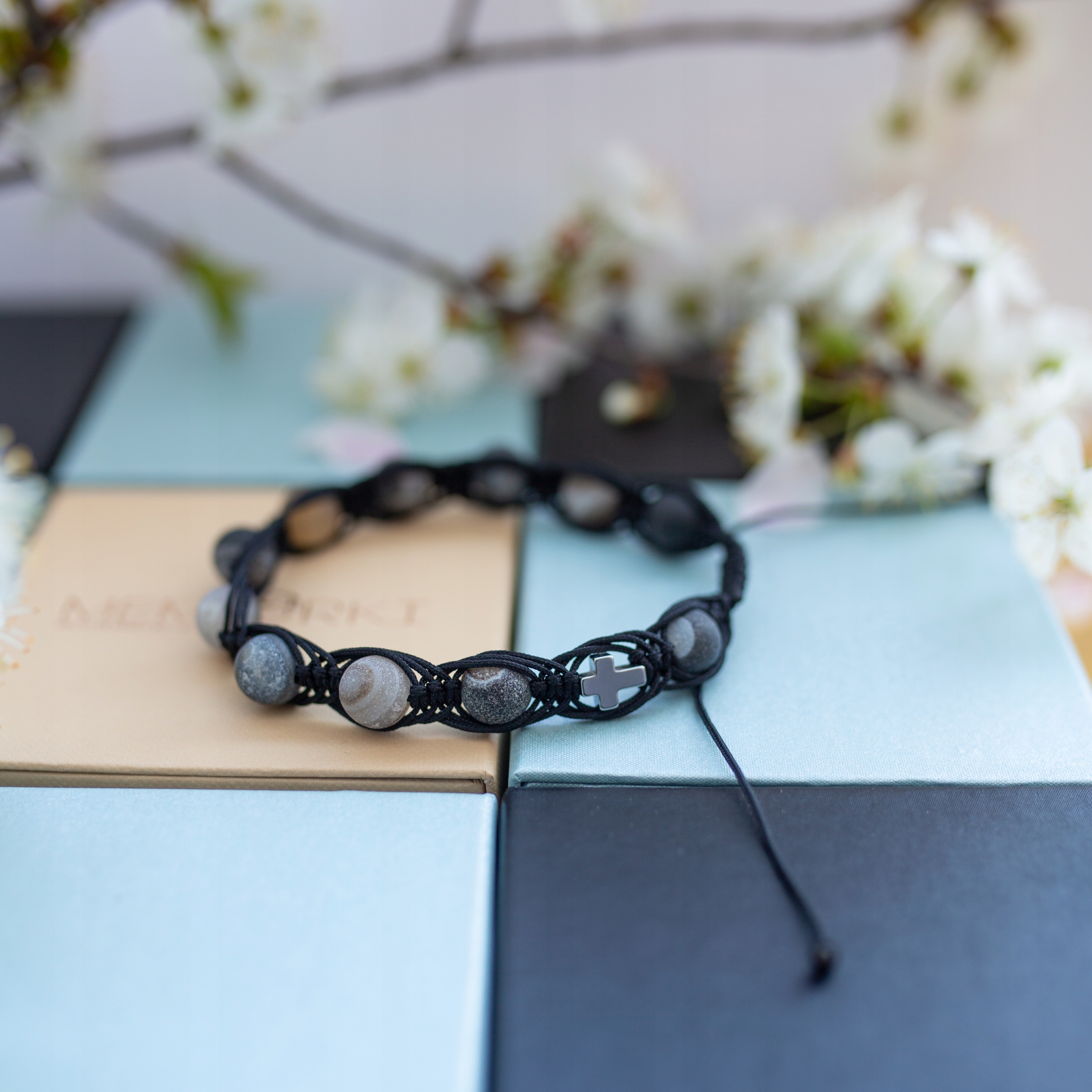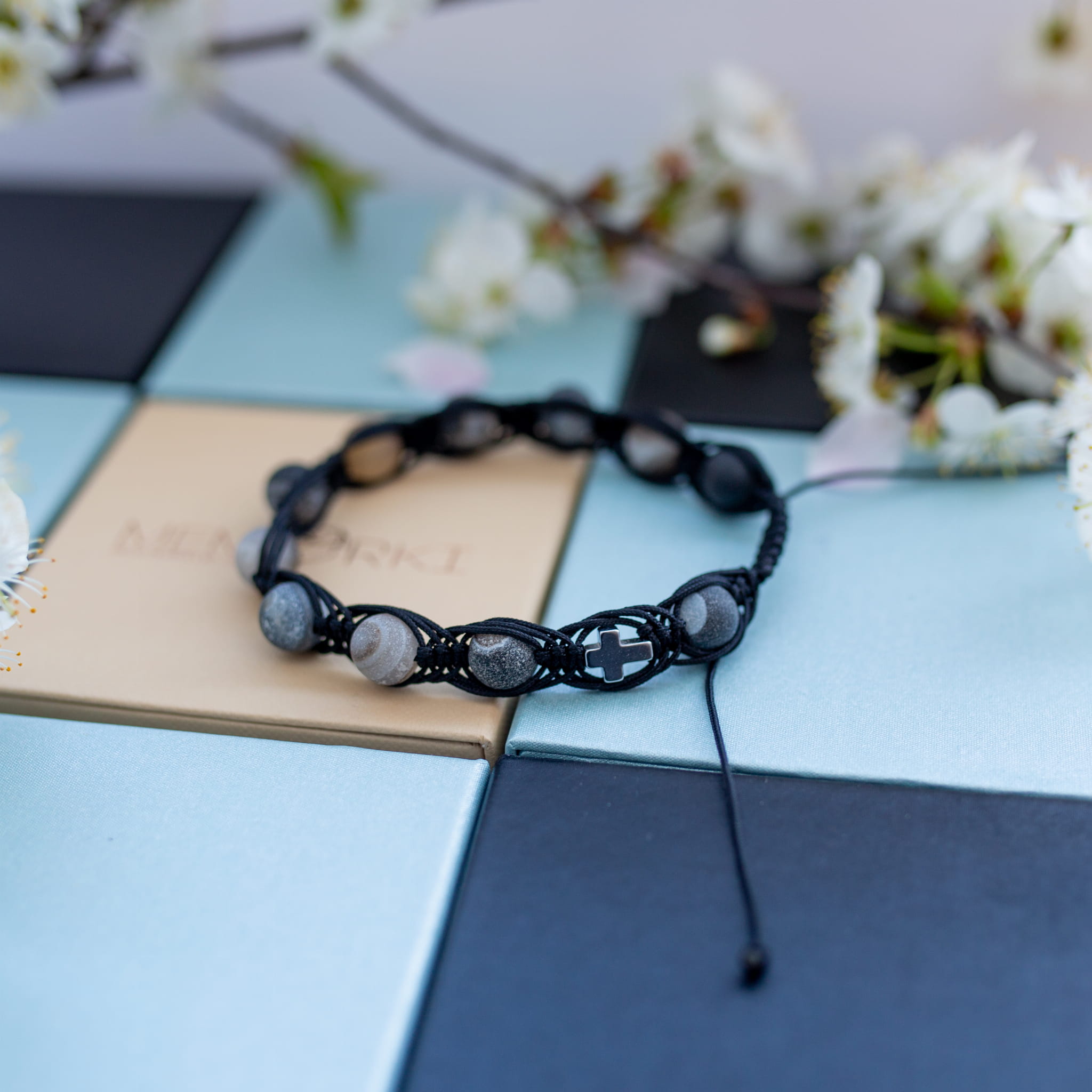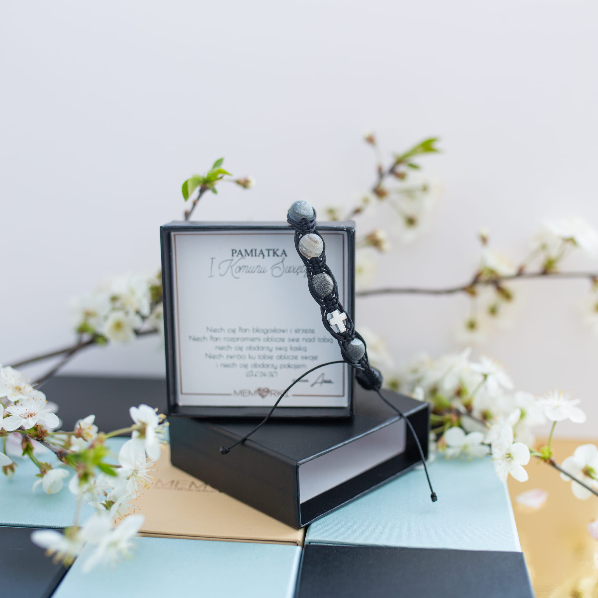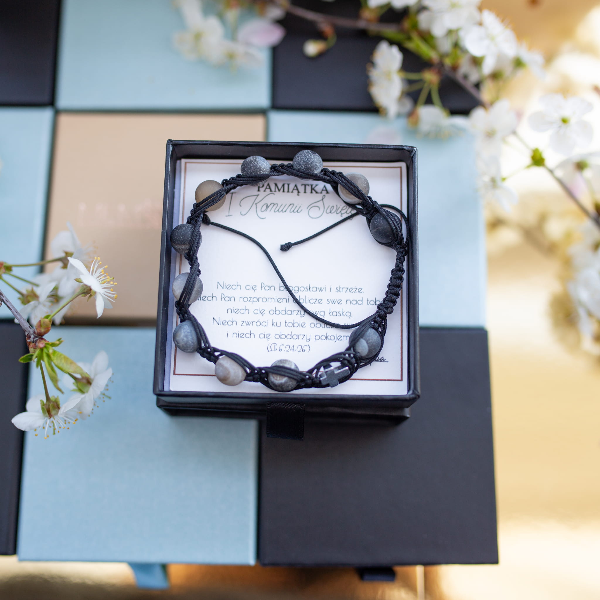 Misternie nanizane na bardzo wytrzymały sznureczek jubilerski kamienie naturalne w połączeniu z delikatnym krzyżykiem sprawdzą się doskonale jako drobiazgowa pamiątka z okazji Chrztu, I Komunii Świętej czy Bierzmowania.