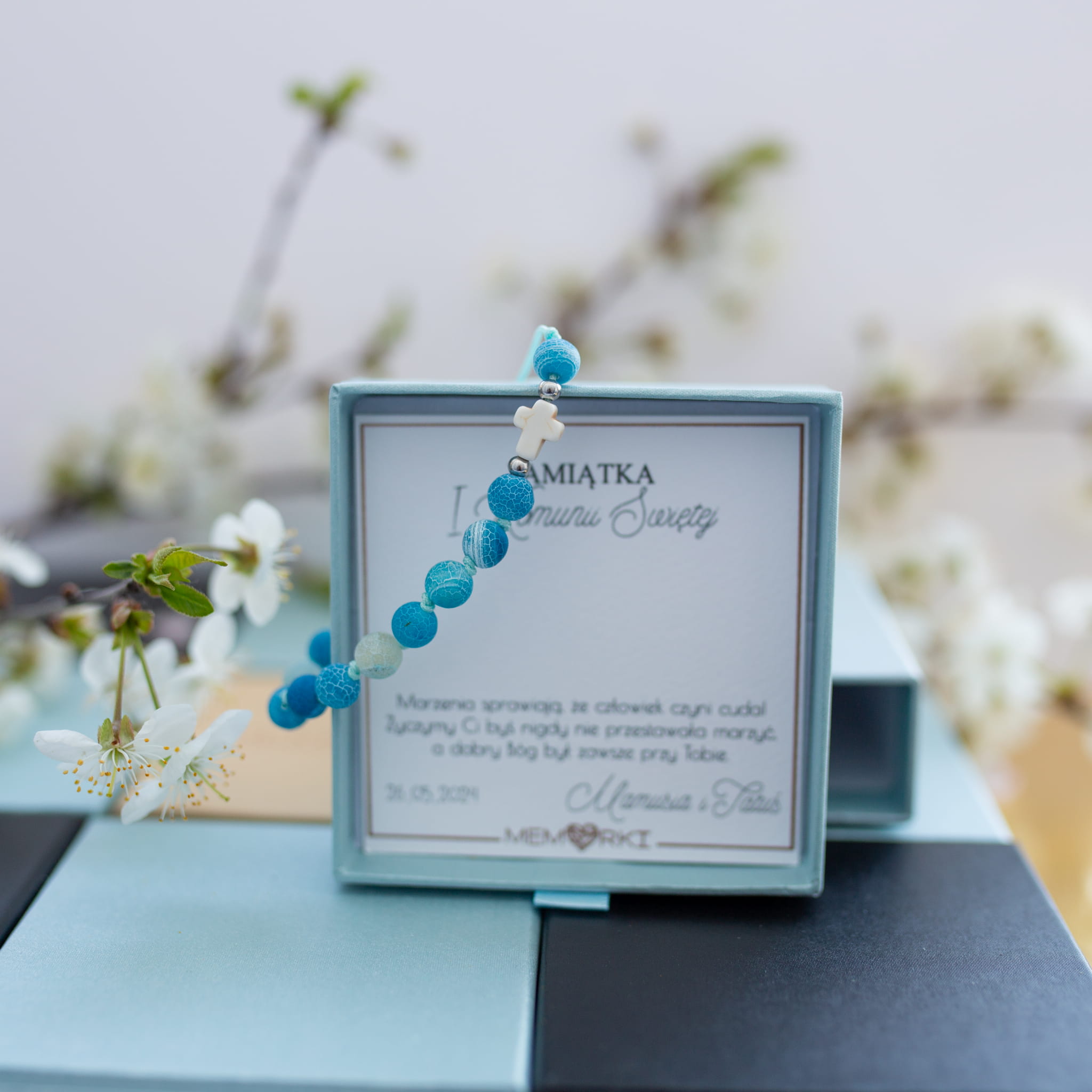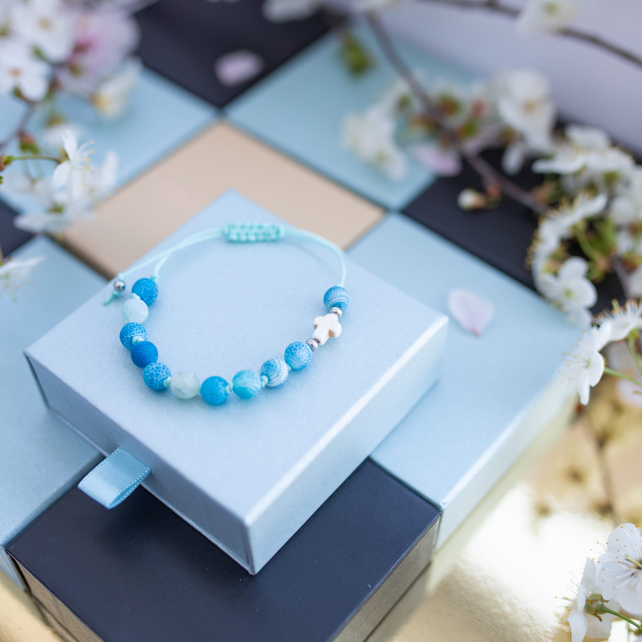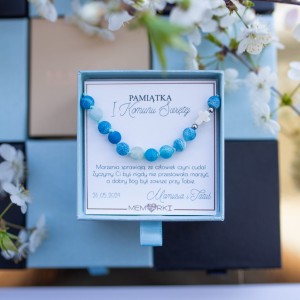 Misternie nanizane na bardzo wytrzymały sznurek jubilerski kamienie naturalne w połączeniu z delikatnym krzyżykiem i stalą chirurgiczną sprawdzą się doskonale jako drobiazgowa pamiątka z okazji Chrztu, I Komunii Świętej czy Bierzmowania.