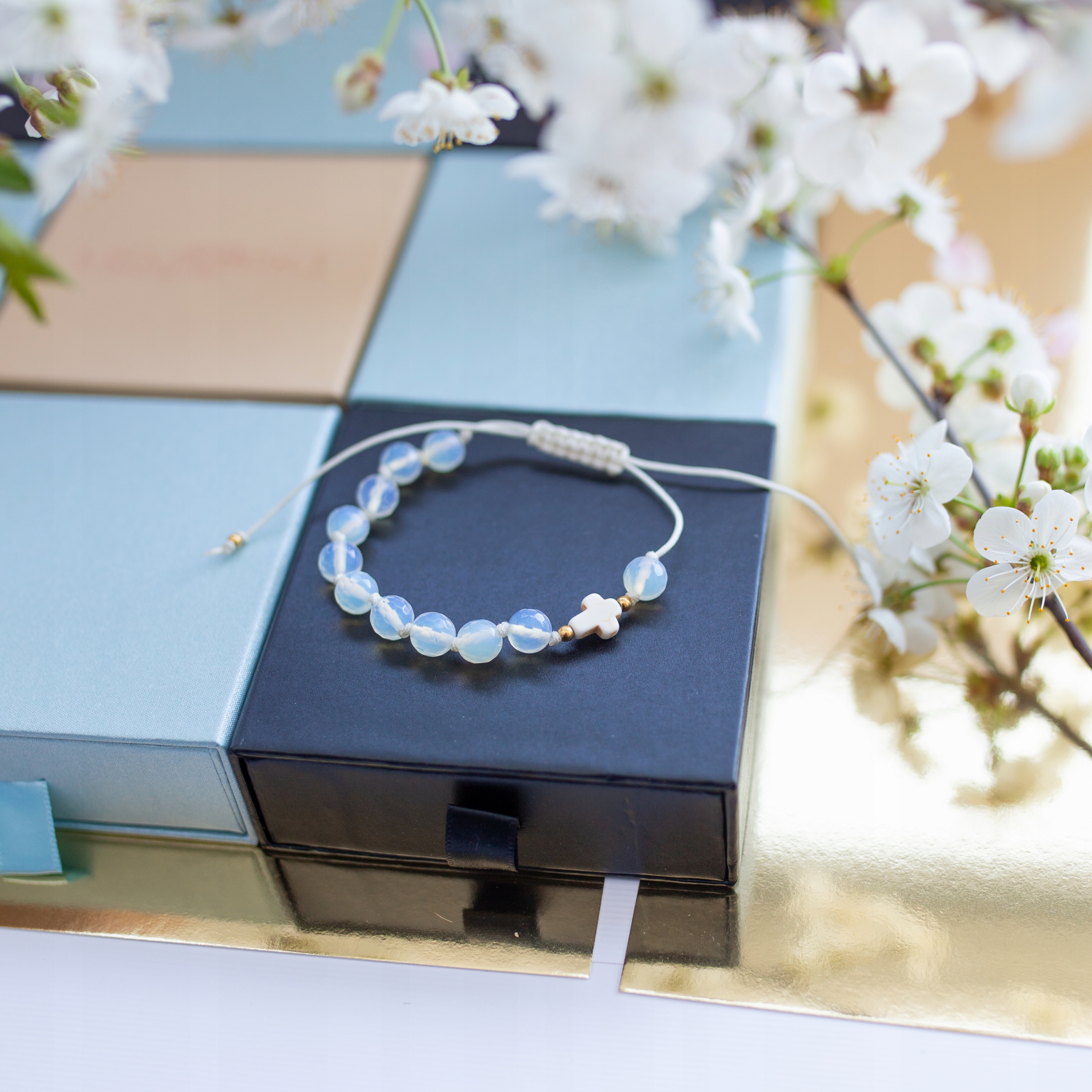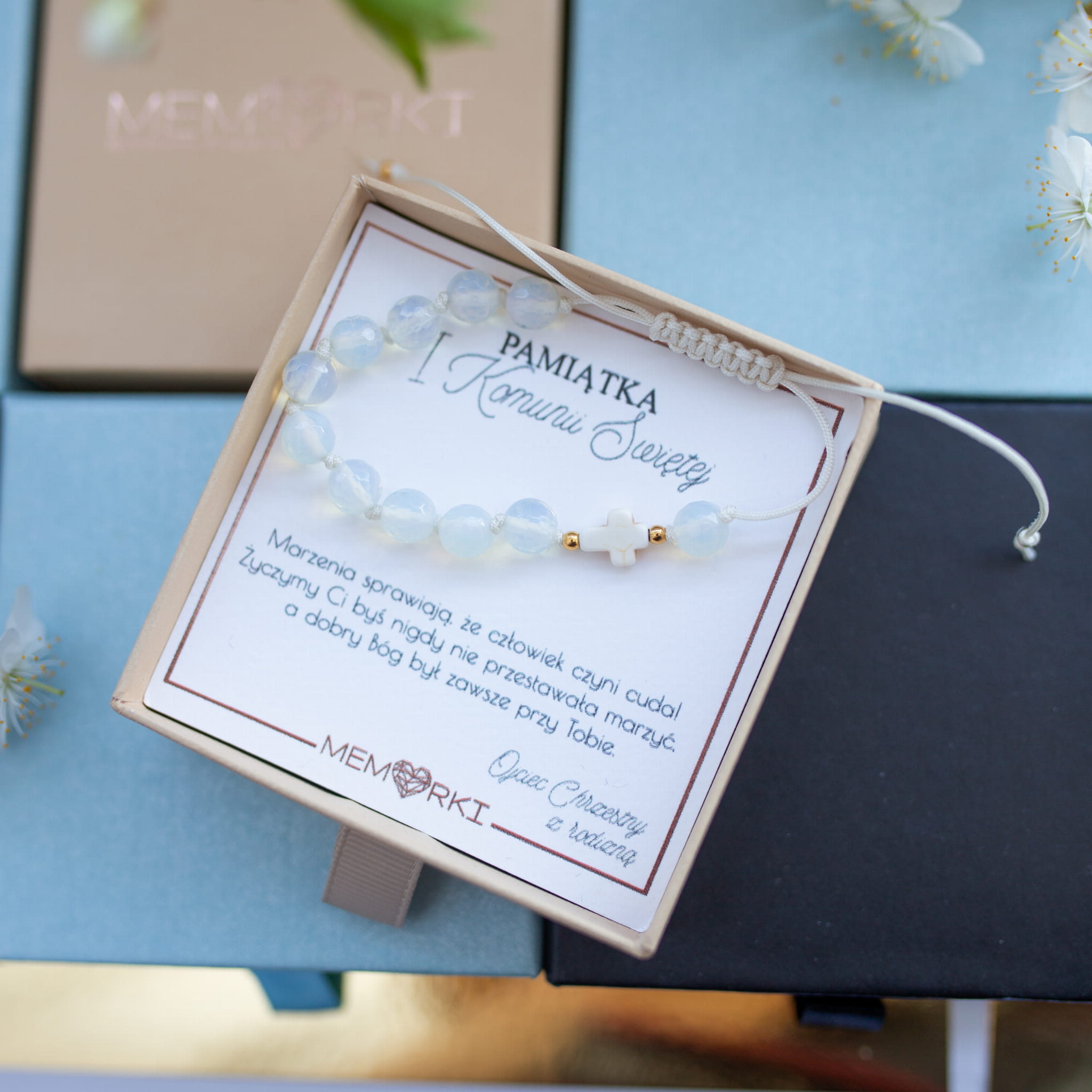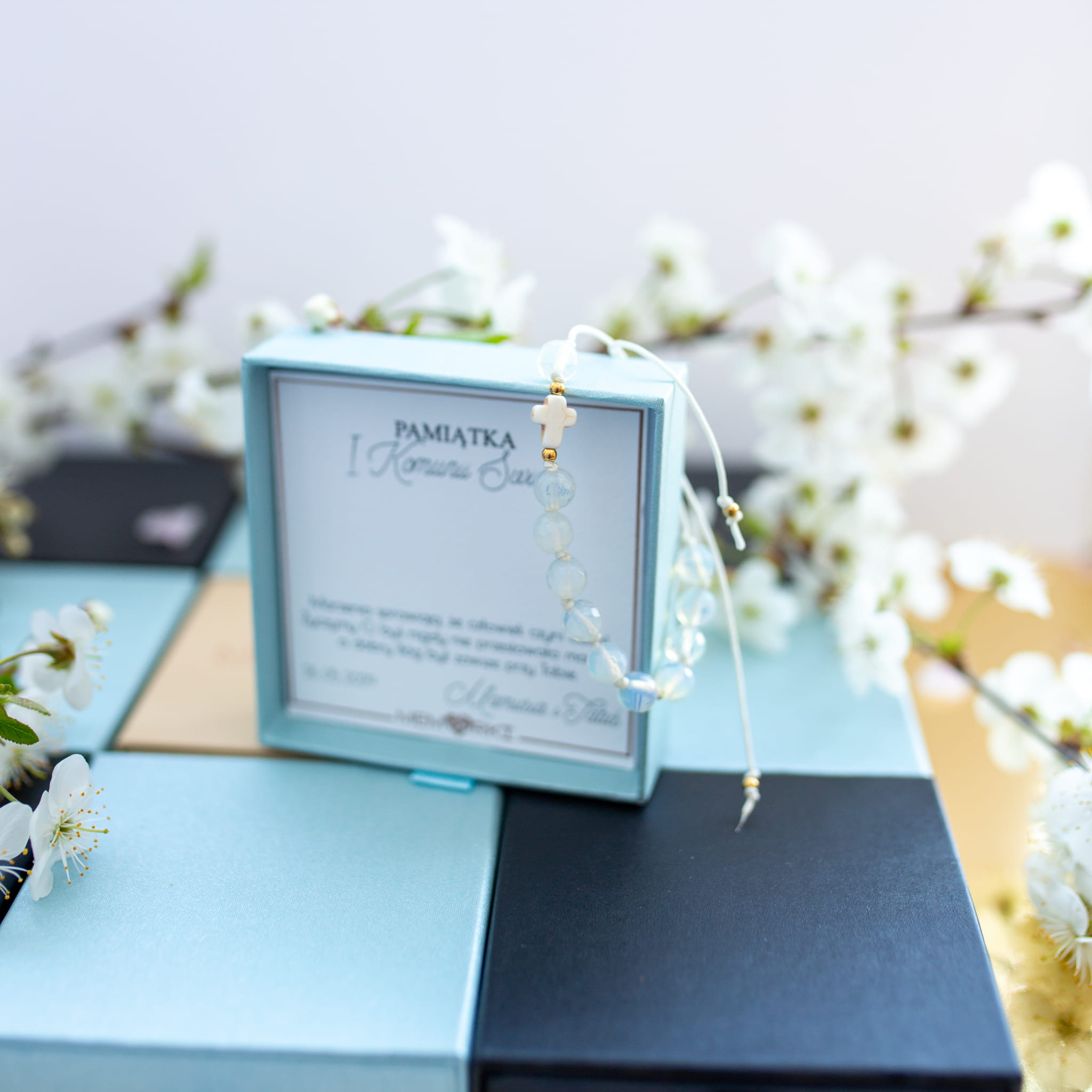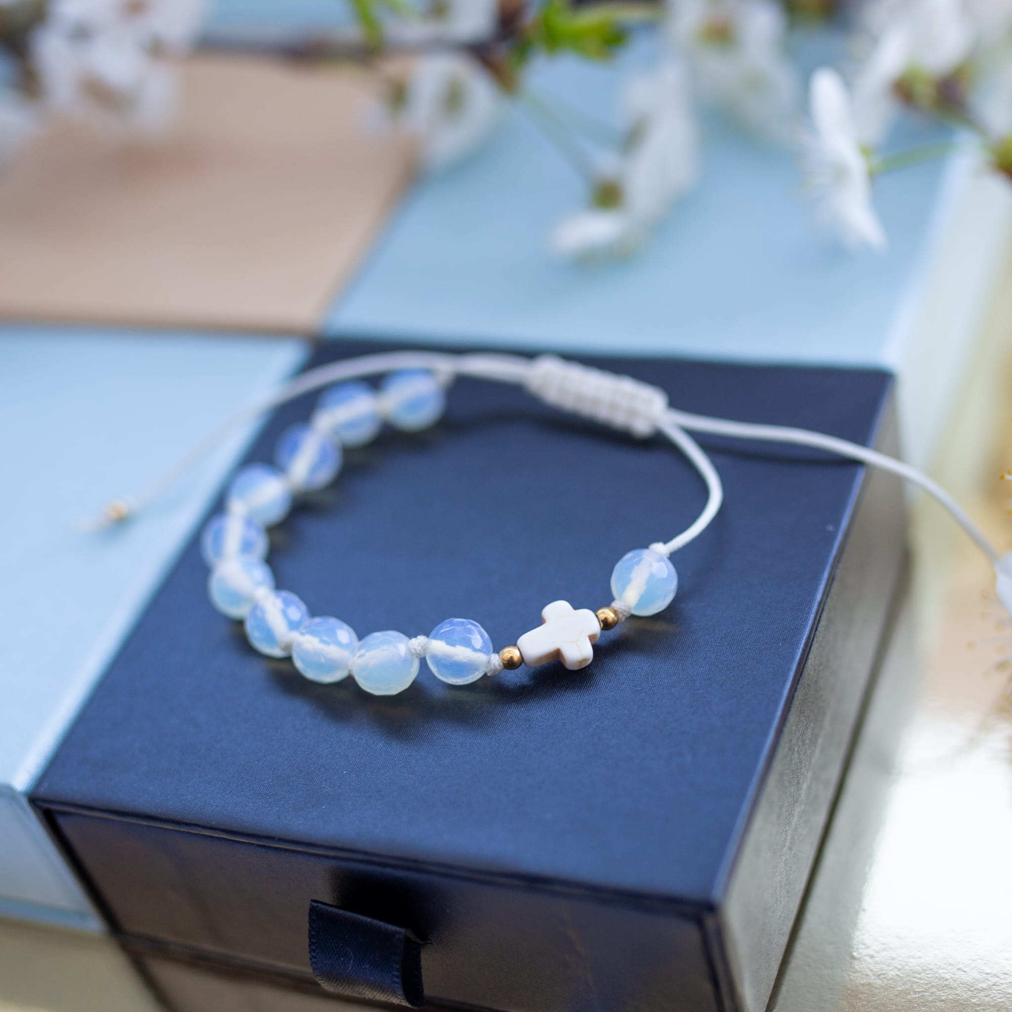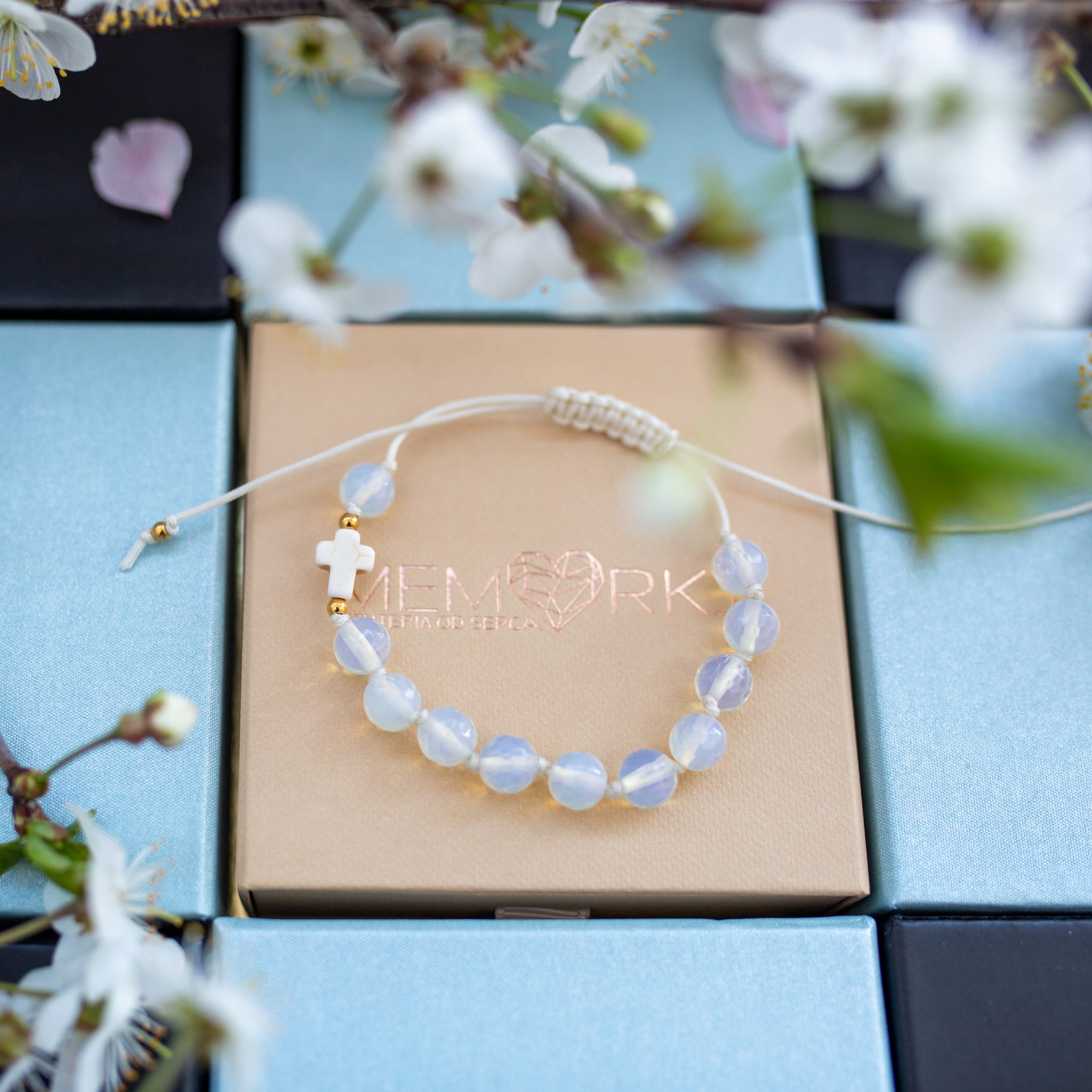 Misternie nanizane na bardzo wytrzymały sznurek jubilerski kamienie naturalne w połączeniu z delikatnym krzyżykiem i stalą chirurgiczną sprawdzą się doskonale jako drobiazgowa pamiątka z okazji Chrztu, I Komunii Świętej czy Bierzmowania.