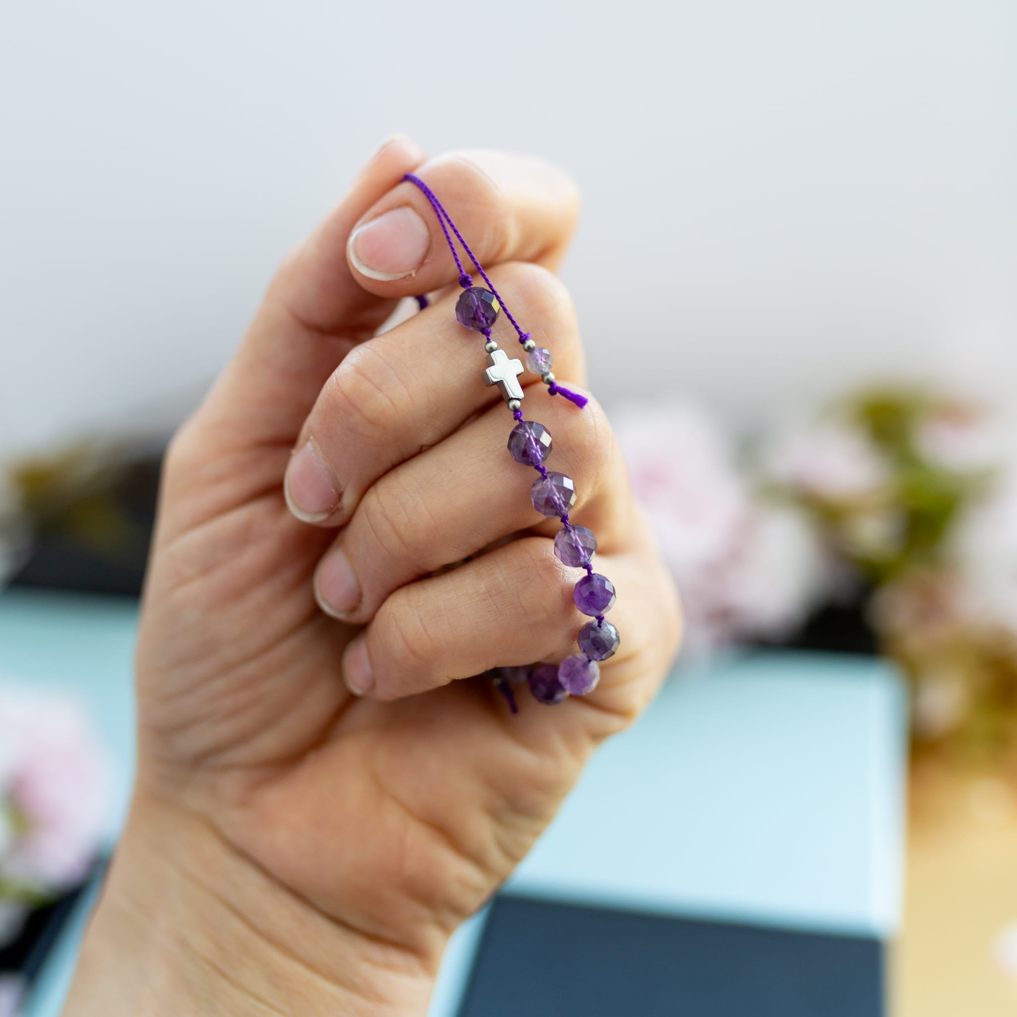 Bransoletka RÓŻANIEC z kolekcji Pełni Wiary, to delikatny rękodzielniczy wyrób dostępny w 2 wariantach kolorystycznych.