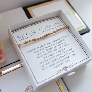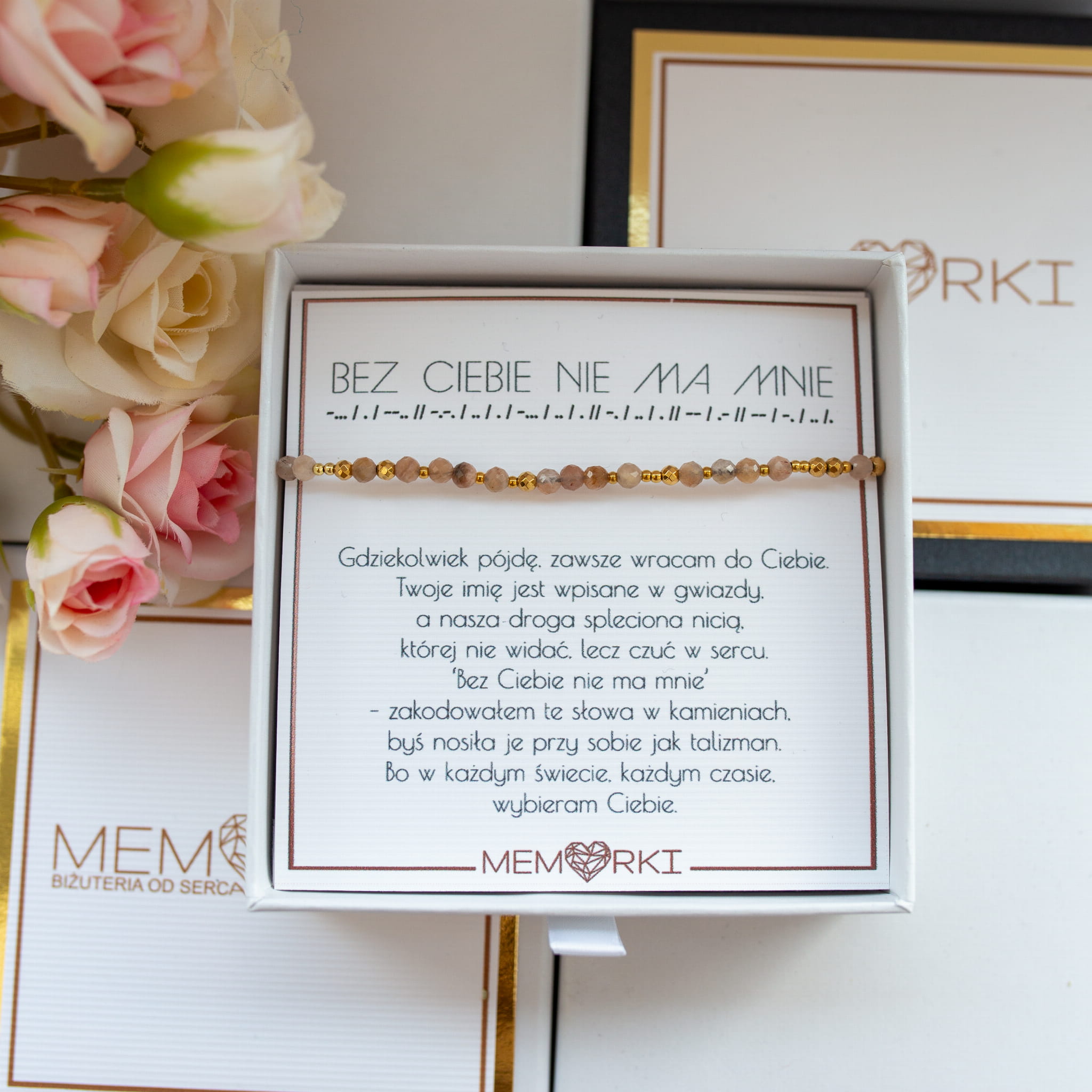 Twoje słowo, imię lub krótka sentencja (np. „Kocham Cię”, „Hope”, „Razem”) zostaje przetłumaczone na alfabet Morse’a i odwzorowane w układzie kamieni – jaśniejszych i ciemniejszych, większych i mniejszych. Dzięki temu powstaje unikalna bransoletka lub naszyjnik, który znasz tylko Ty i osoba obdarowana.