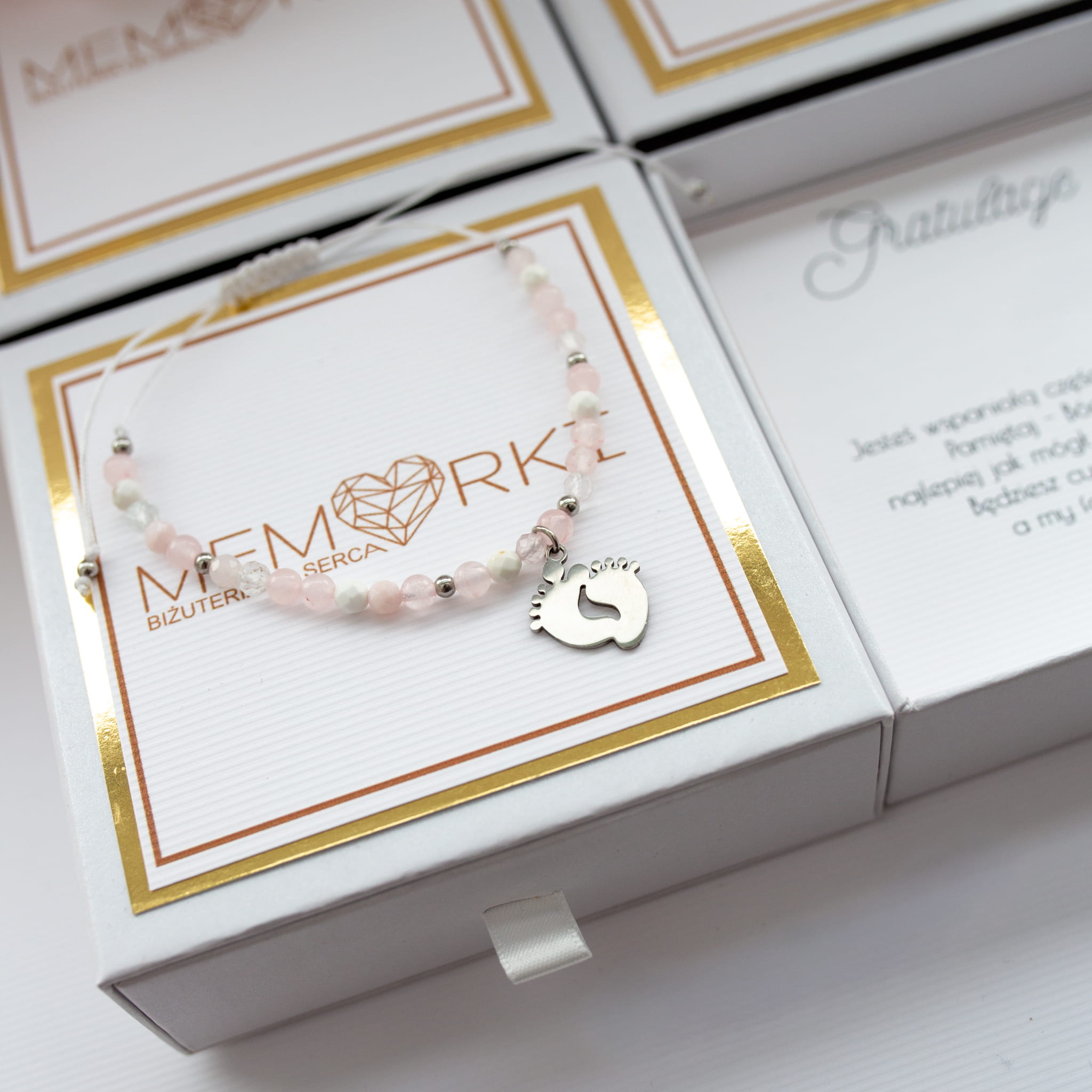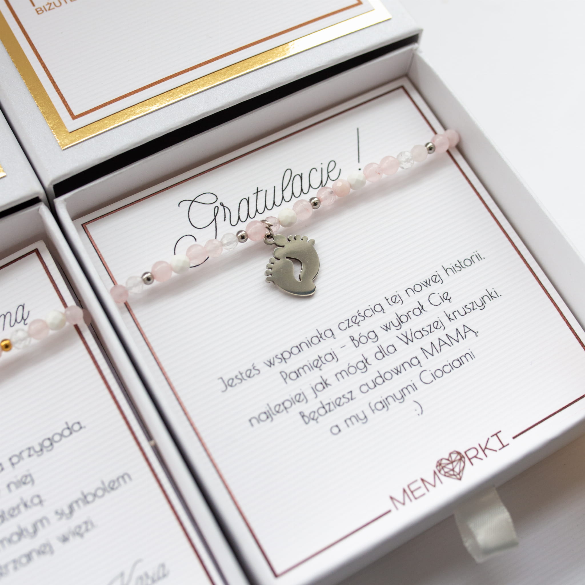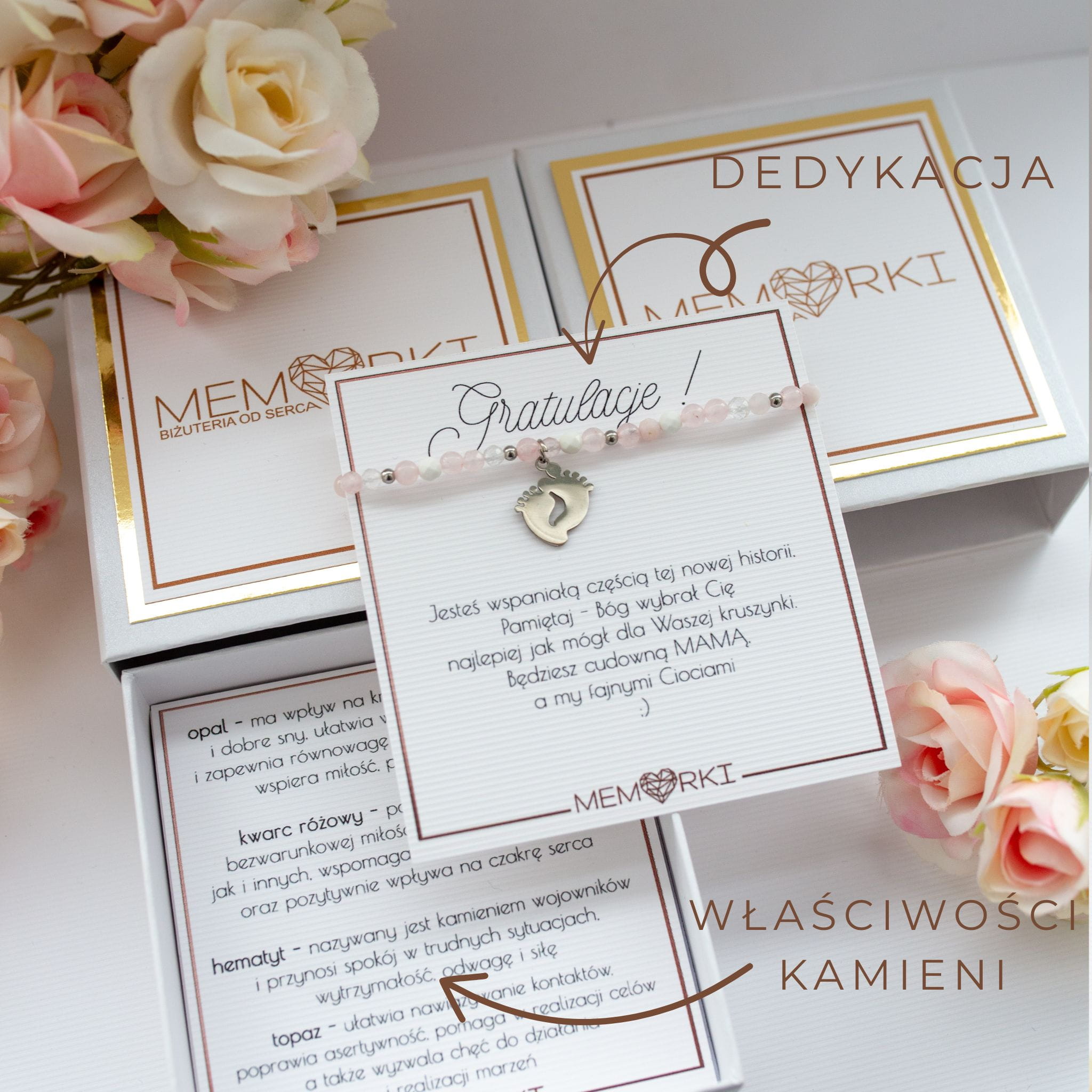 Bransoletka dla PRZYSZŁEJ MAMY - kamienie i srebrne stópki -dziewczynka _ Baby Shower