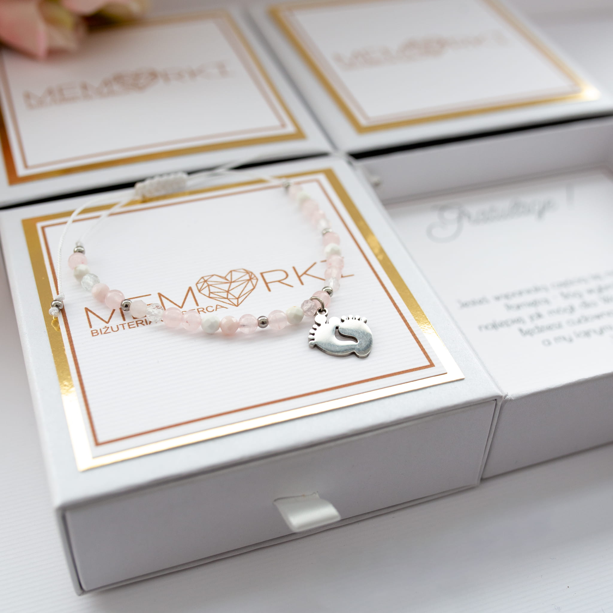 Bransoletka STÓPKI DLA PRZYSZŁEJ MAMY z kolekcji Bransoletki Mocy, to delikatny rękodzielniczy wyrób z najwyższej jakości materiałów.