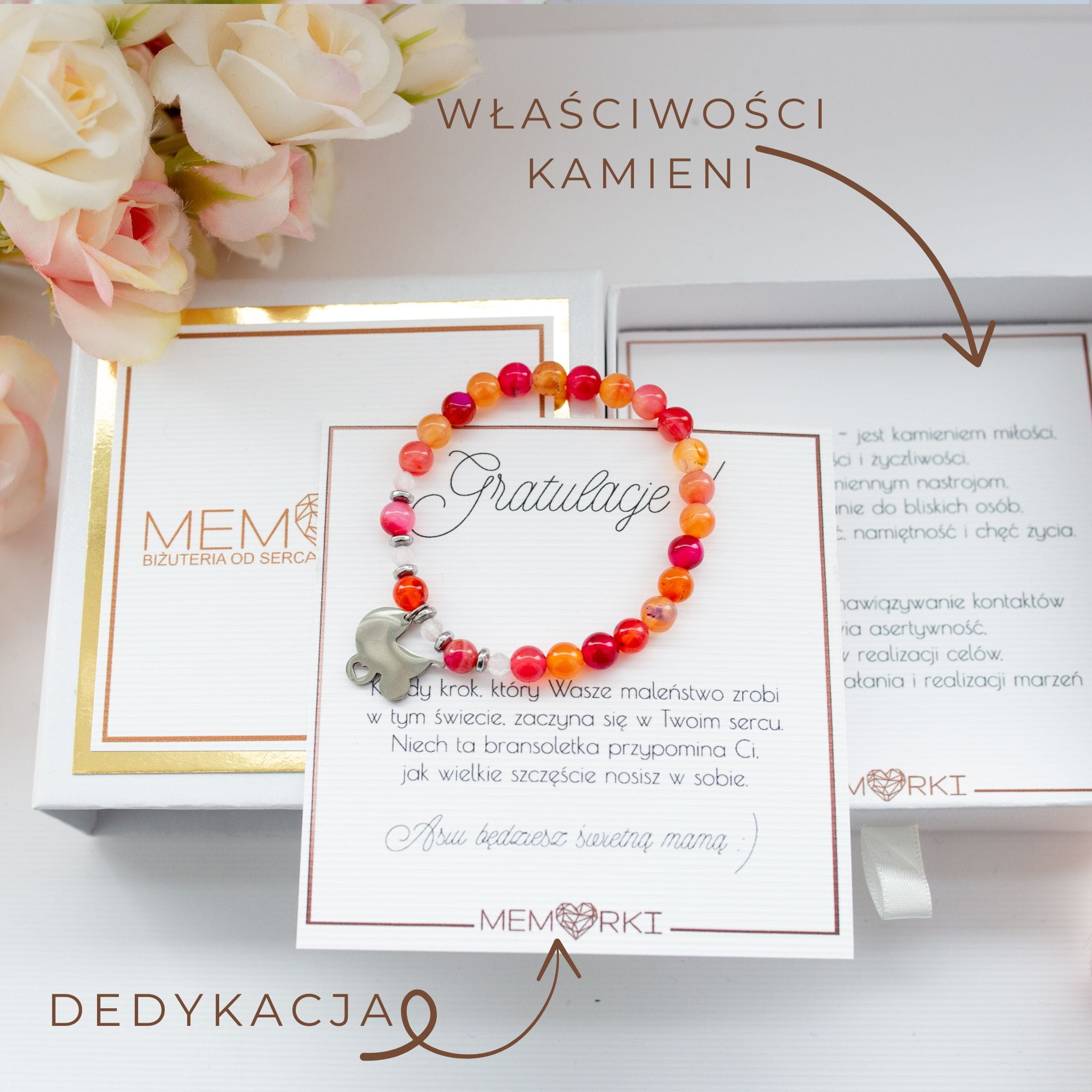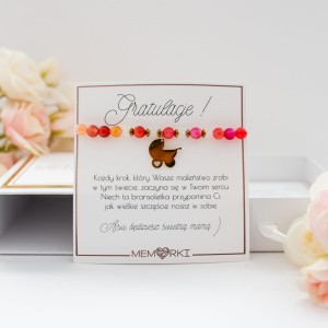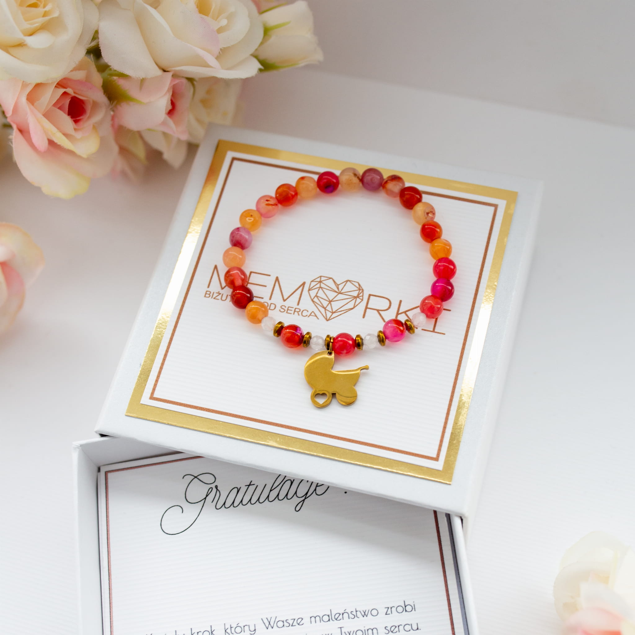 Bransoletka dla PRZYSZŁEJ MAMY - kamienie i złoty wózeczek _ dla DZIEWCZYNKI_ baby shower