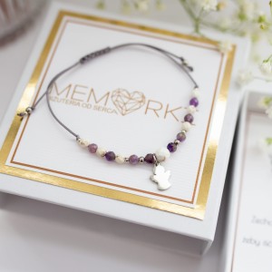 Bransoletka dla chrzestnej - Czy zostaniesz Moją CHRZESTNĄ - z ametystem i aniołkiem