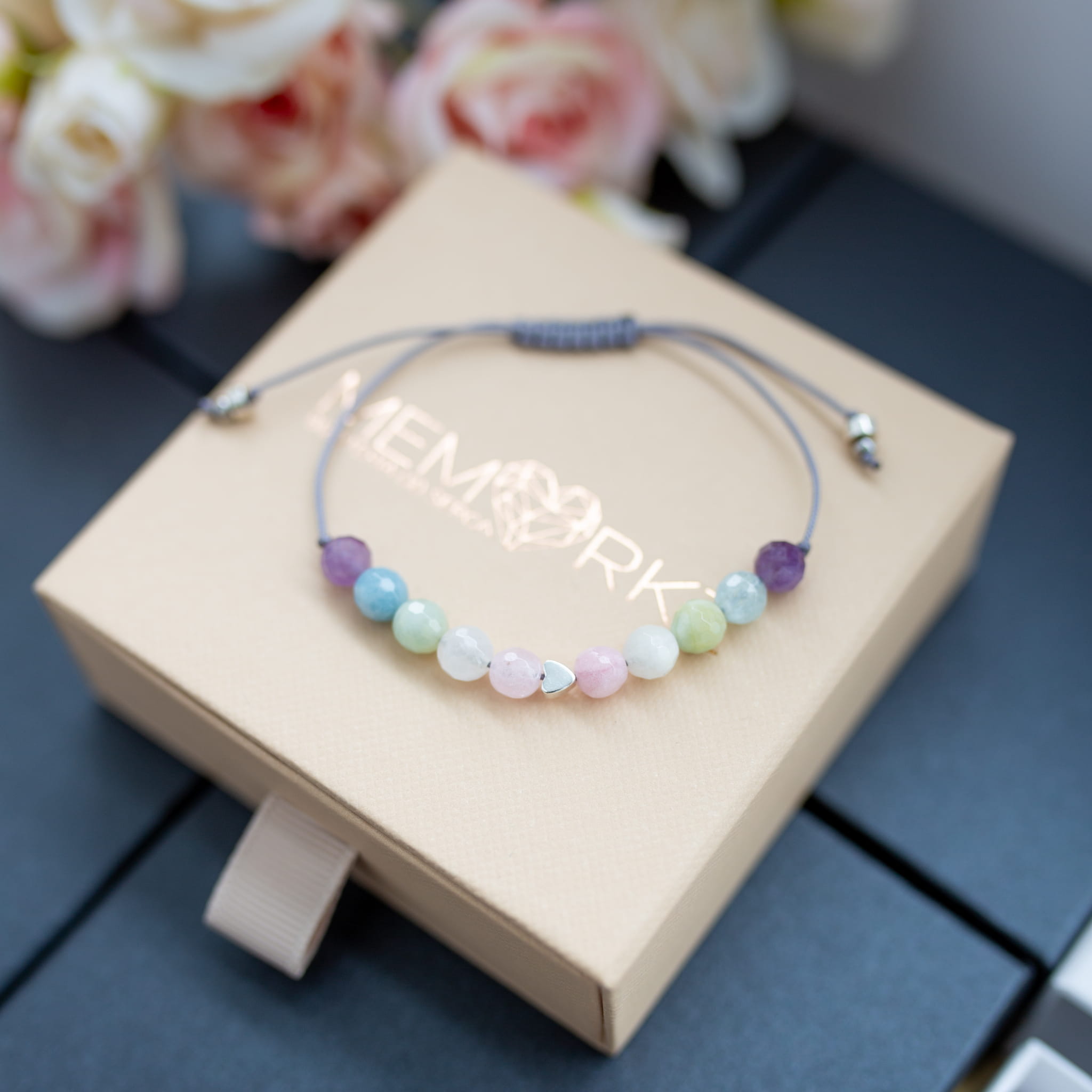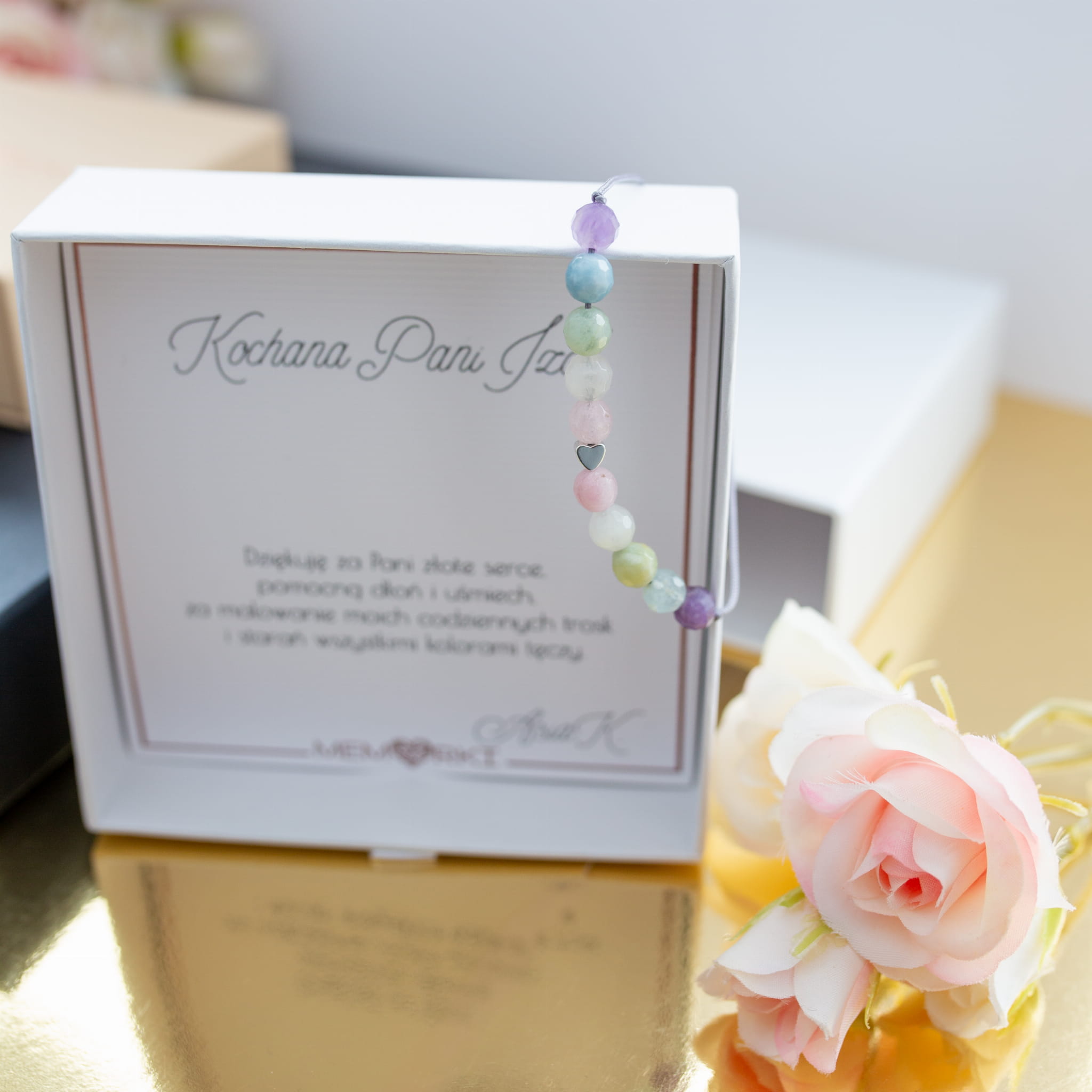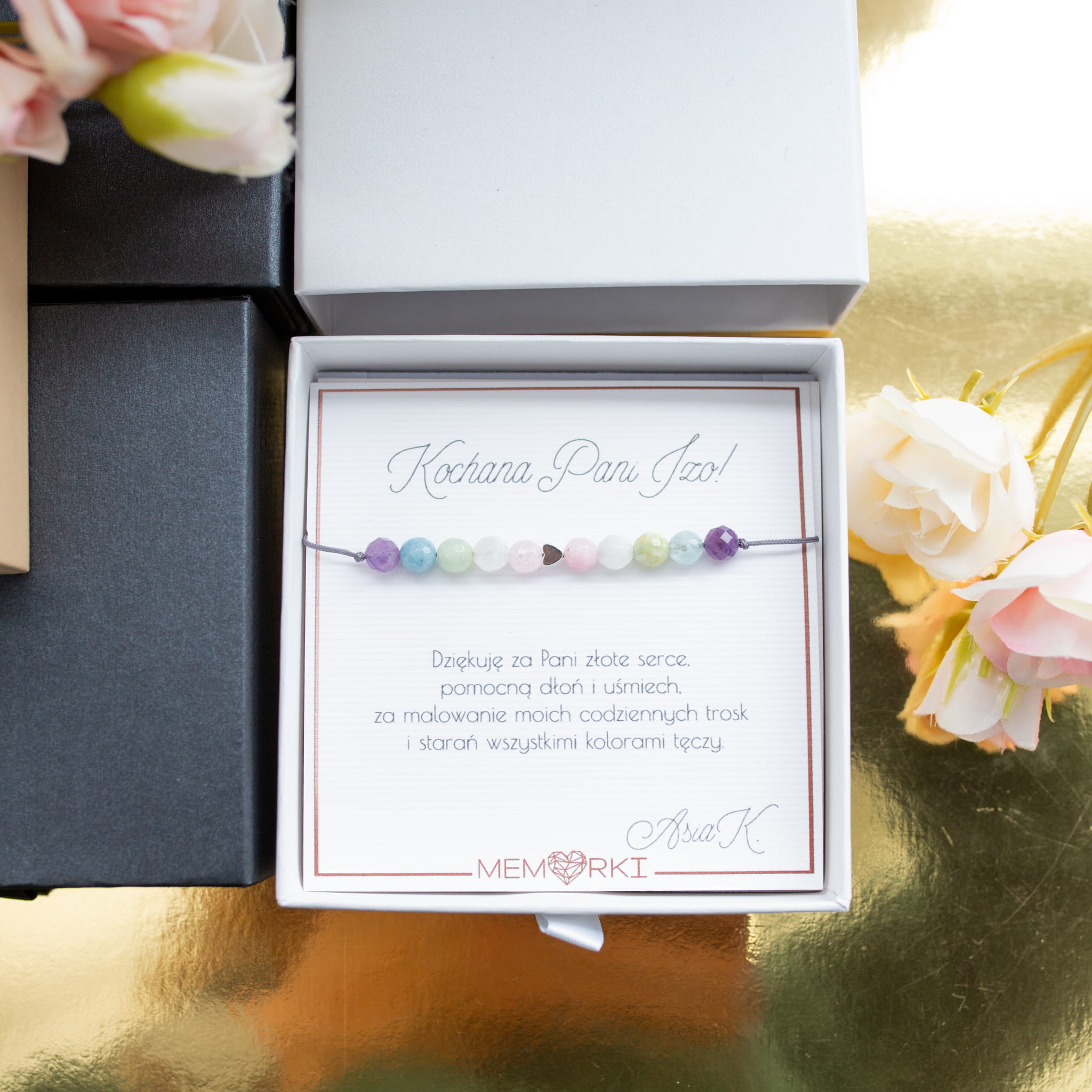 Misternie nanizane na bardzo wytrzymały jedwabny sznureczek jubilerski, kamienie naturalne w połączeniu ze stalą chirurgiczną sprawdzą się doskonale jako drobiazgowa pamiątka z okazji końca roku szkolnego w przedszkolu i szkole, dnia nauczyciela, matur itd.