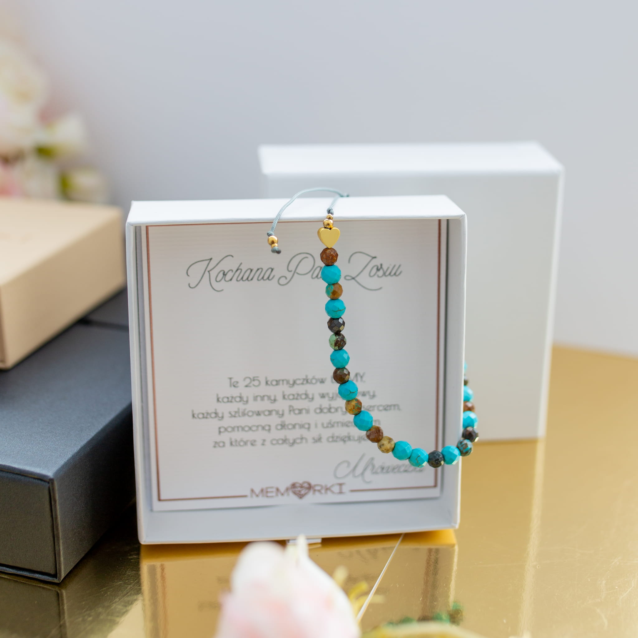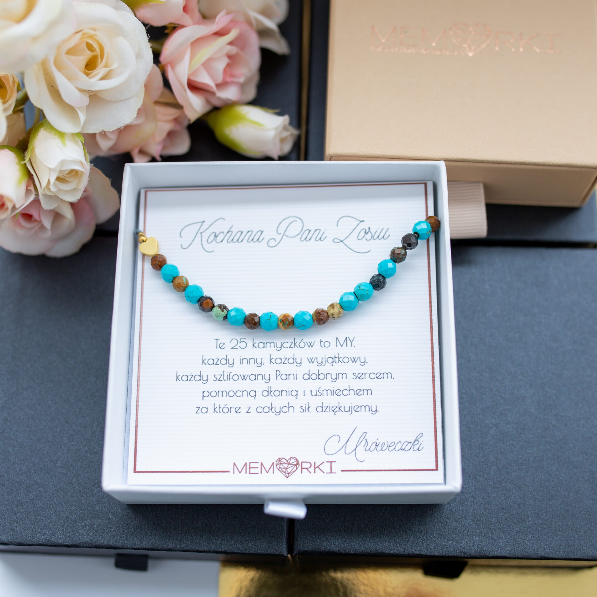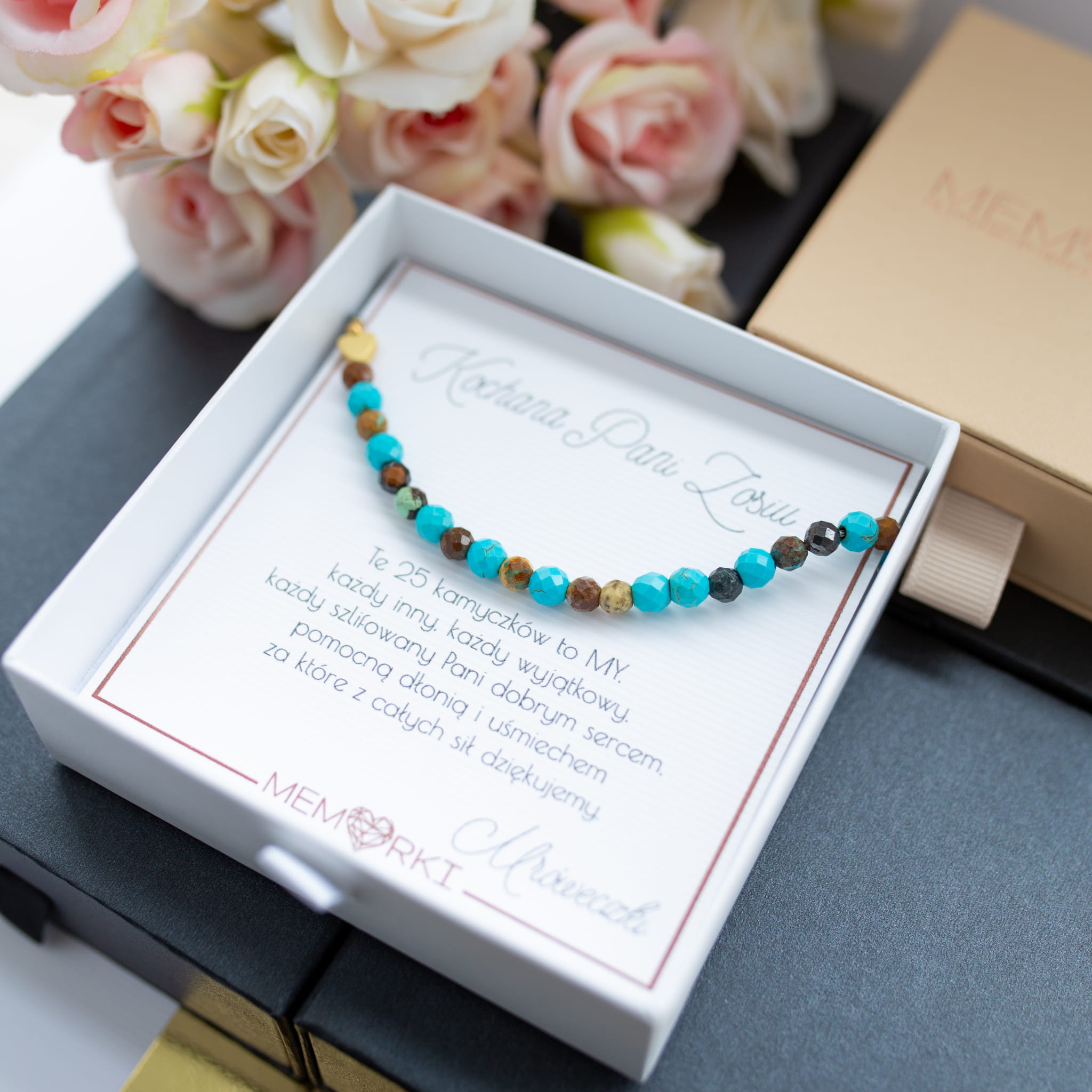 Misternie nanizane na bardzo wytrzymały jedwabny sznureczek jubilerski, kamienie naturalne w połączeniu ze stalą chirurgiczną sprawdzą się doskonale jako drobiazgowa pamiątka z okazji końca roku szkolnego w przedszkolu i szkole, dnia nauczyciela, matur itd.