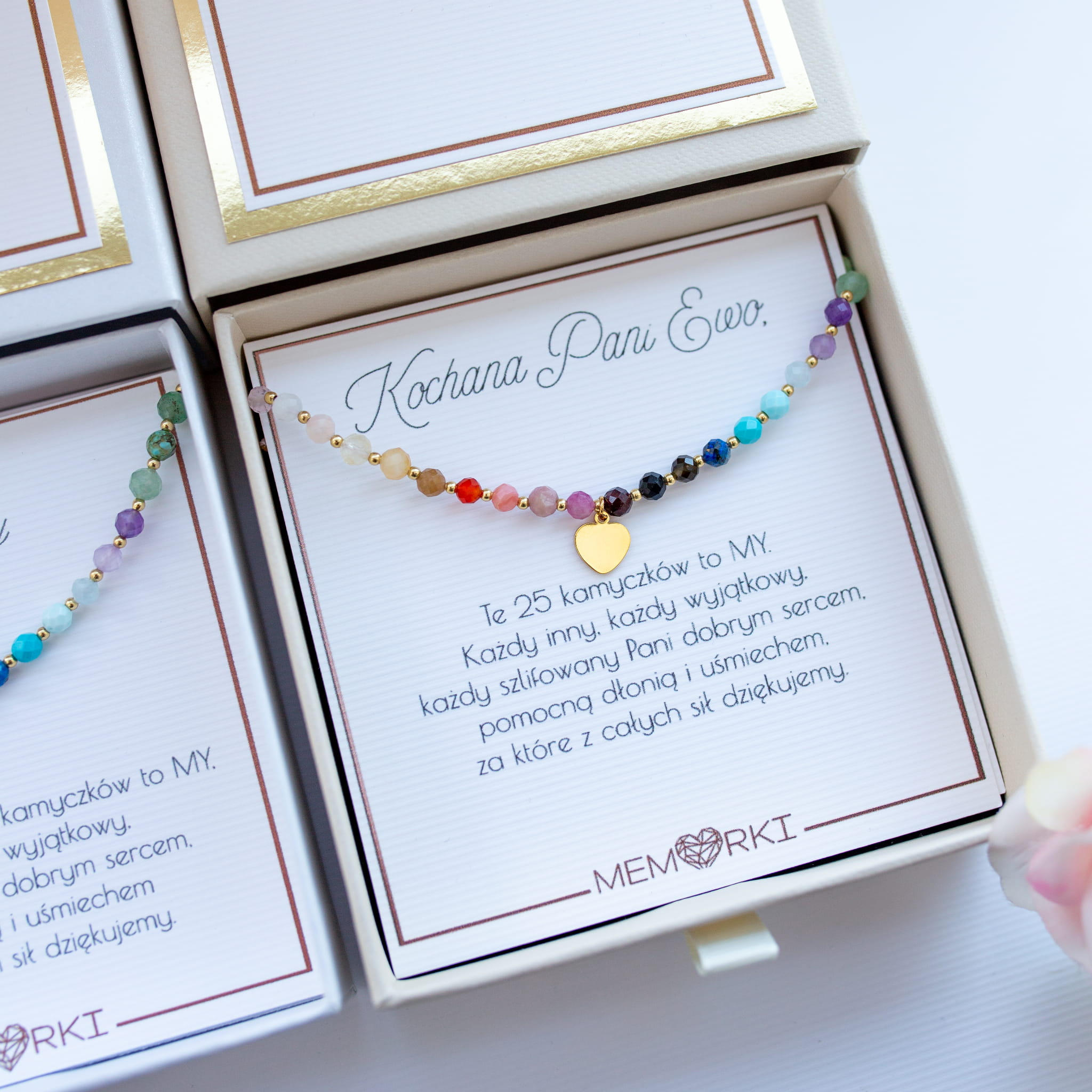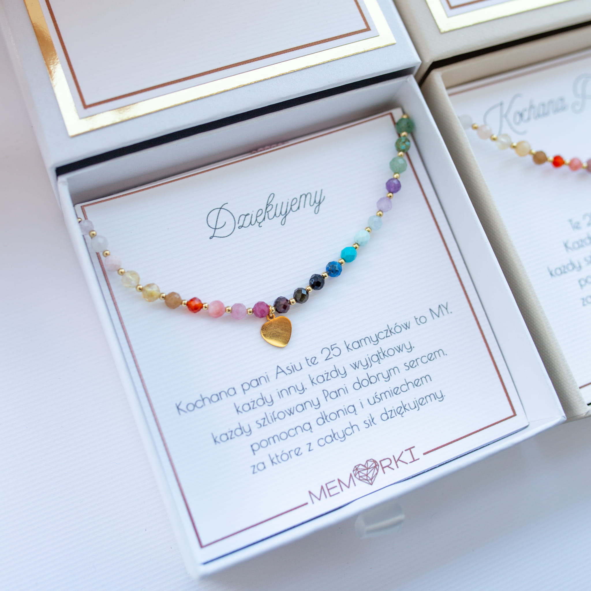 Misternie nanizane na bardzo wytrzymały jedwabny sznureczek jubilerski, kamienie naturalne w połączeniu ze stalą chirurgiczną sprawdzą się doskonale jako drobiazgowa pamiątka z okazji końca roku szkolnego w przedszkolu i szkole, dnia nauczyciela, matur itd.