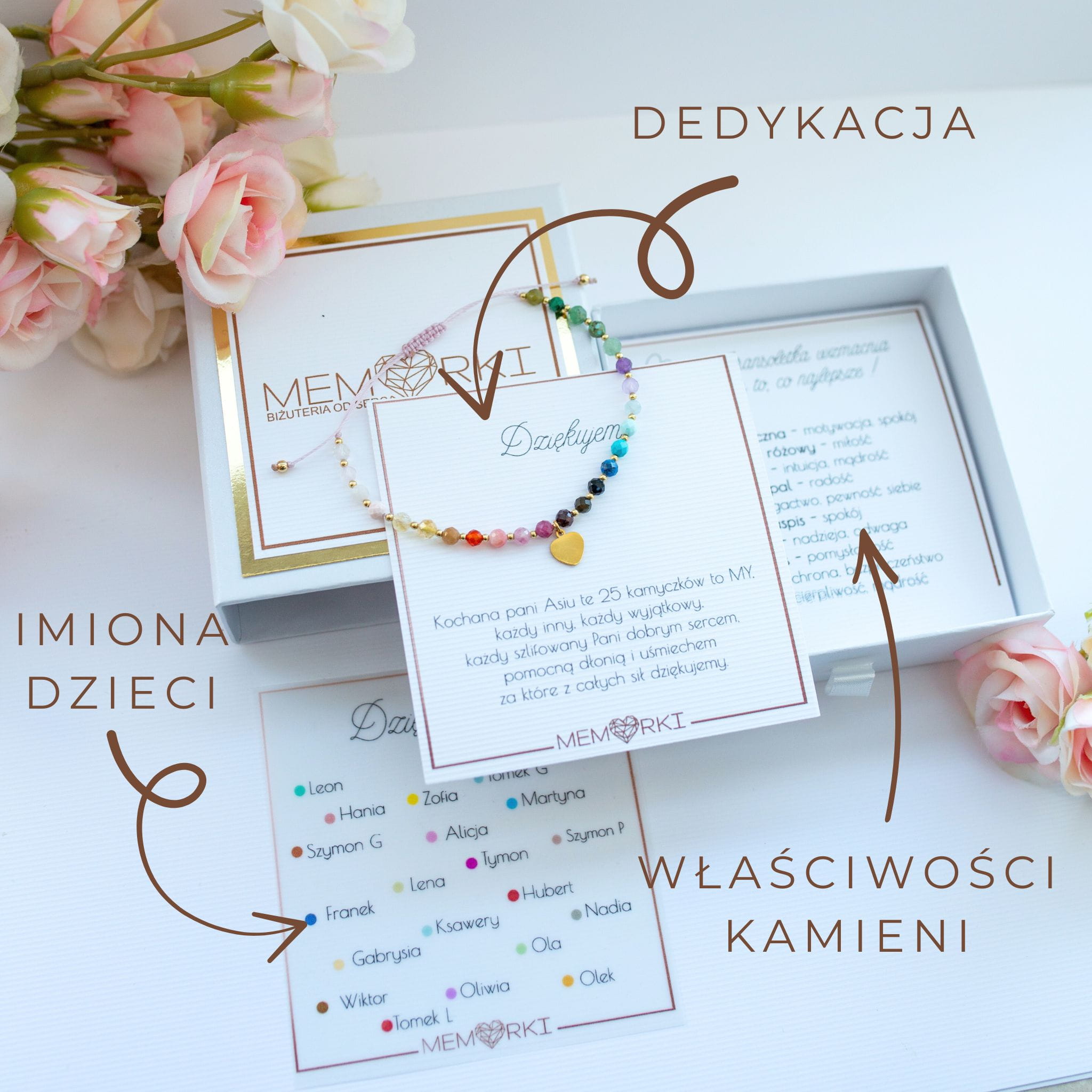 Bransoletka z DEDYKACJĄ i ilością DZIECI, to elegancki rękodzielniczy wyrób idealny na prezent dla NAUCZYCIELKI.