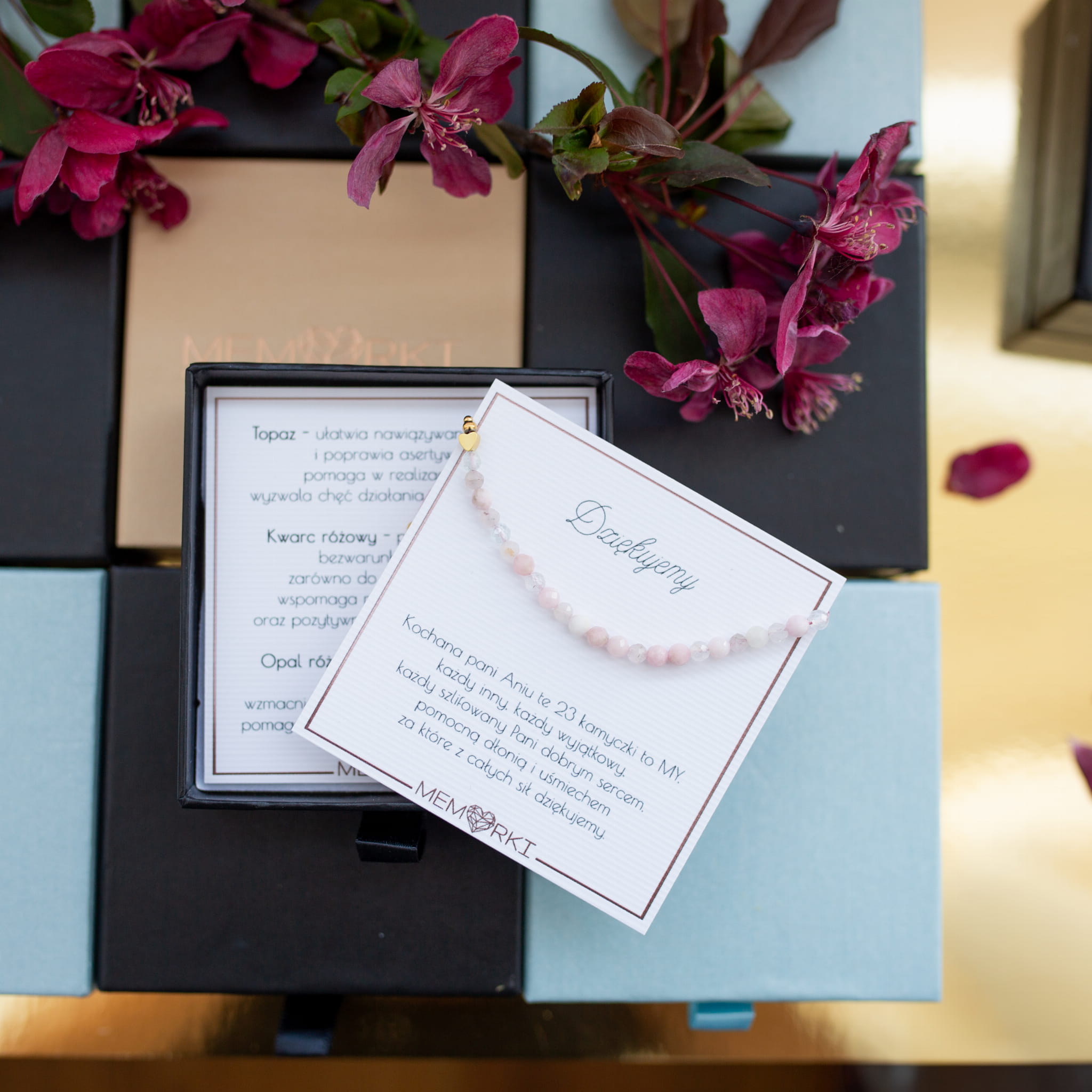 Misternie nanizane na bardzo wytrzymały jedwabny sznureczek jubilerski, kamienie naturalne w połączeniu ze stalą chirurgiczną sprawdzą się doskonale jako drobiazgowa pamiątka z okazji końca roku szkolnego w przedszkolu i szkole, dnia nauczyciela, matur itd.