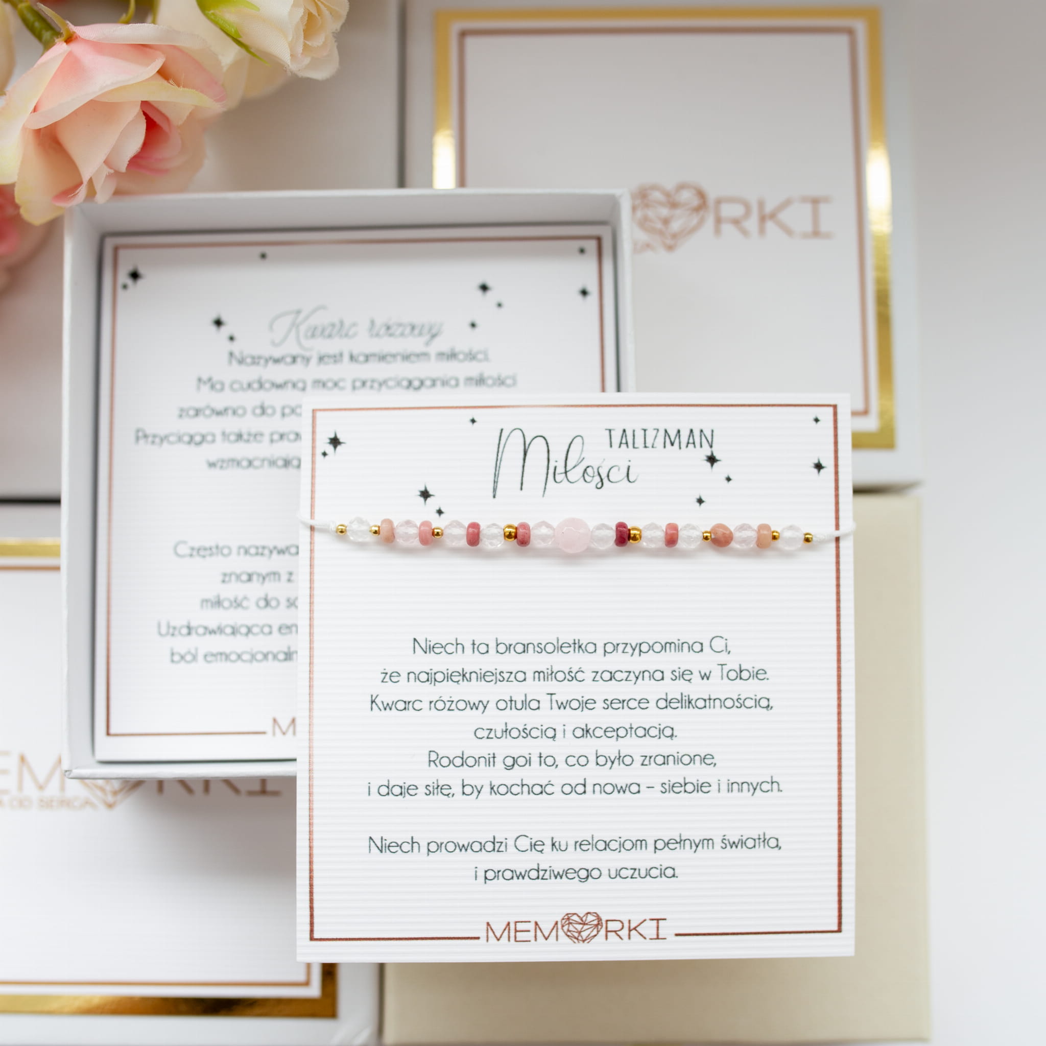 - kwarc różowy - pomaga w rozwoju bezwarunkowej miłości: zarówno do siebie jak i innych, wspomaga rozwój kobiecej energii oraz pozytywnie wpływa na czakrę serca