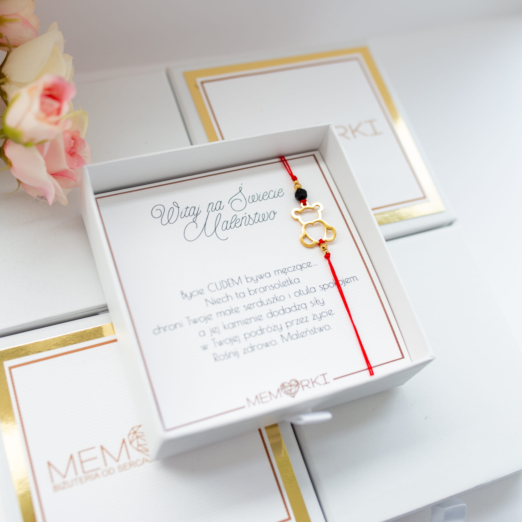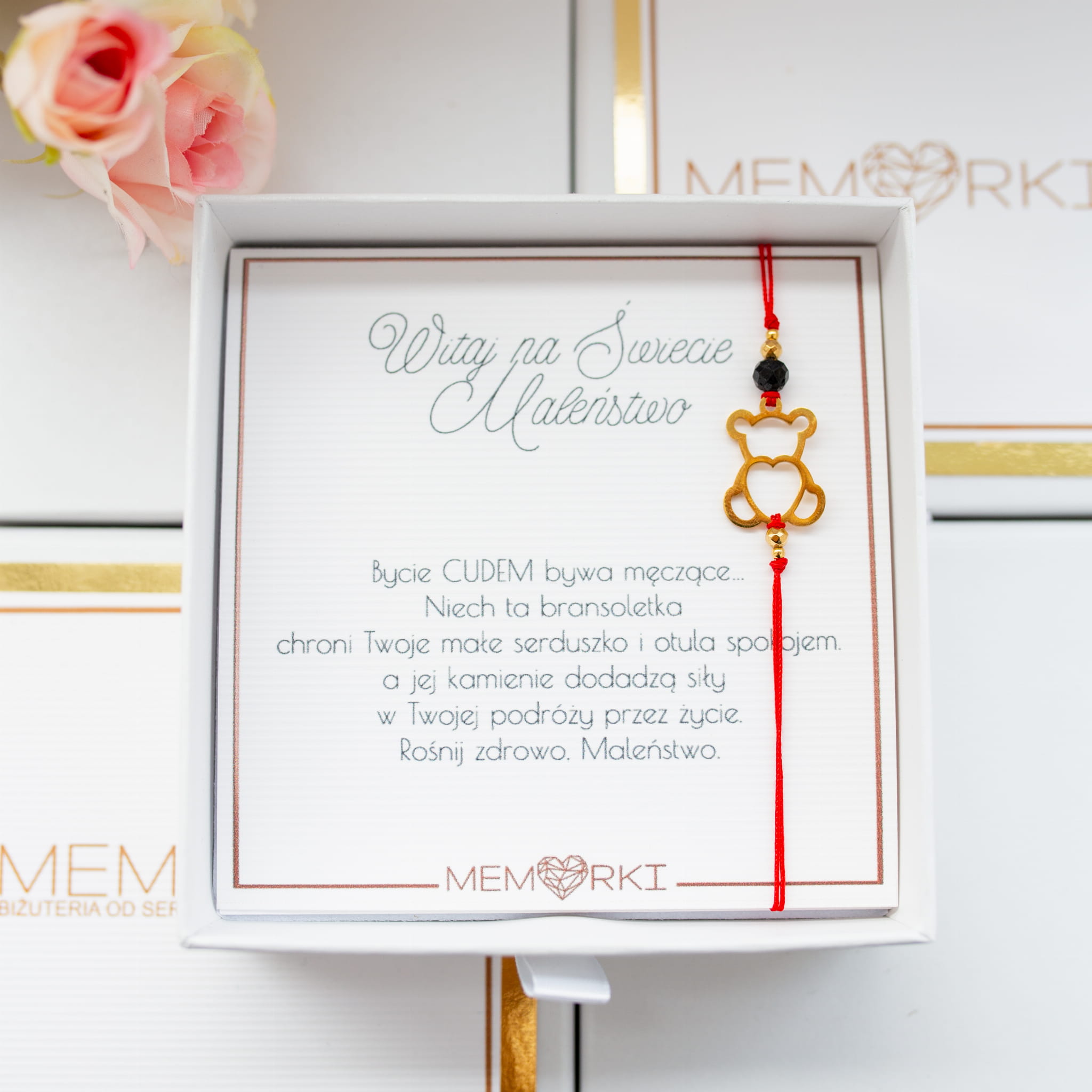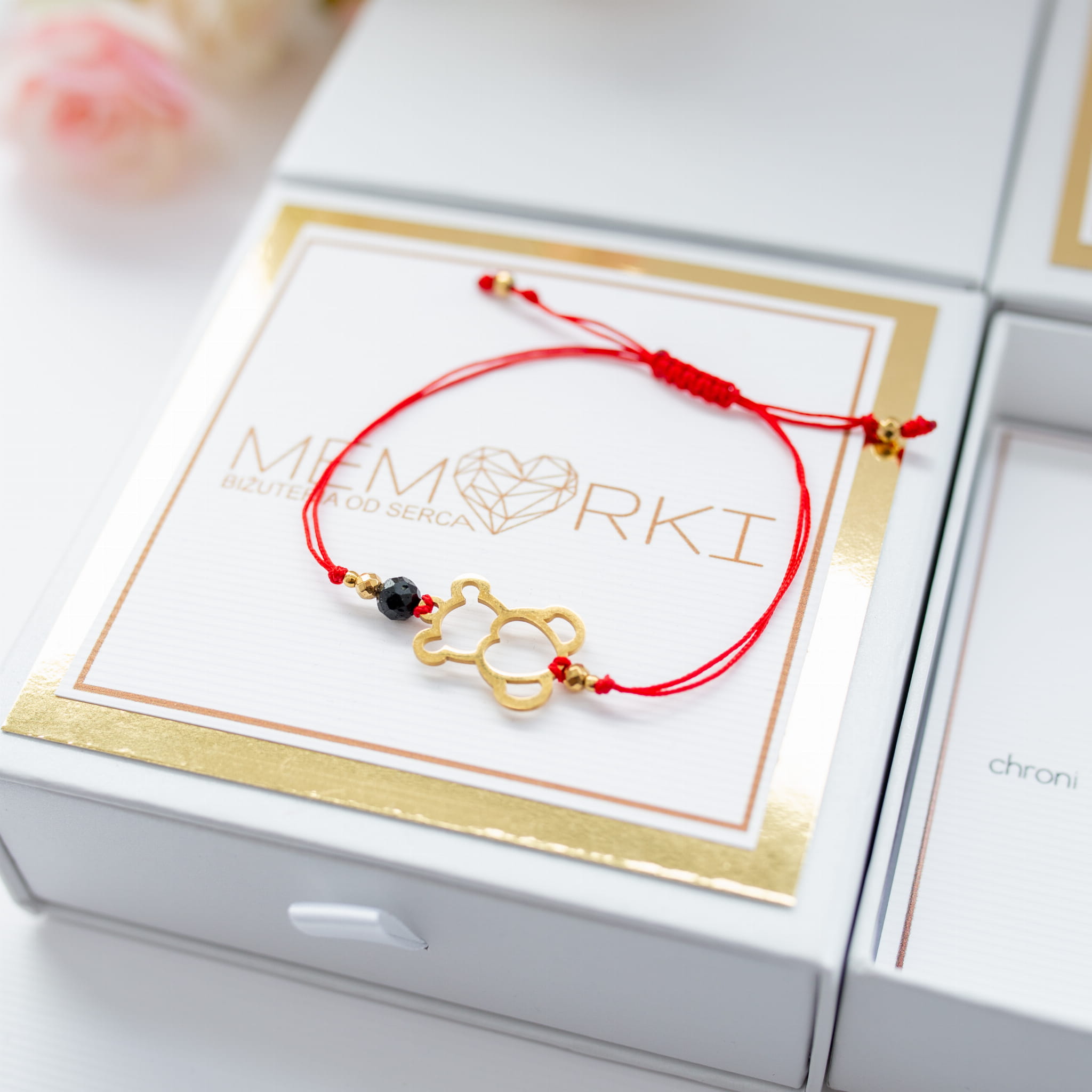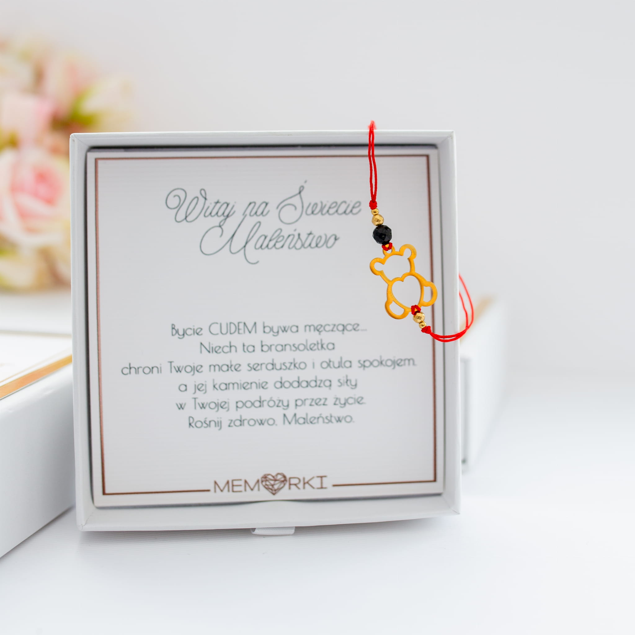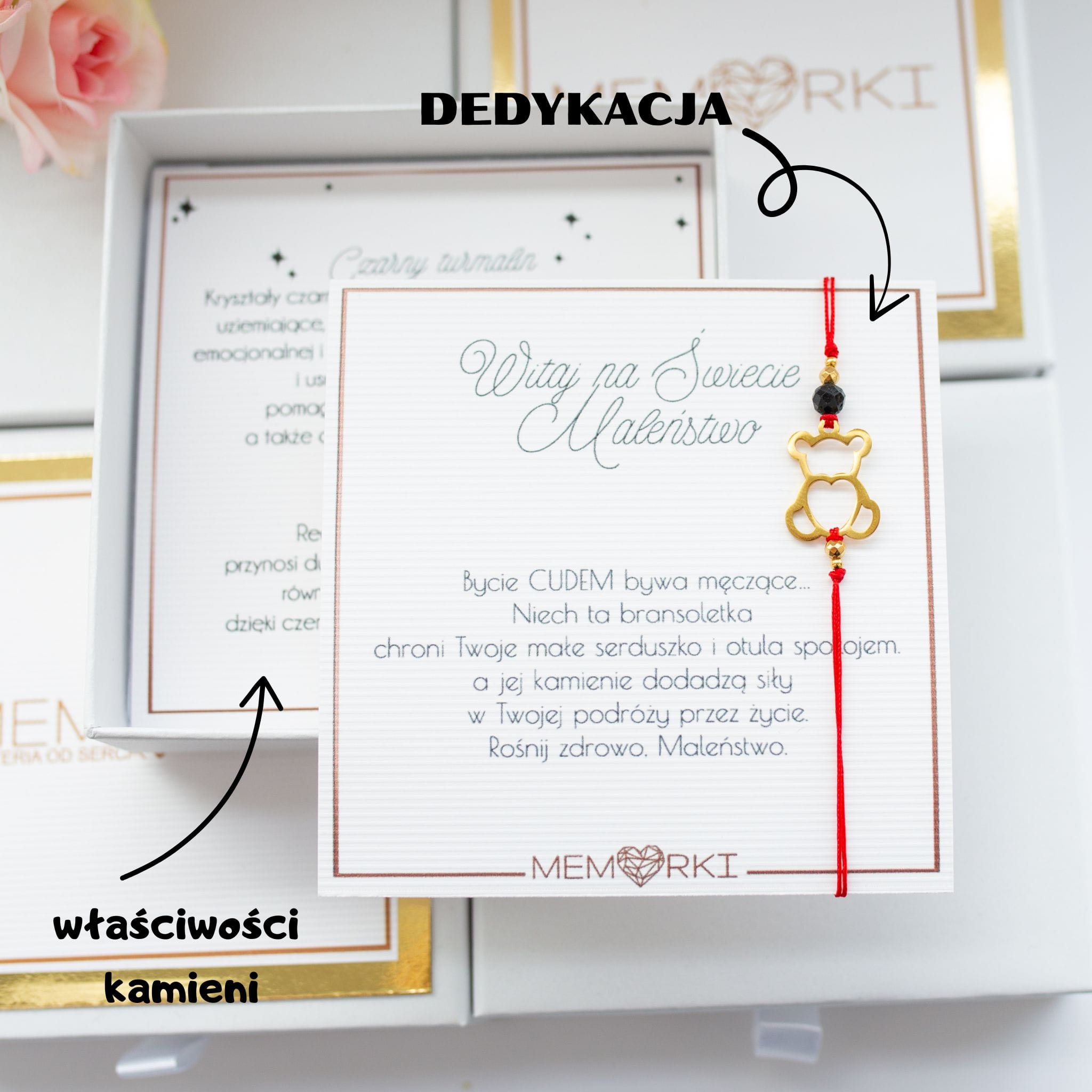 Bransoletka ochronna NARODZINY DZIECKA - turmalin, czerwony sznureczek i MIŚ
