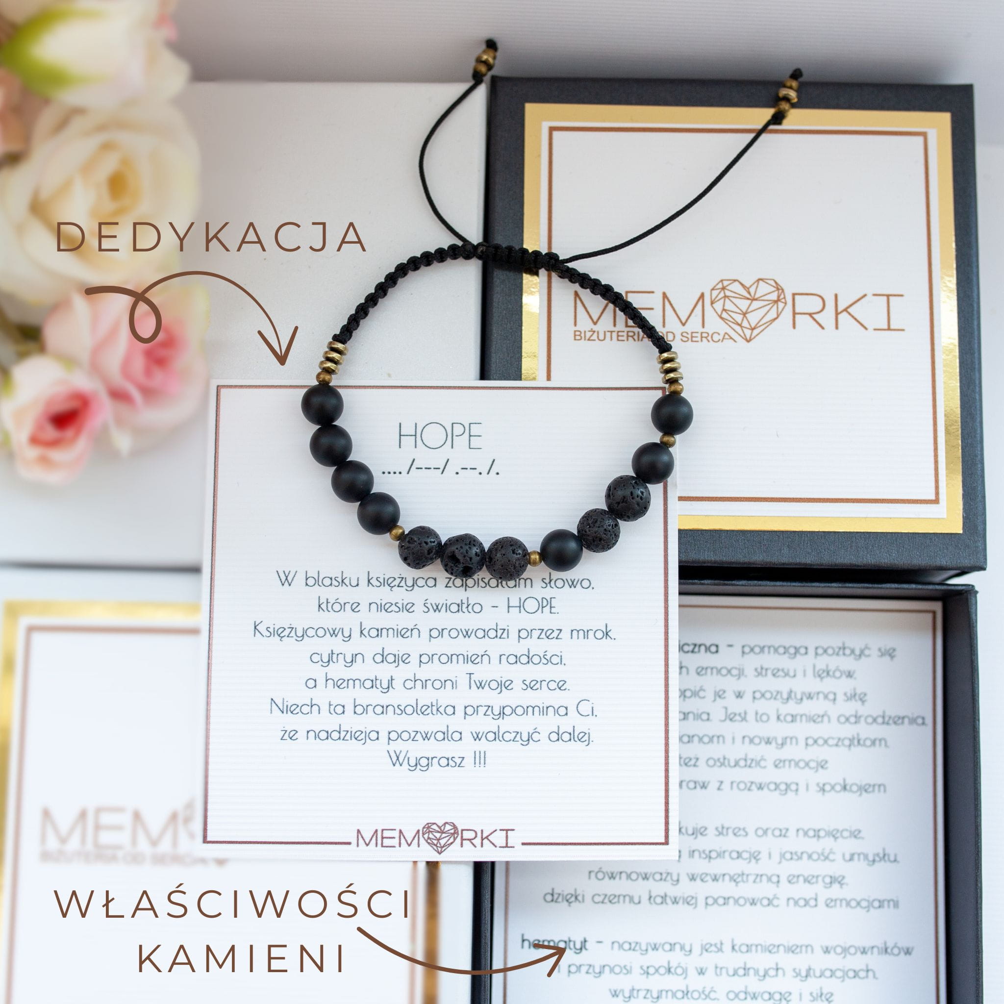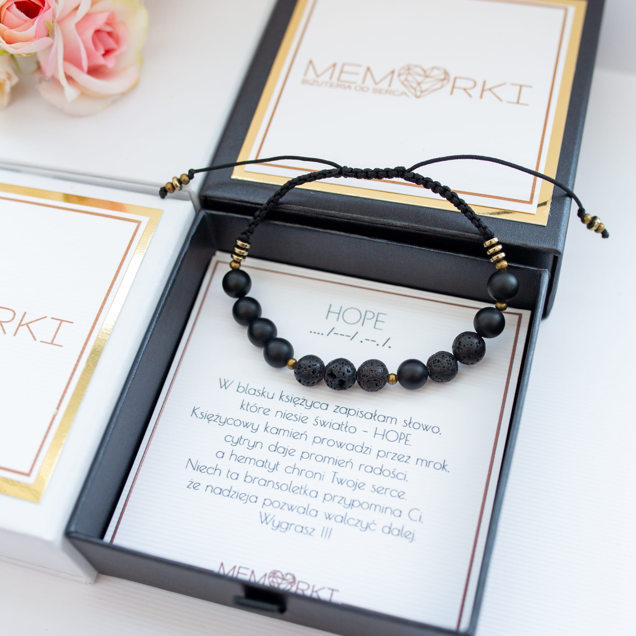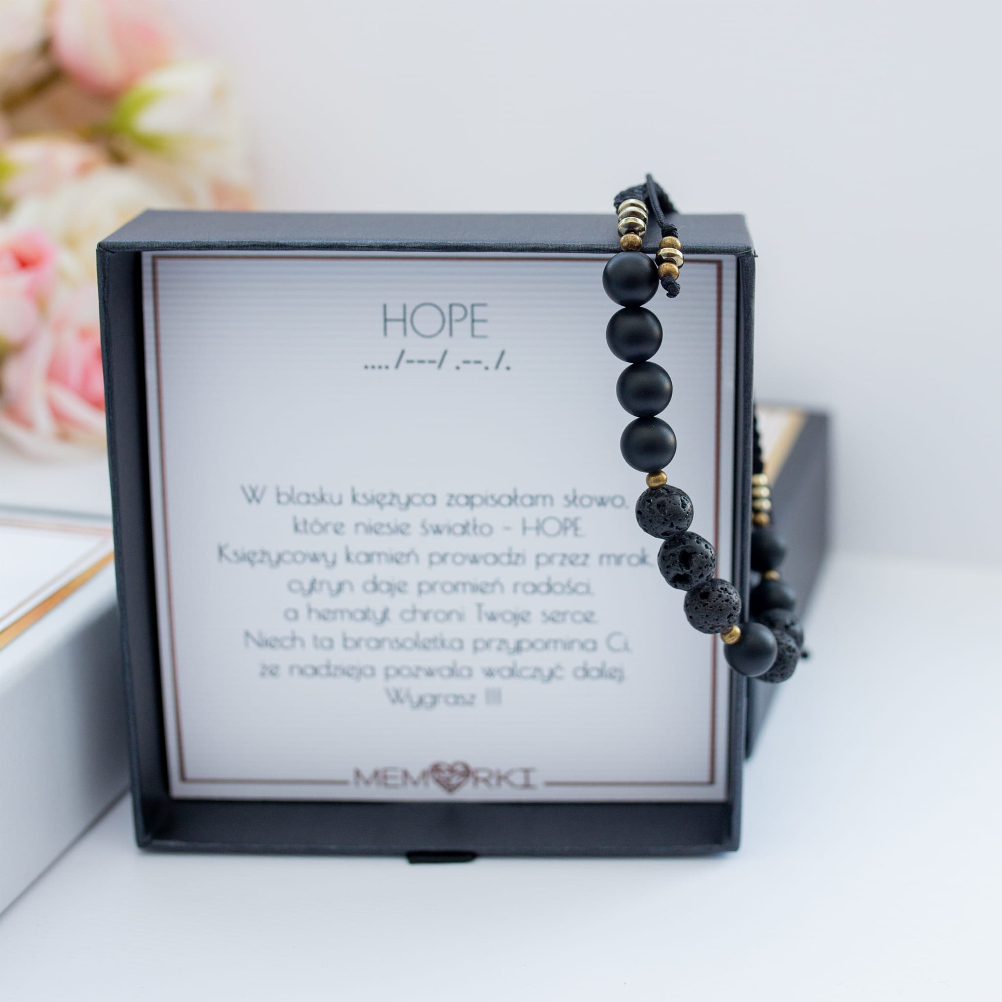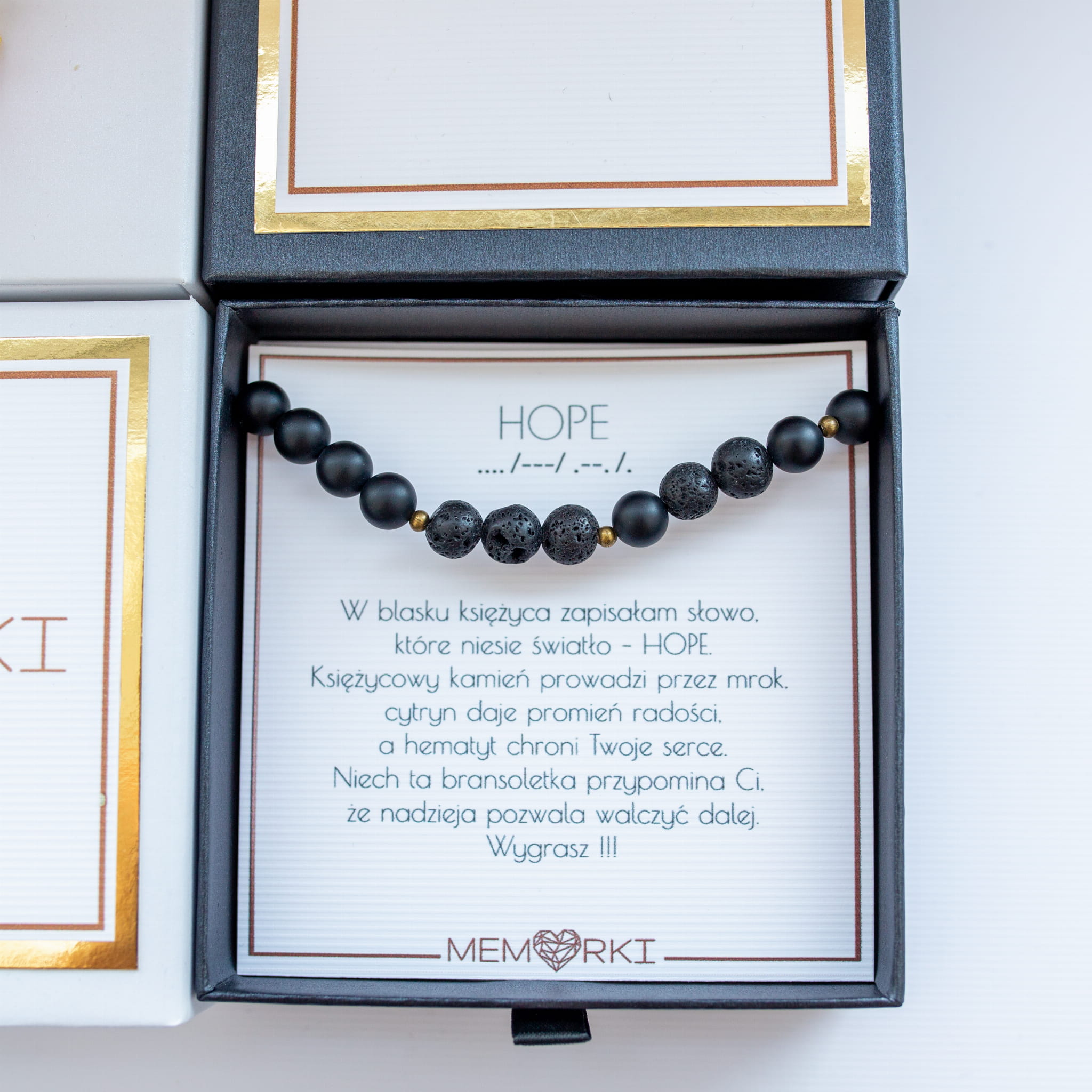 Bransoletka w alfabecie Morse'a HOPE -kamienie i stal DEDYKACJA_wiara