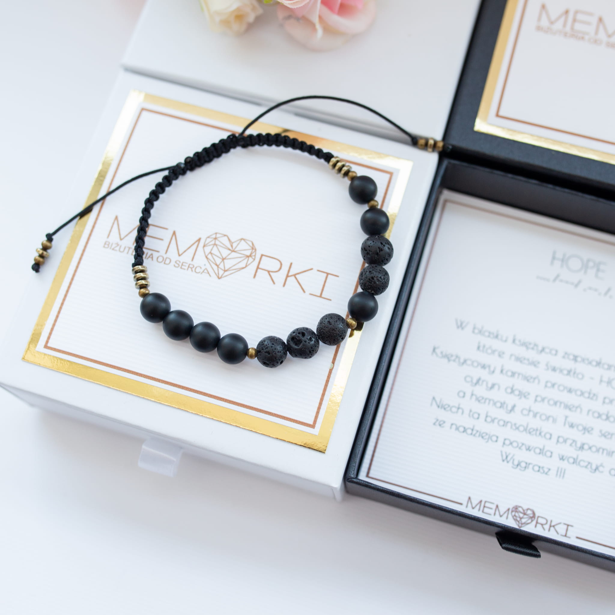 Twoje słowo, imię lub krótka sentencja (np. „Kocham Cię”, „Hope”, „Razem”) zostaje przetłumaczone na alfabet Morse’a i odwzorowane w układzie kamieni – jaśniejszych i ciemniejszych, większych i mniejszych. Dzięki temu powstaje unikalna bransoletka lub naszyjnik, który znasz tylko Ty i osoba obdarowana.