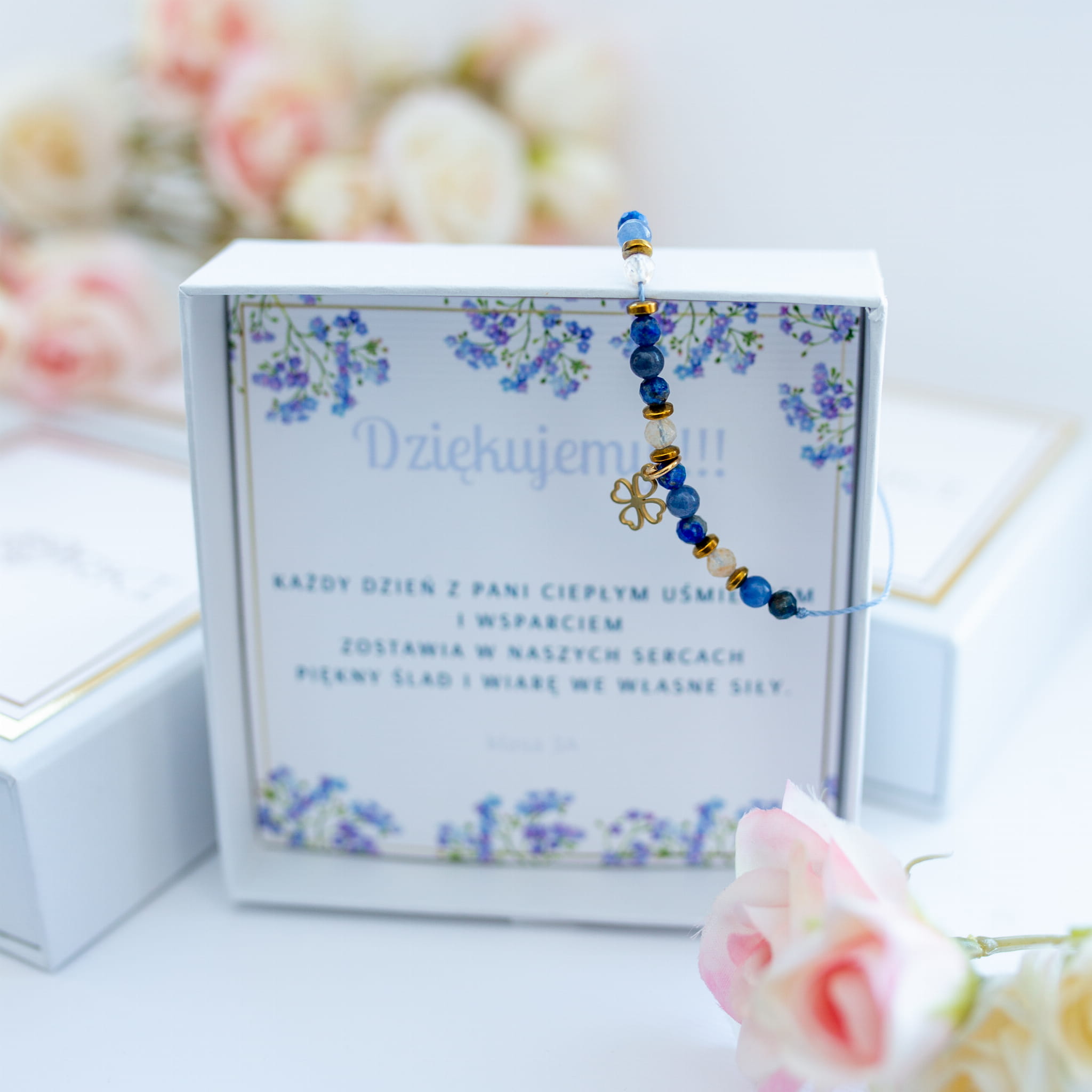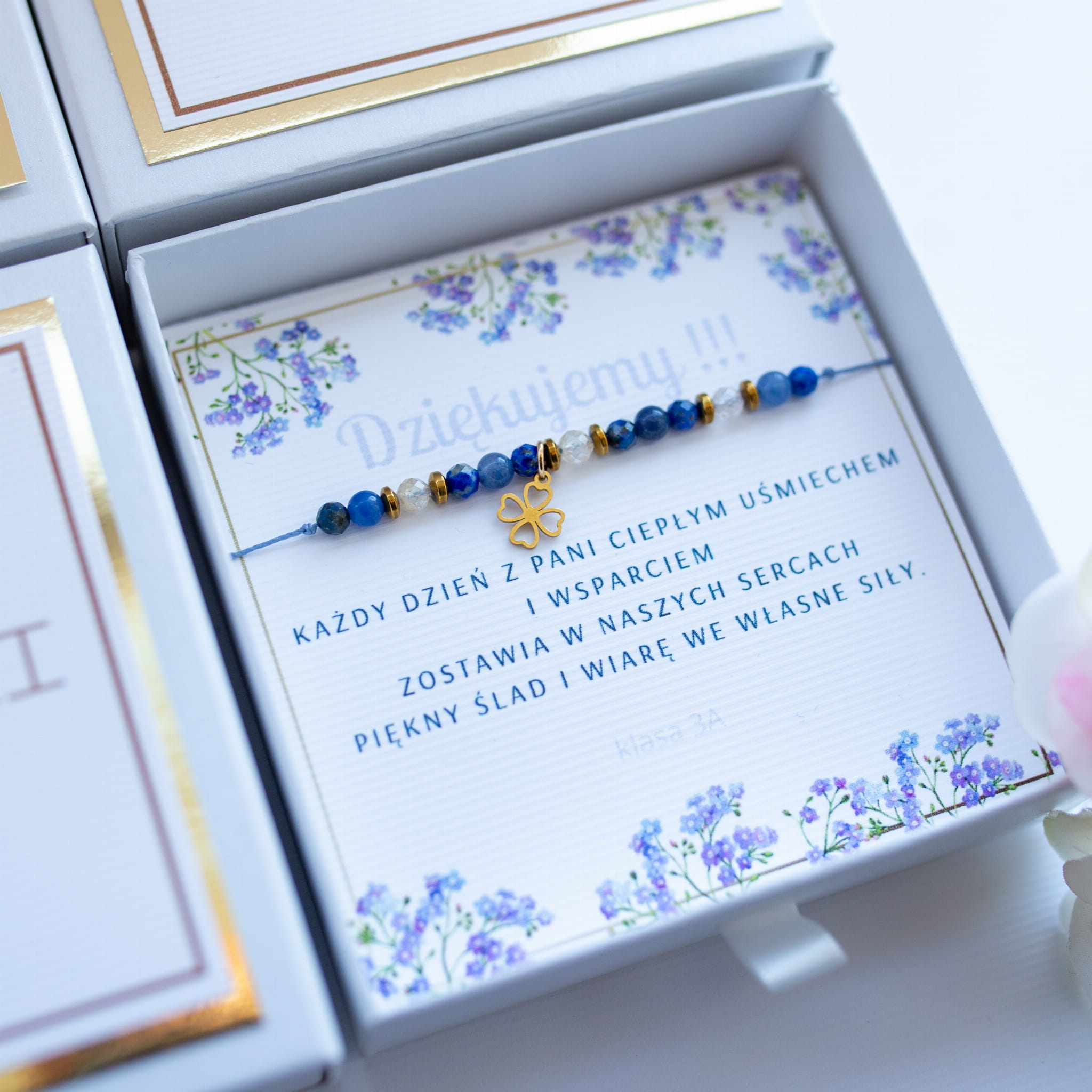 - BRANSOLETKĘ z ilością kamyczków = ilości dzieci (jako prezent od klasy) lub z ilością jak we wzorze (w przypadku zamówień indywidualnych)