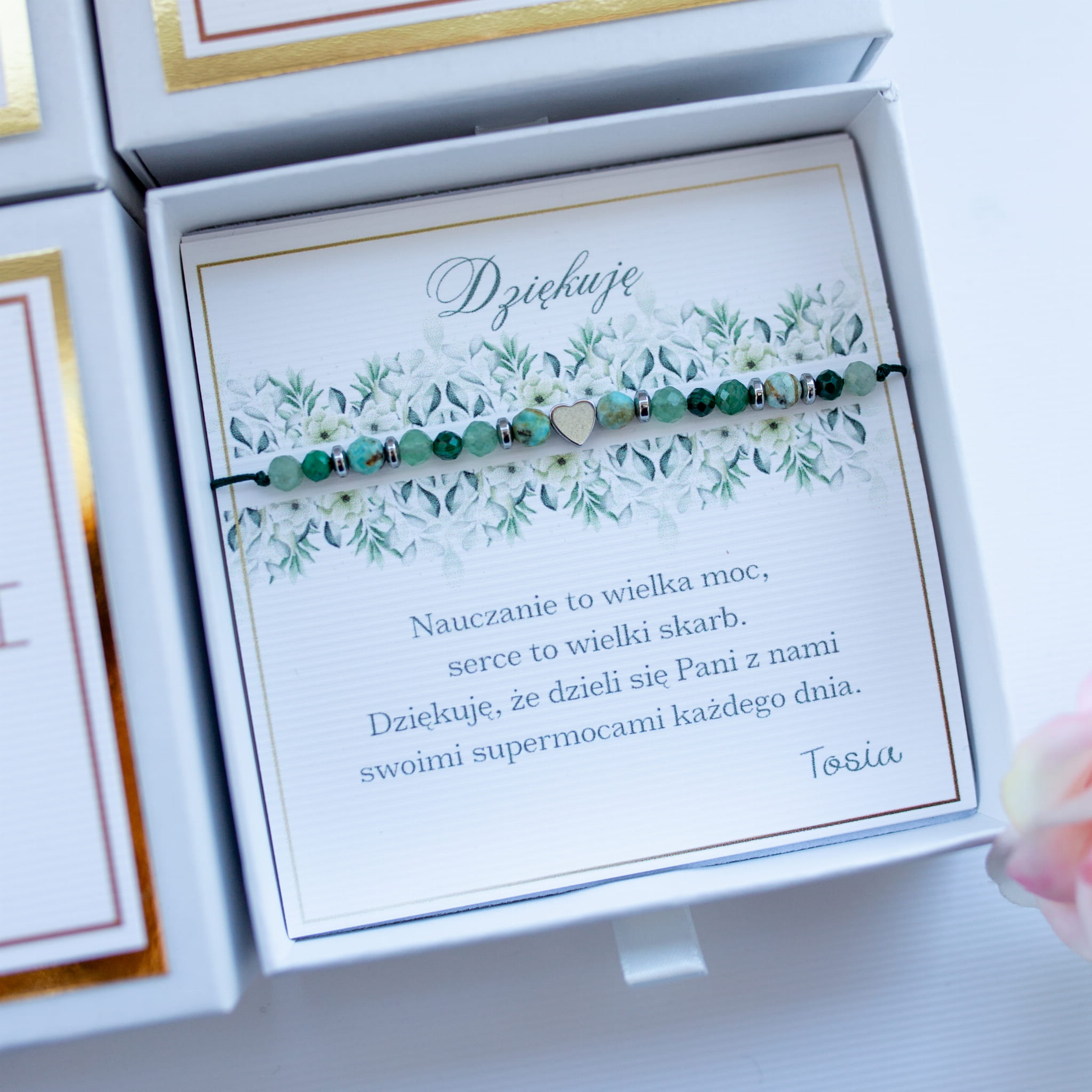 - BRANSOLETKĘ z ilością kamyczków = ilości dzieci (jako prezent od klasy) lub z ilością jak we wzorze (w przypadku zamówień indywidualnych)