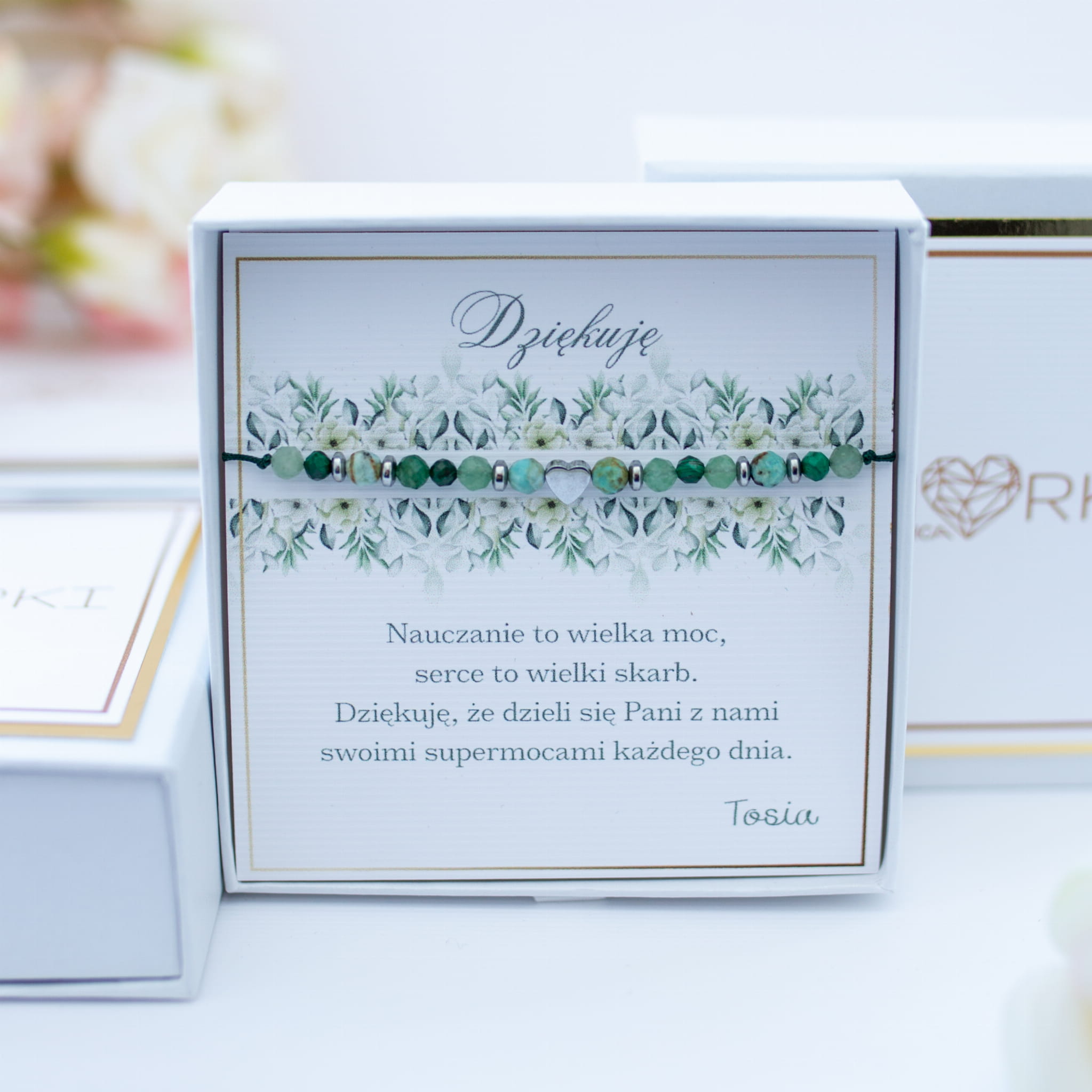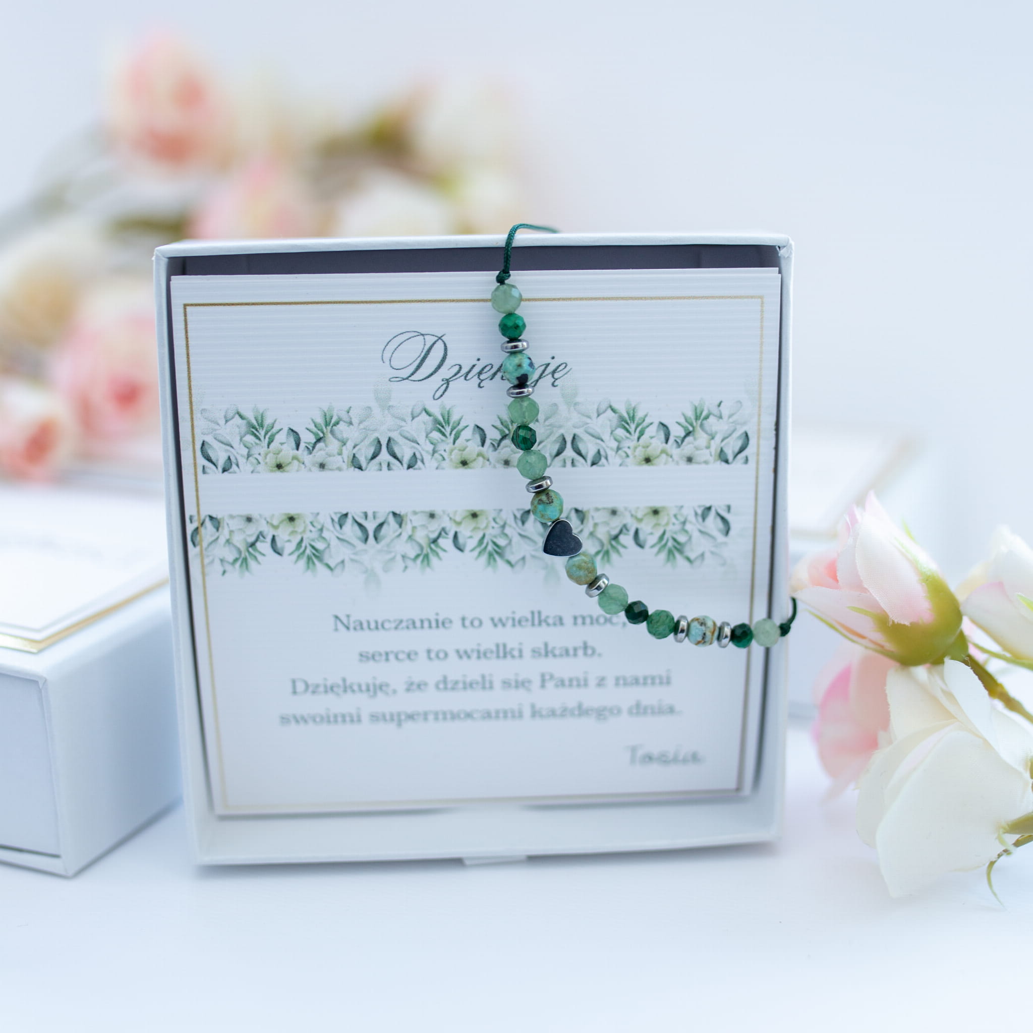 Bransoletka z serduszkiem na DZIEŃ NAUCZYCIELA _ kamienie i stal
