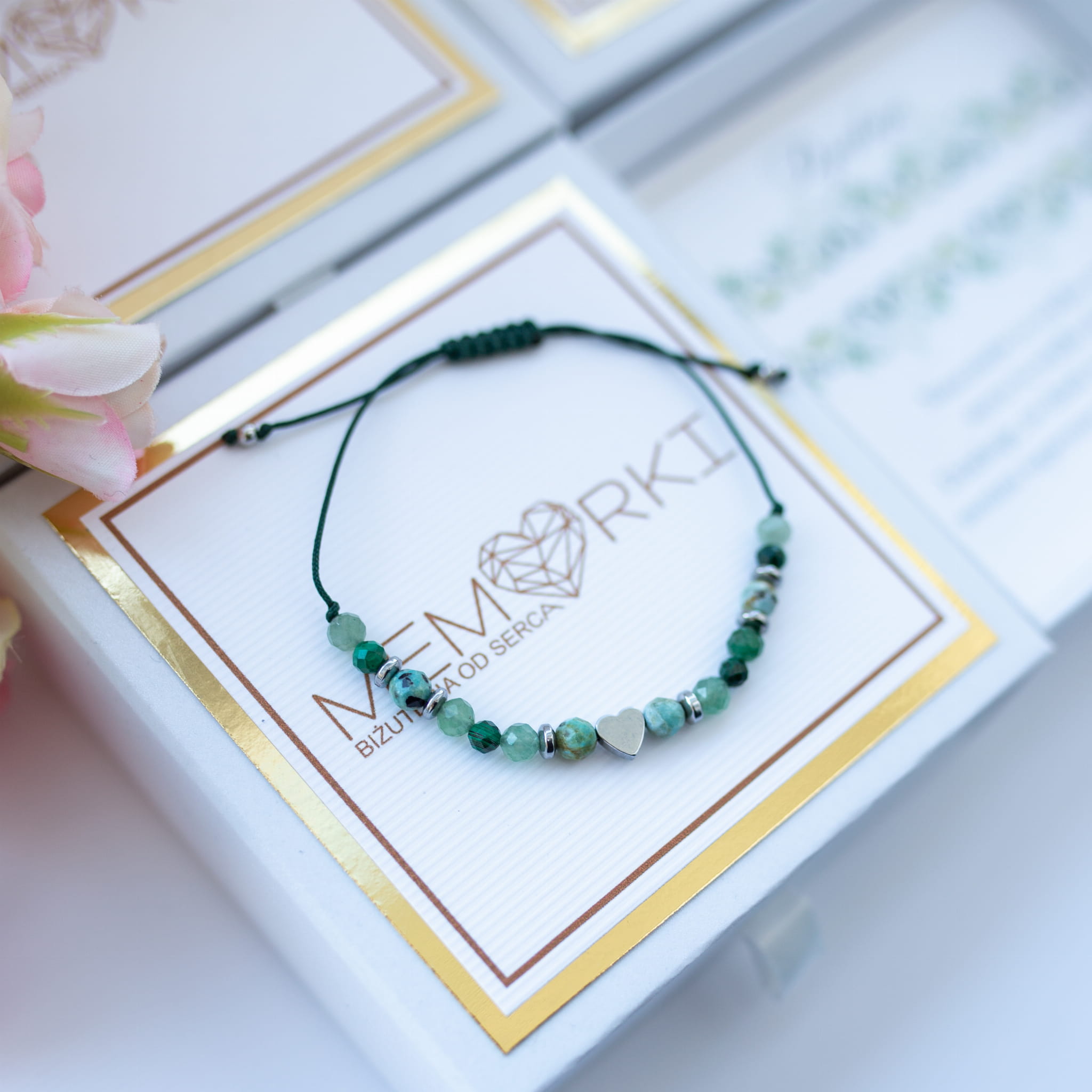 - Materiał 3: kamienie naturalne (4mm, serduszko 6mm).