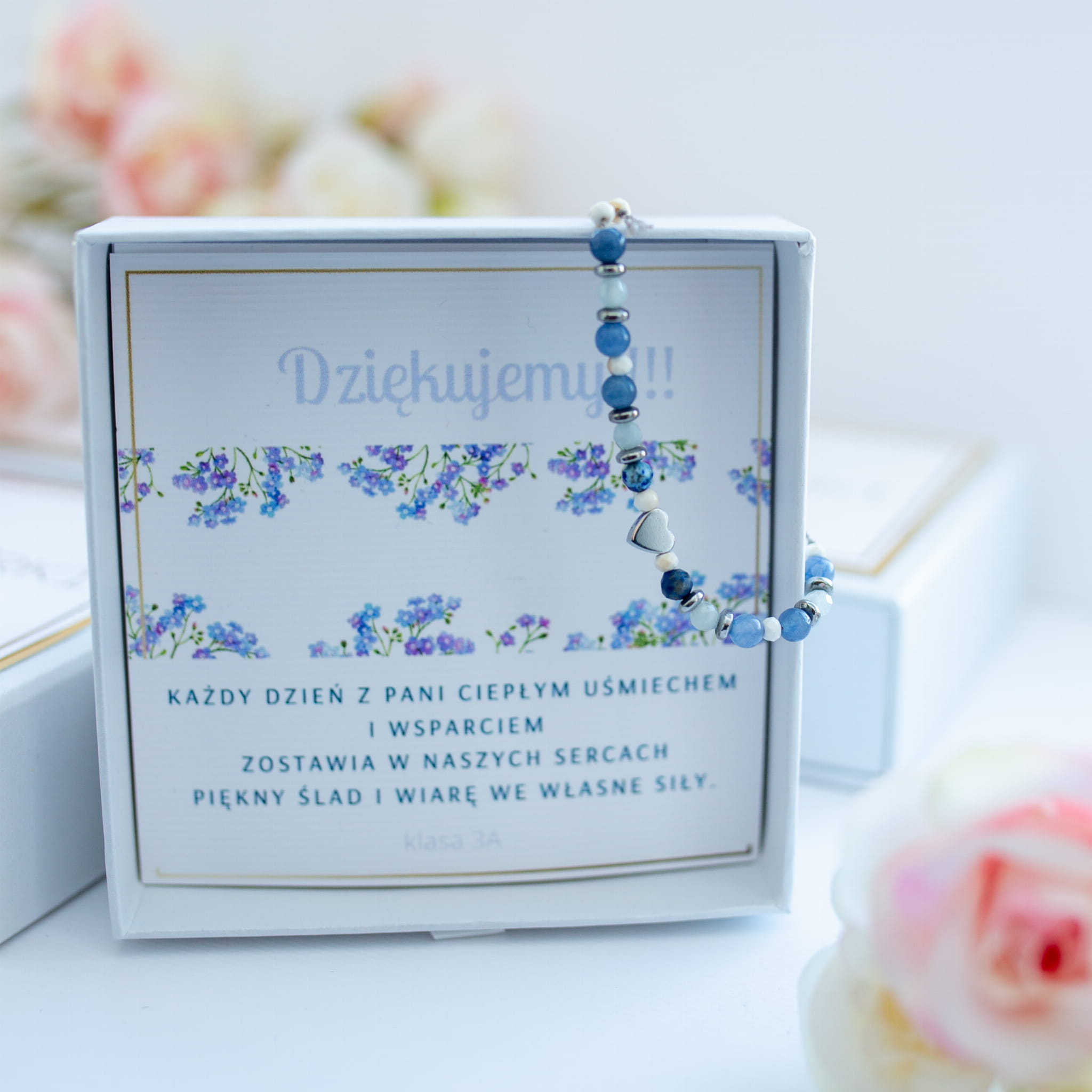 Bransoletka z DEDYKACJĄ na dzień nauczyciela, to delikatny rękodzielniczy wyrób dostępny w 2 wariantach kolorystycznych.