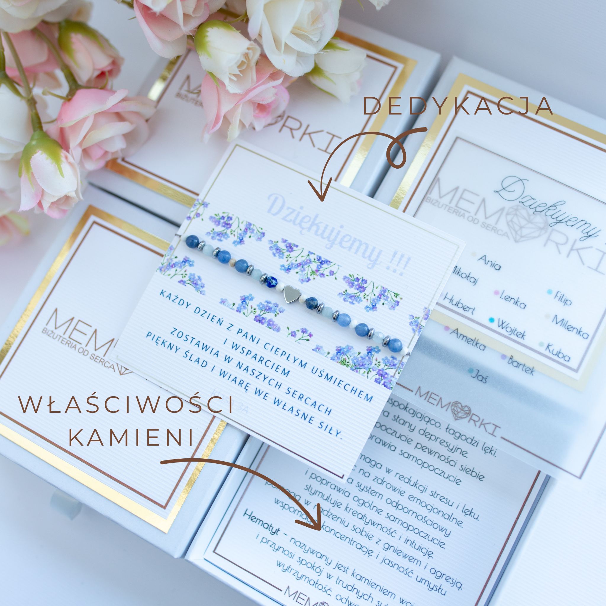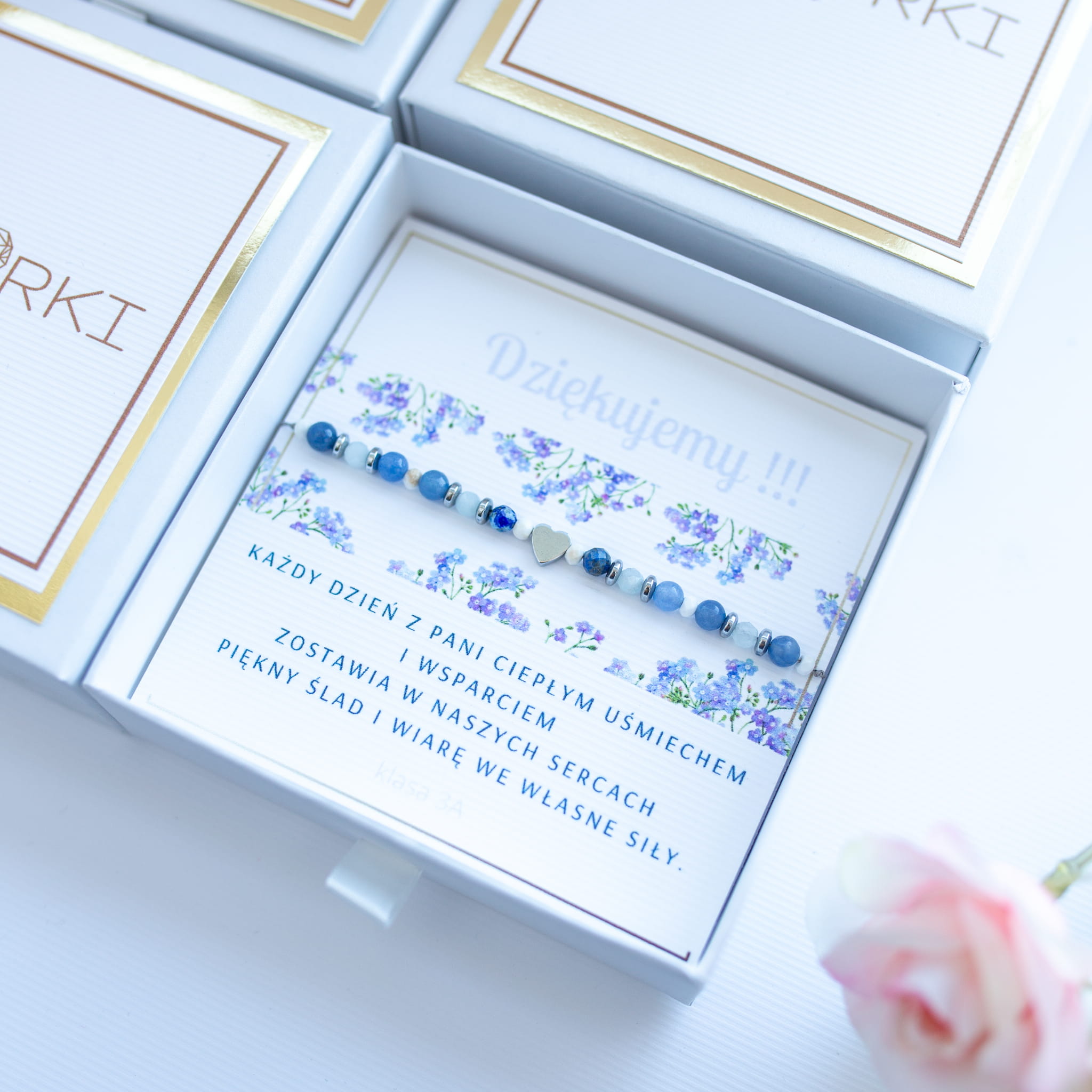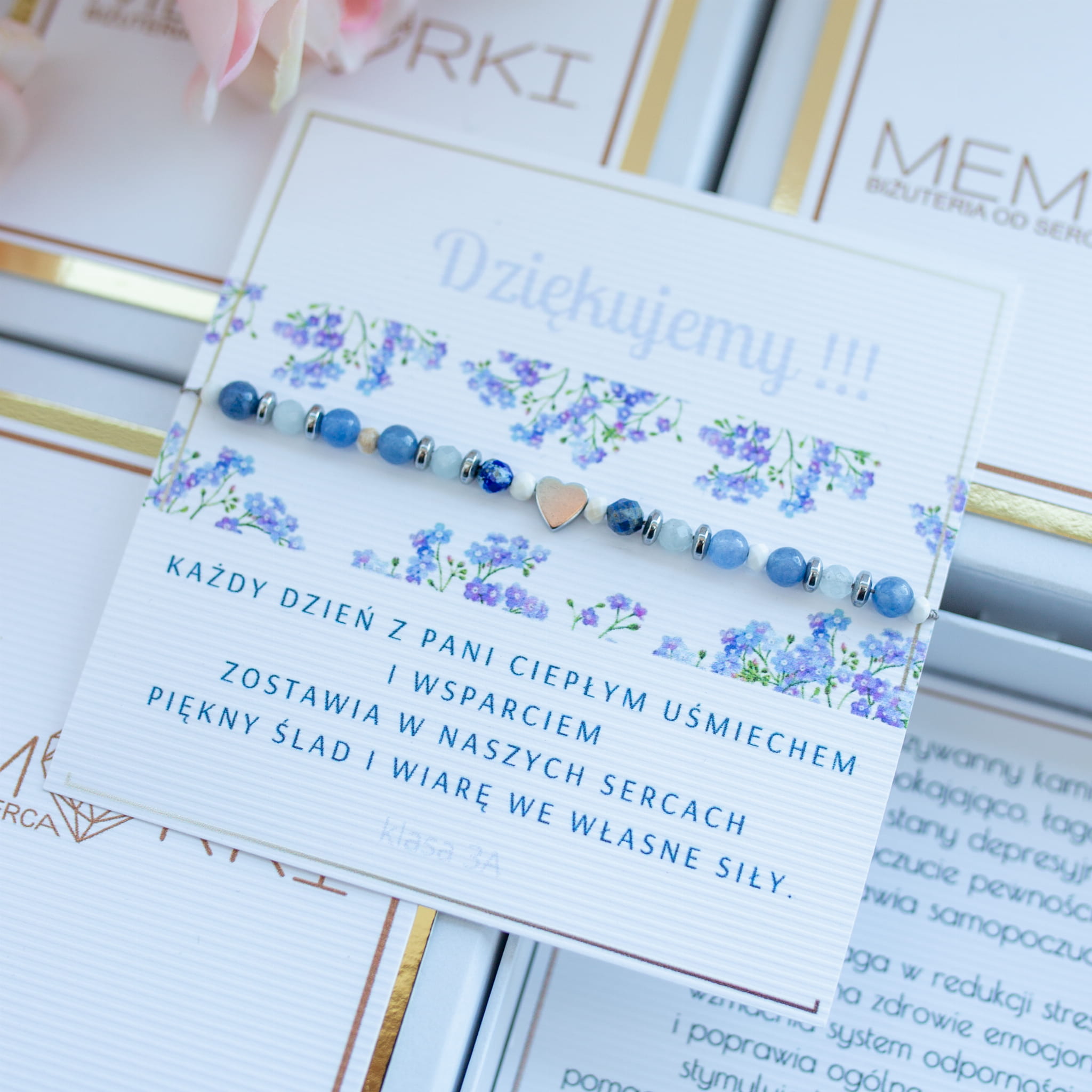 - BRANSOLETKĘ z ilością kamyczków = ilości dzieci (jako prezent od klasy) lub z ilością jak we wzorze (w przypadku zamówień indywidualnych)