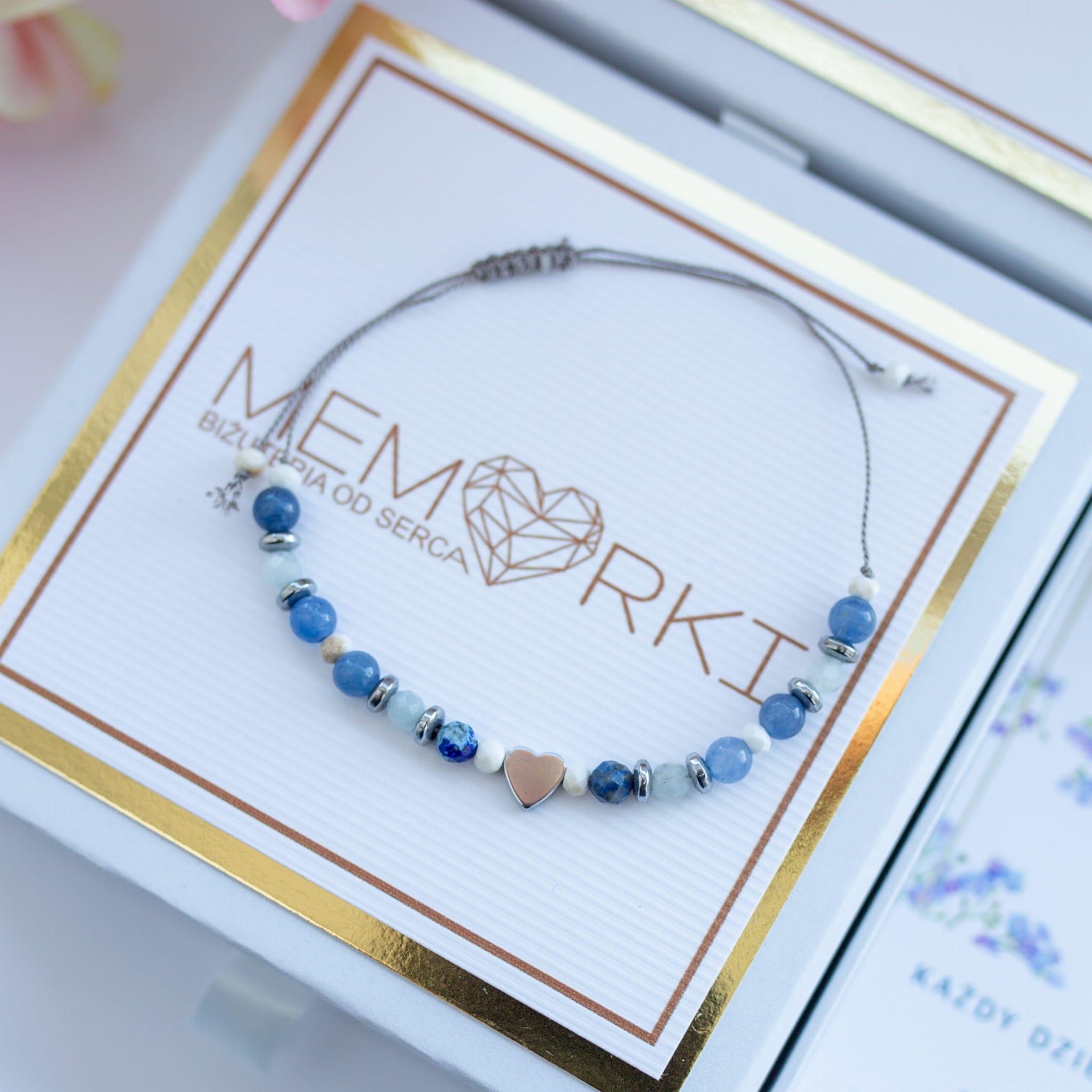 - Materiał 3: kamienie naturalne (4mm, serduszko 6mm).