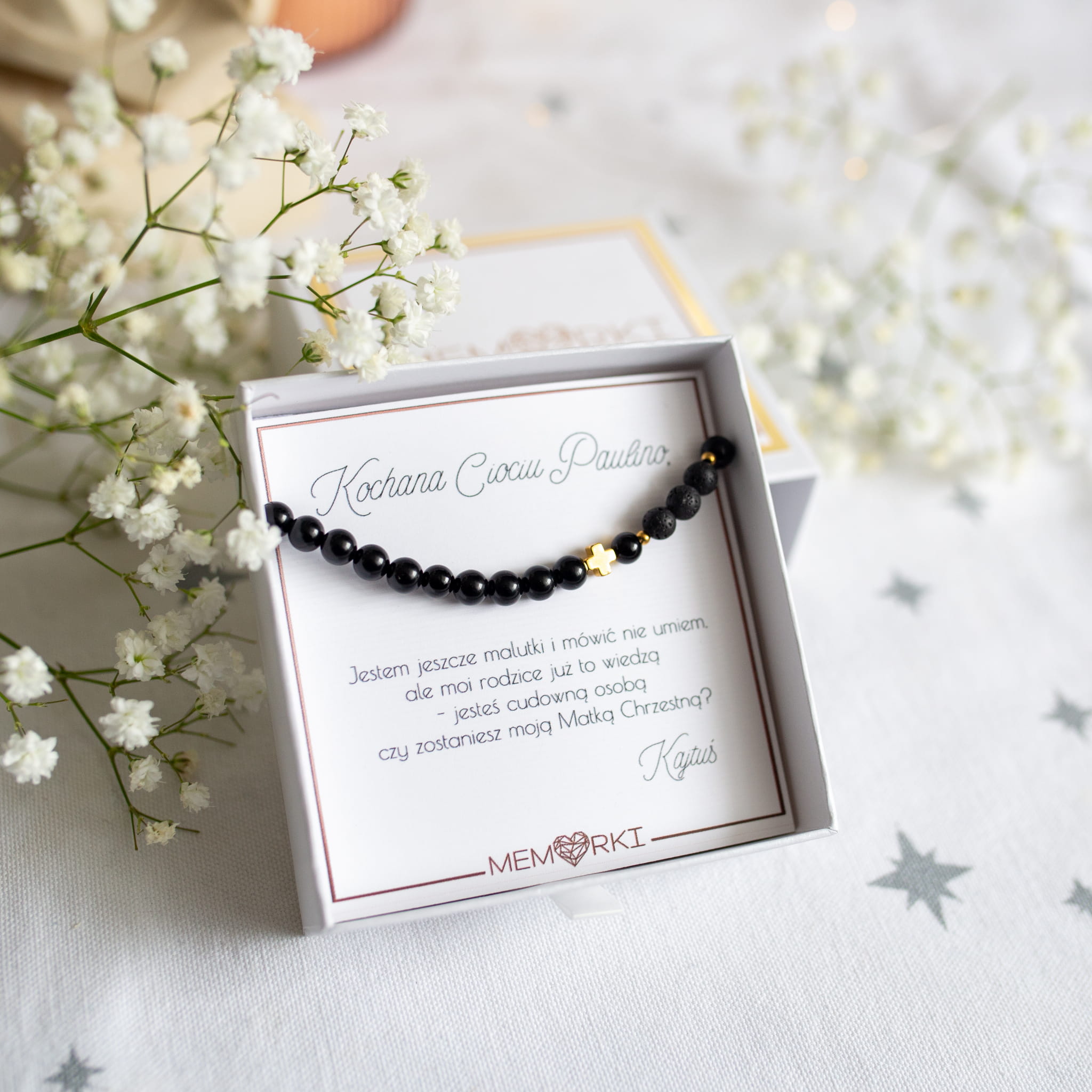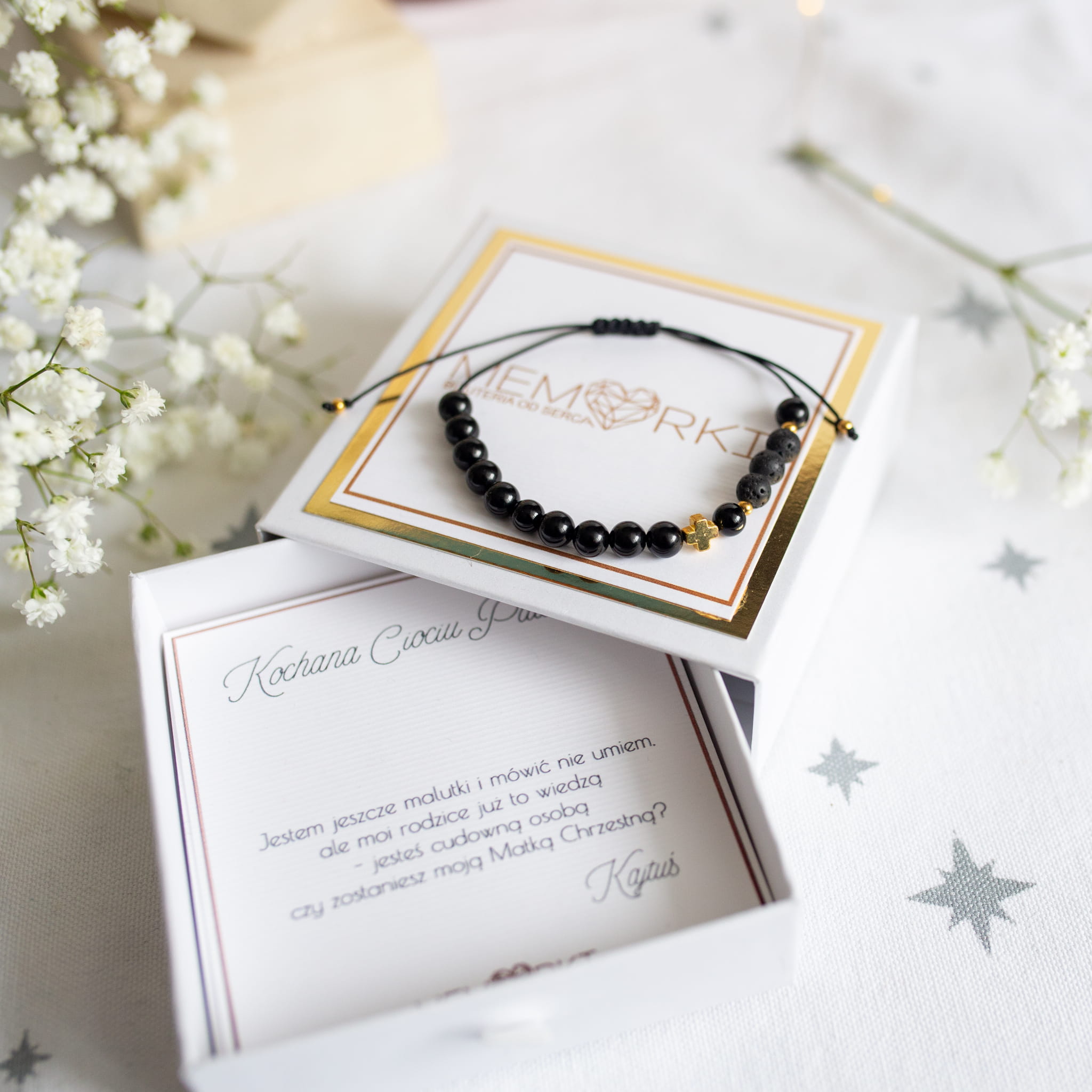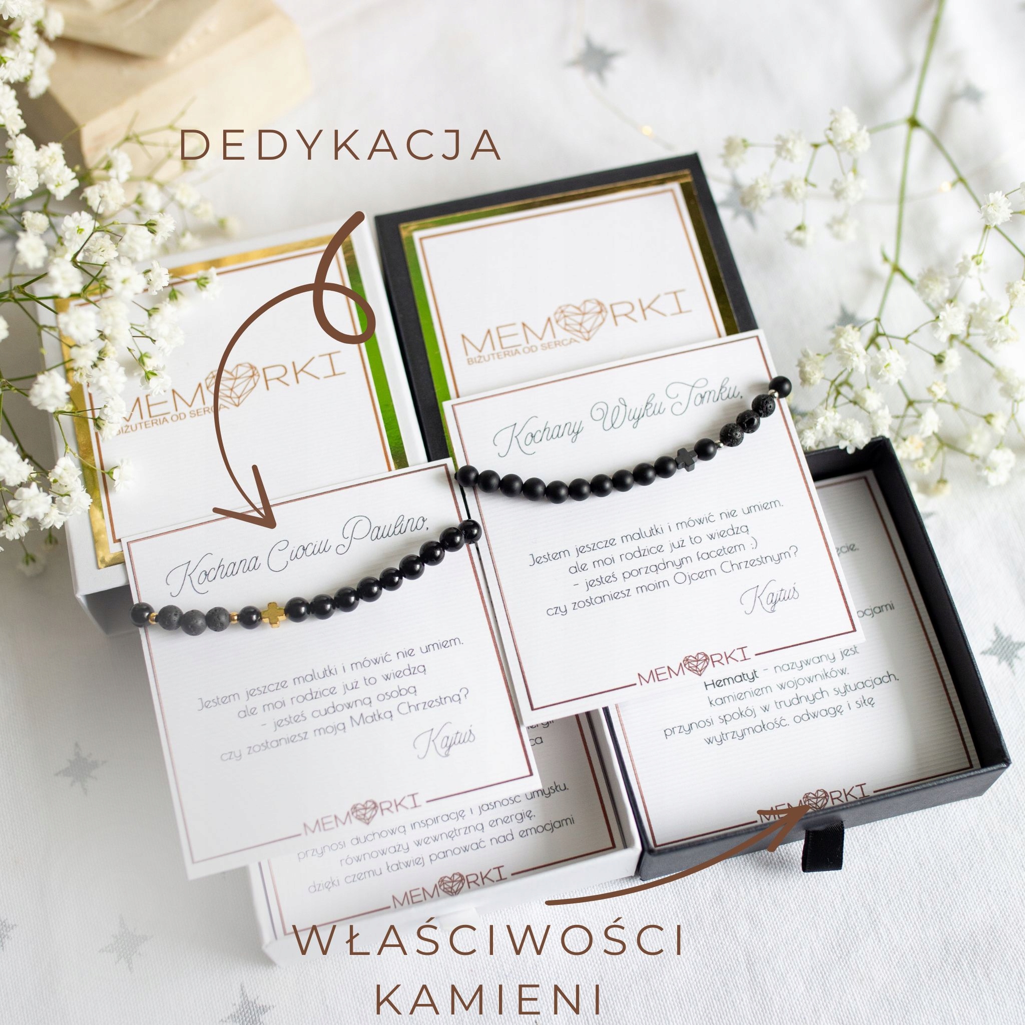 Ten elegancki komplet bransoletek z kamieni naturalnych został stworzony właśnie po to, aby w piękny, wzruszający i niezapomniany sposób podziękować za obecność RODZICÓW CHRZESTNYCH w życiu naszych dzieci.
