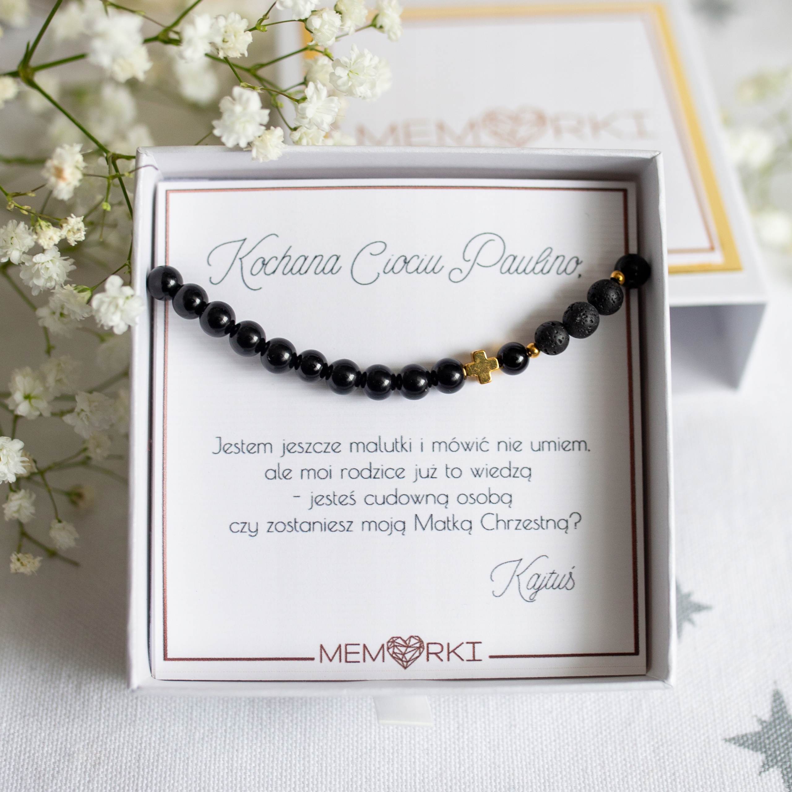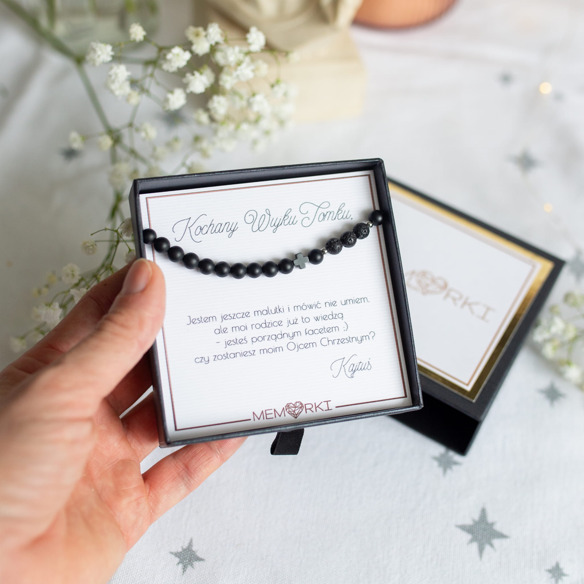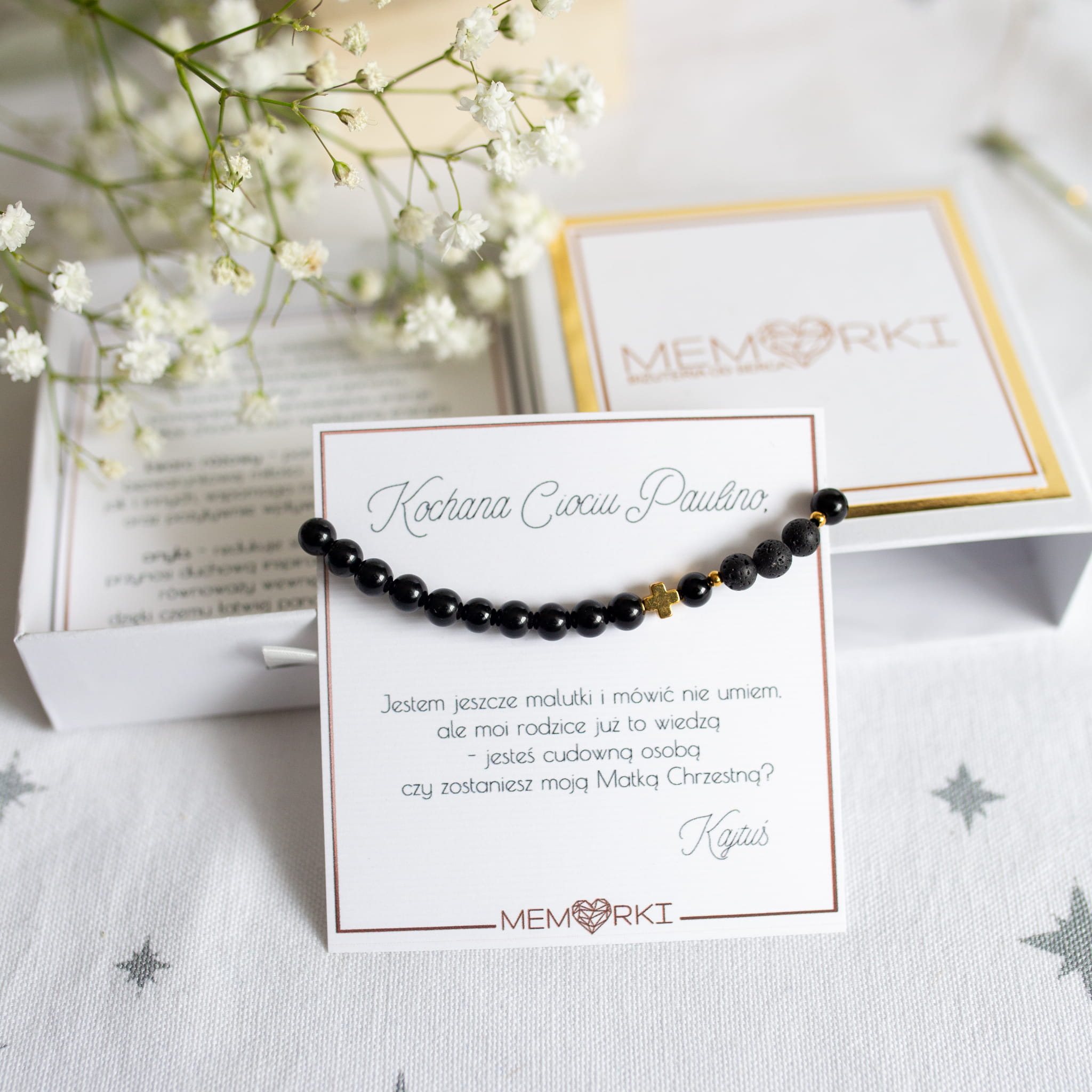 Ten elegancki komplet bransoletek z kamieni naturalnych został stworzony właśnie po to, aby w piękny, wzruszający i niezapomniany sposób podziękować za obecność RODZICÓW CHRZESTNYCH w życiu naszych dzieci.