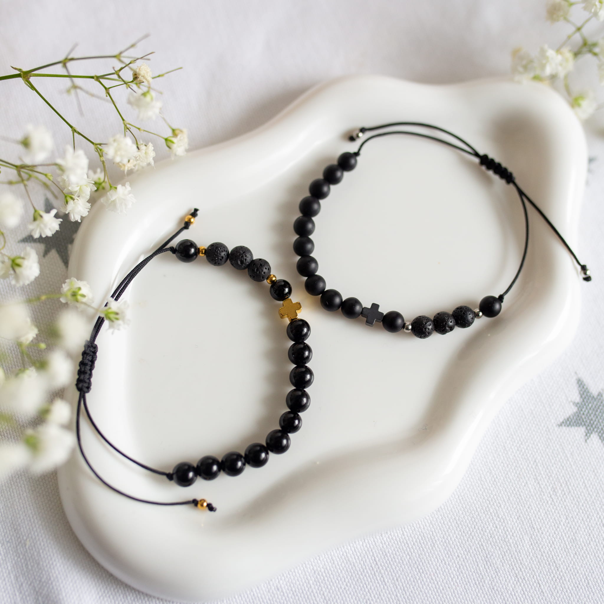 Bransoletki RÓŻAŃCE z krzyżykiem z hematytu to wyjątkowy komplet na wyjątkowe okazje.