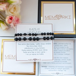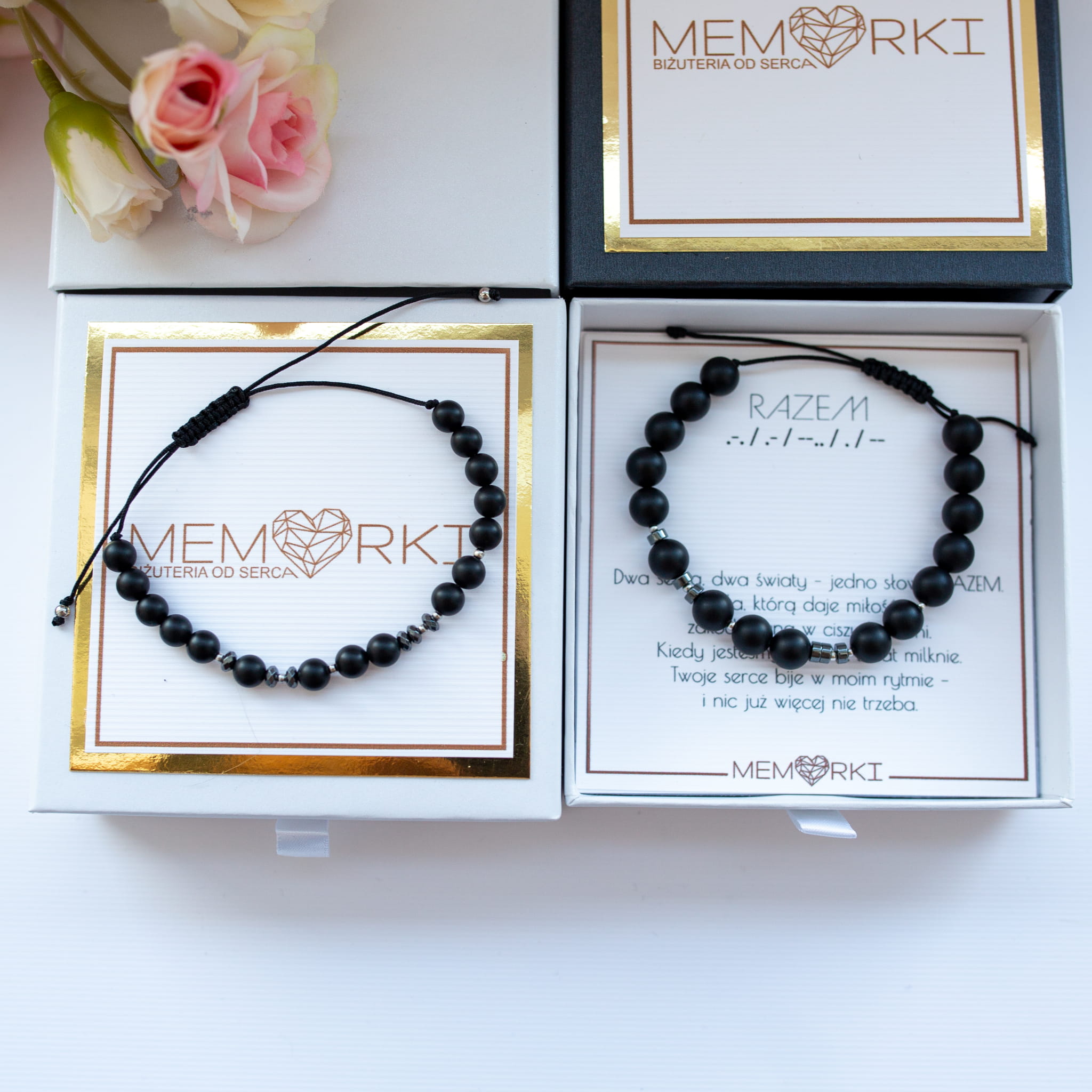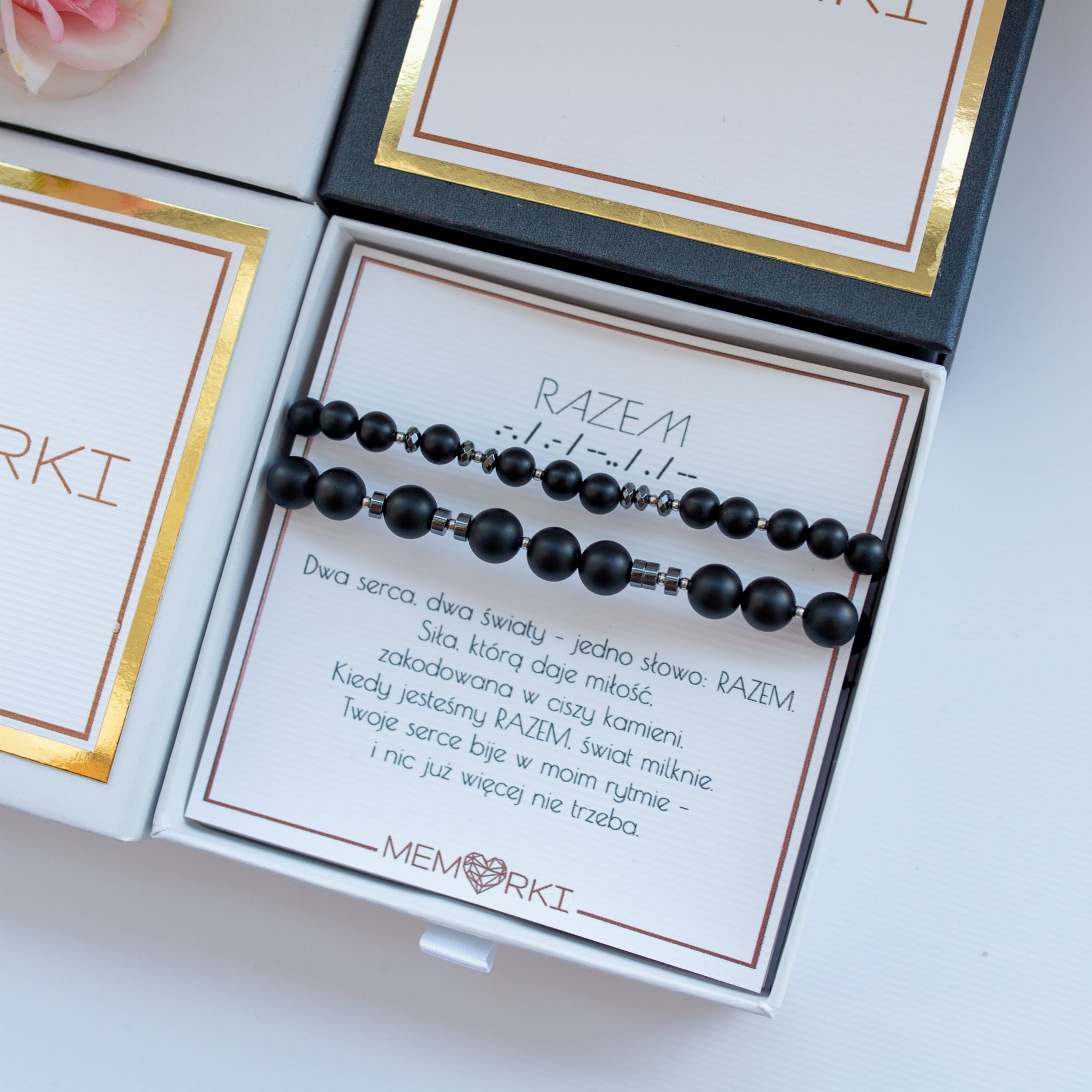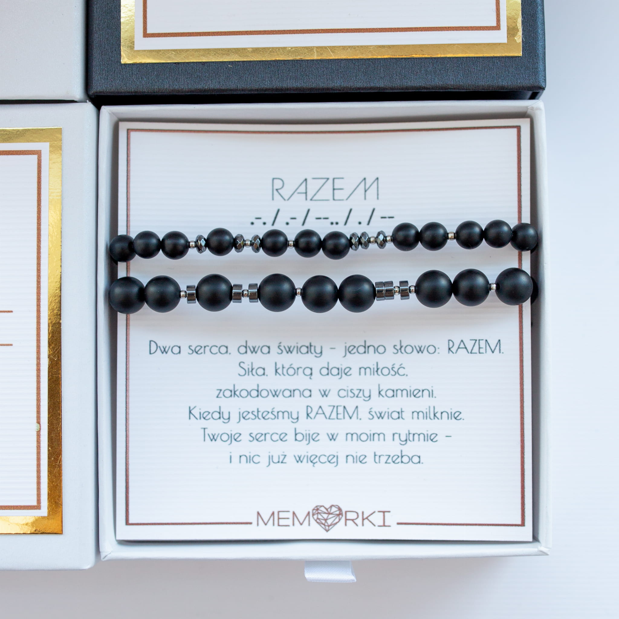 Bransoletki DLA PARY - Alfabet Morse'a "RAZEM" -kamienie i stal DEDYKACJA