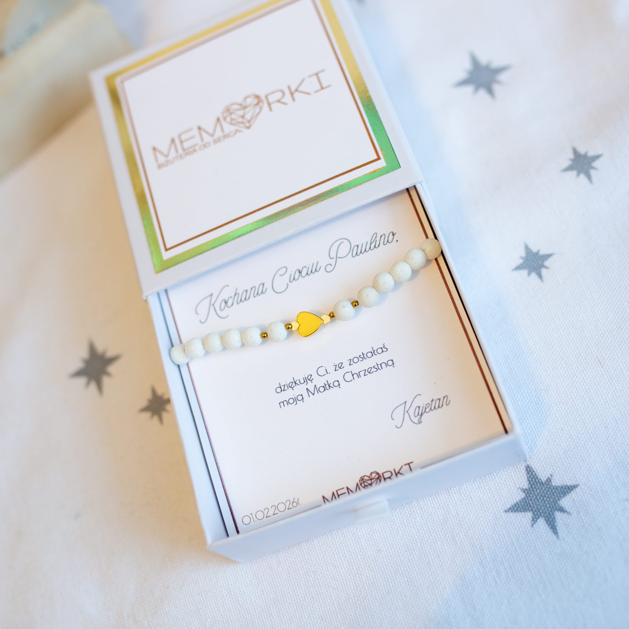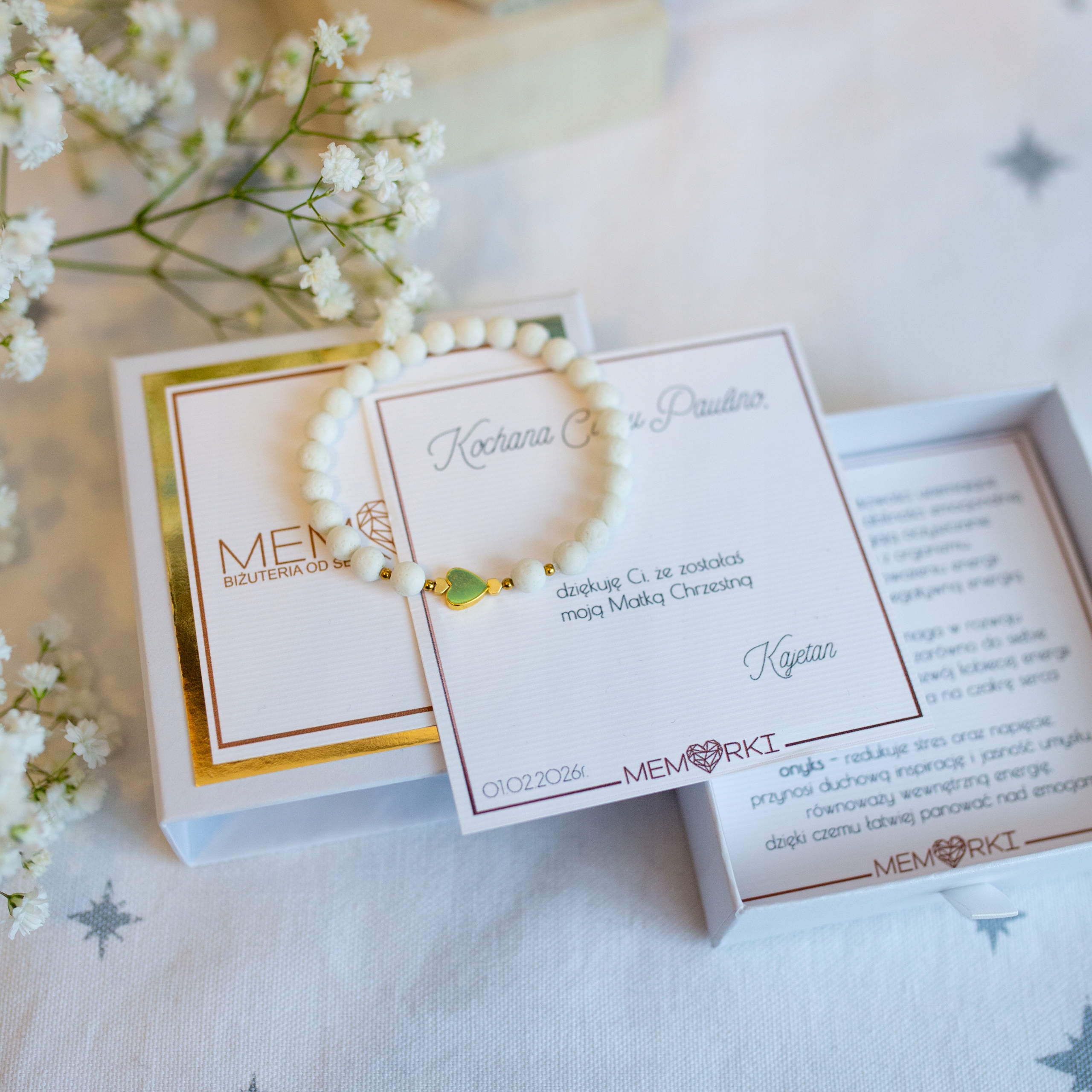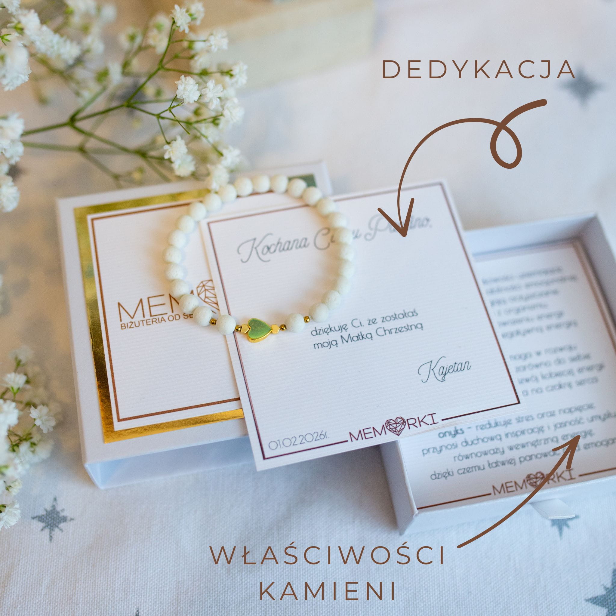 Bransoletki z kamieni z DEDYKACJĄ i podziękowaniem dla Matki Chrzestnej