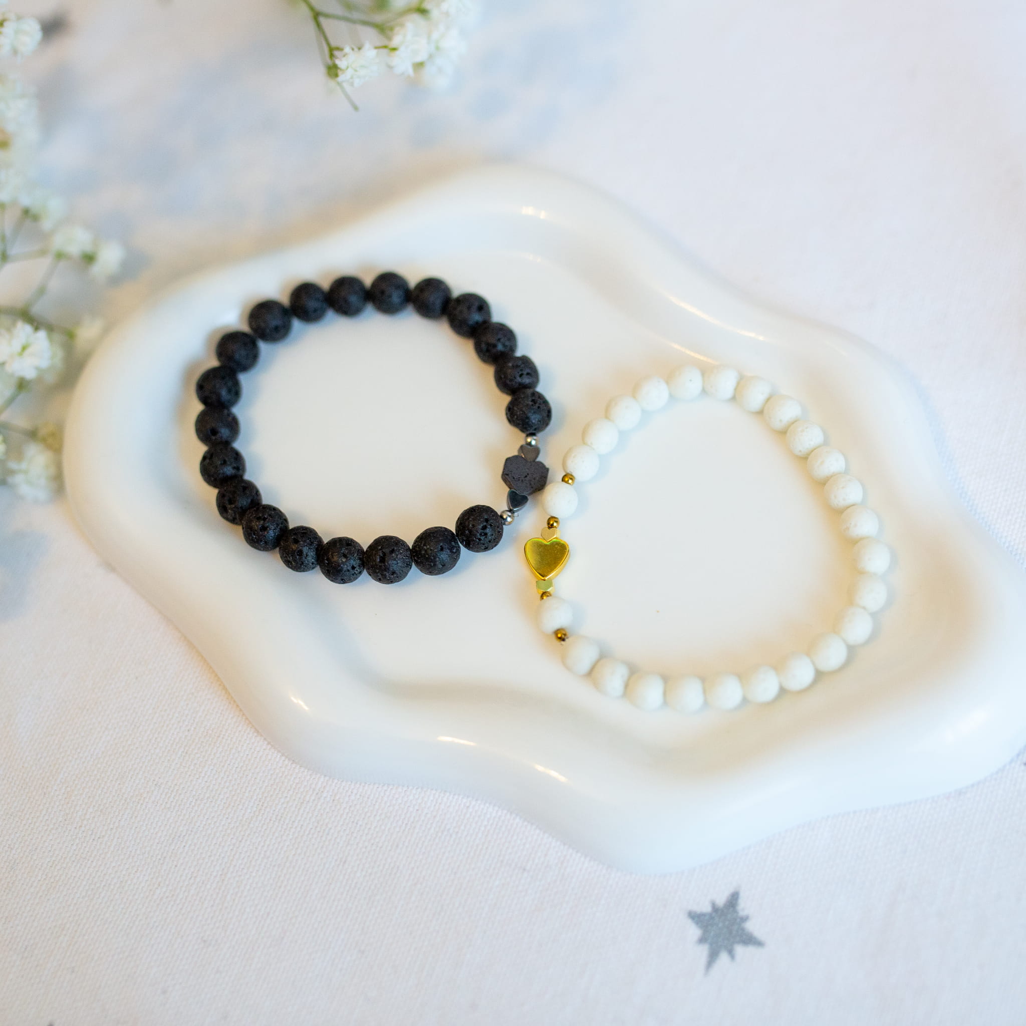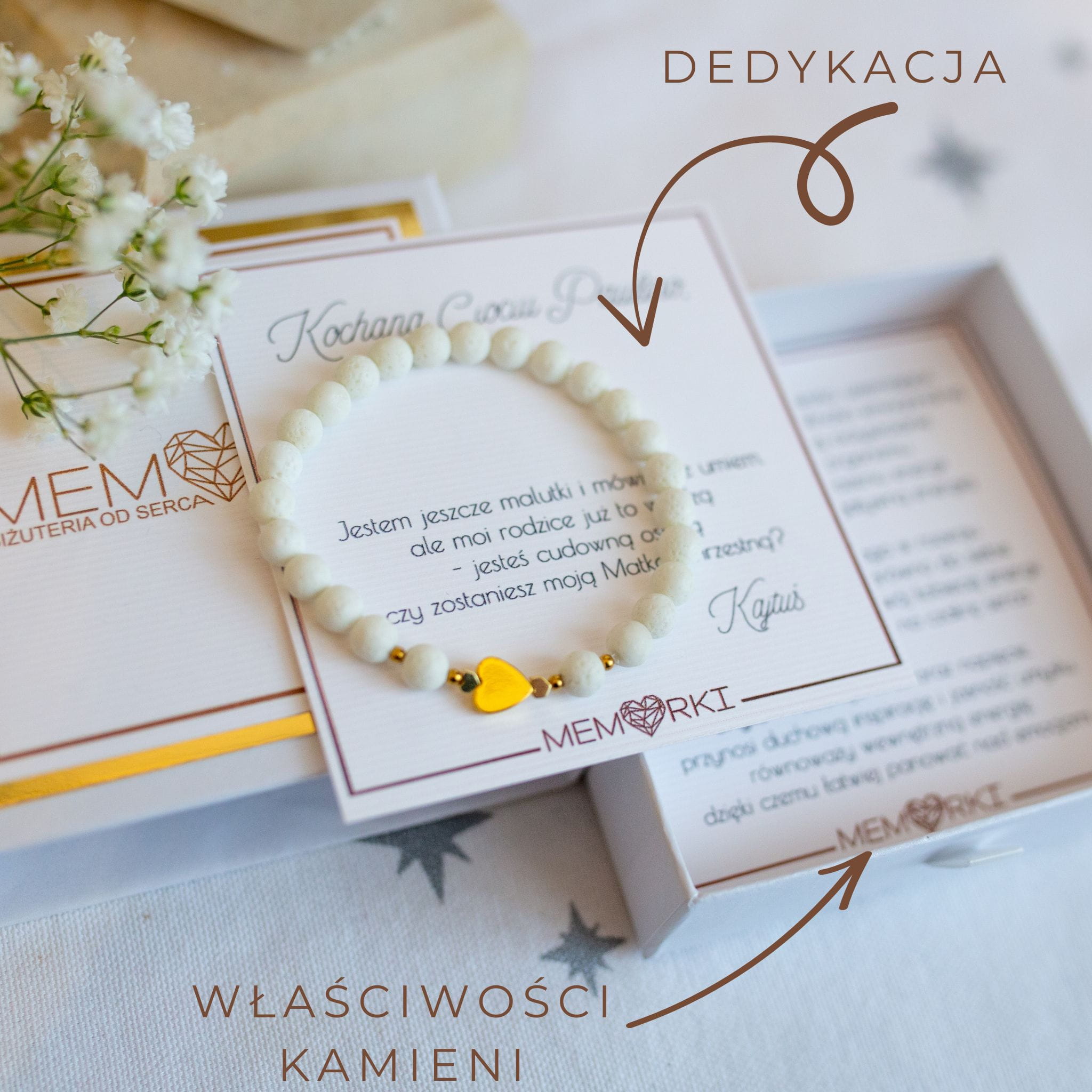 Ten elegancki komplet bransoletek z kamieni naturalnych został stworzony właśnie po to, aby w piękny, wzruszający i niezapomniany sposób zadać jedno z najważniejszych pytań: