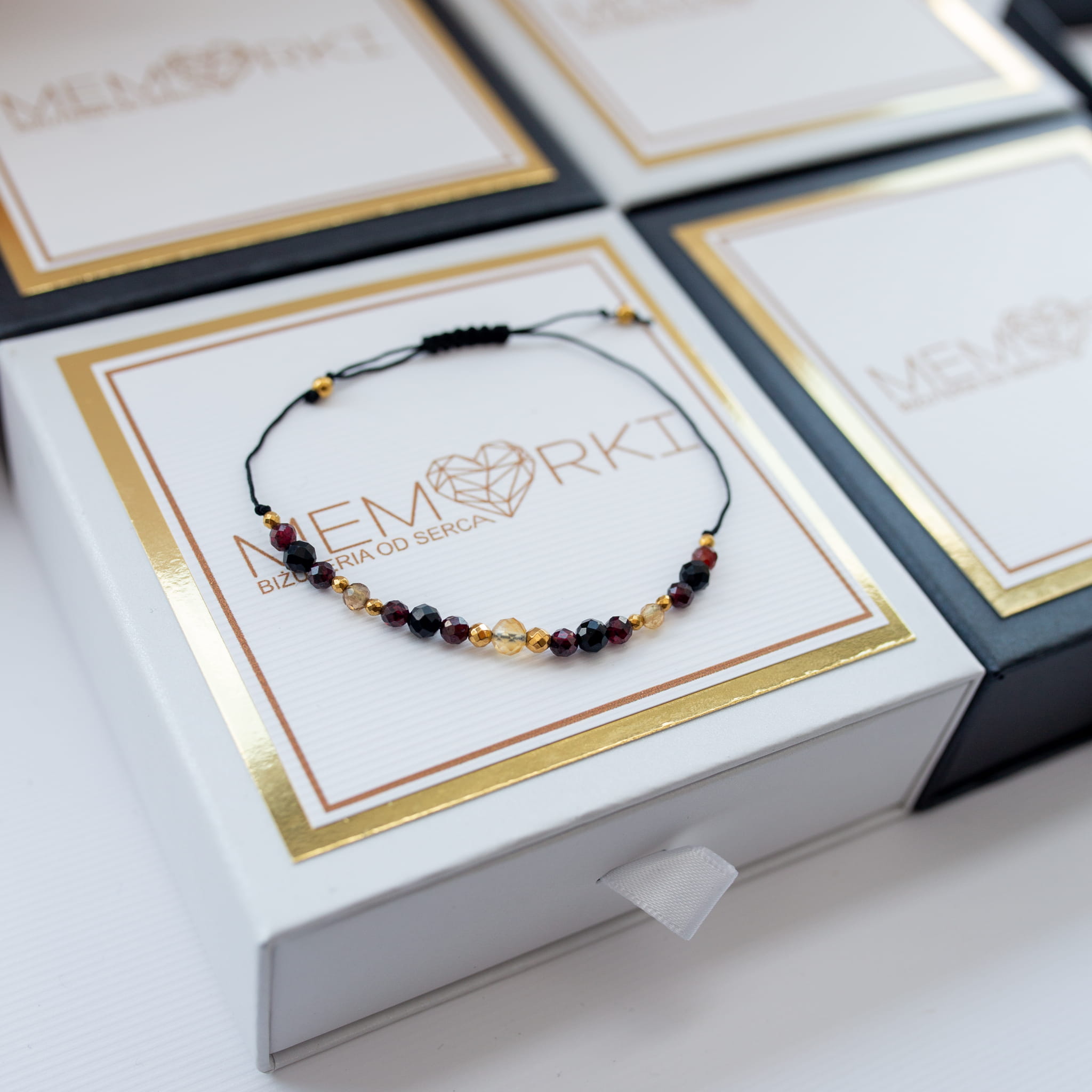 Każda bransoletka zapakowana jest w eleganckie ekologiczne pudełeczko do wyboru w kolorze CZARNYM lub BIAŁYM.
