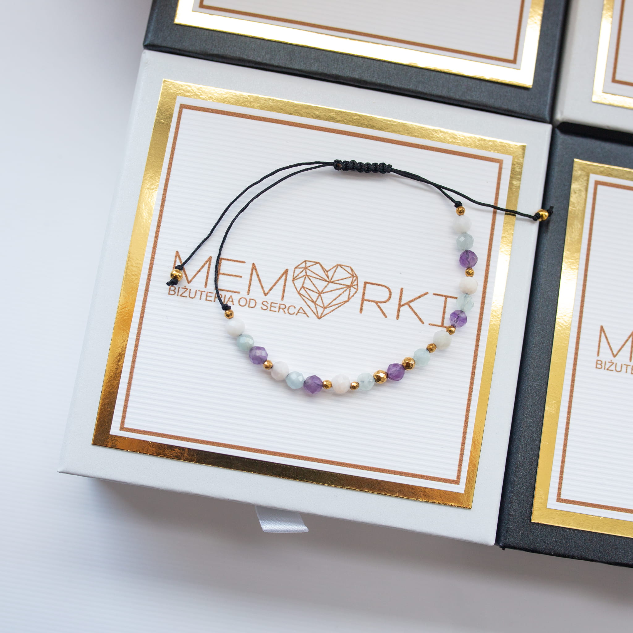 Każda bransoletka zapakowana jest w eleganckie ekologiczne pudełeczko do wyboru w kolorze CZARNYM lub BIAŁYM.