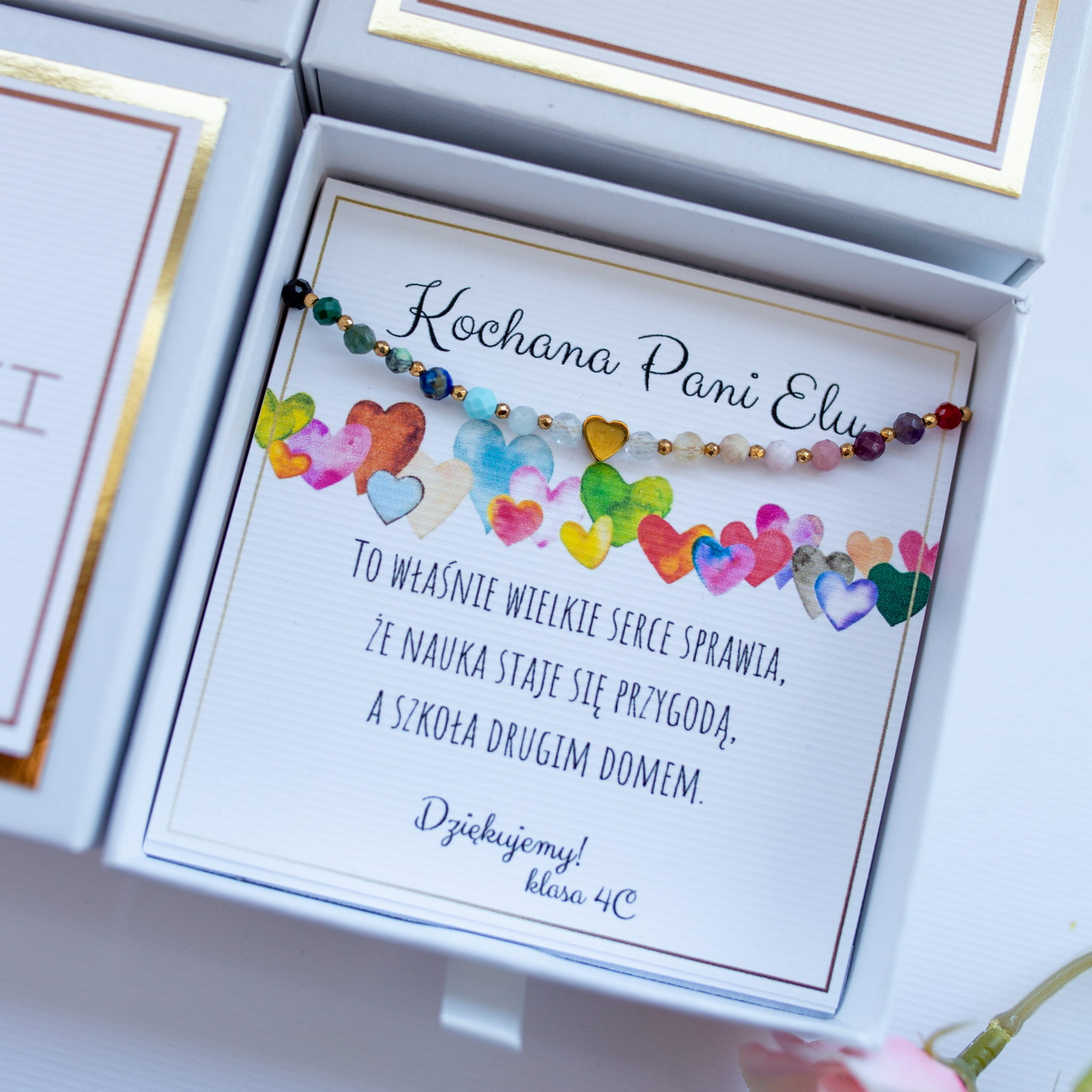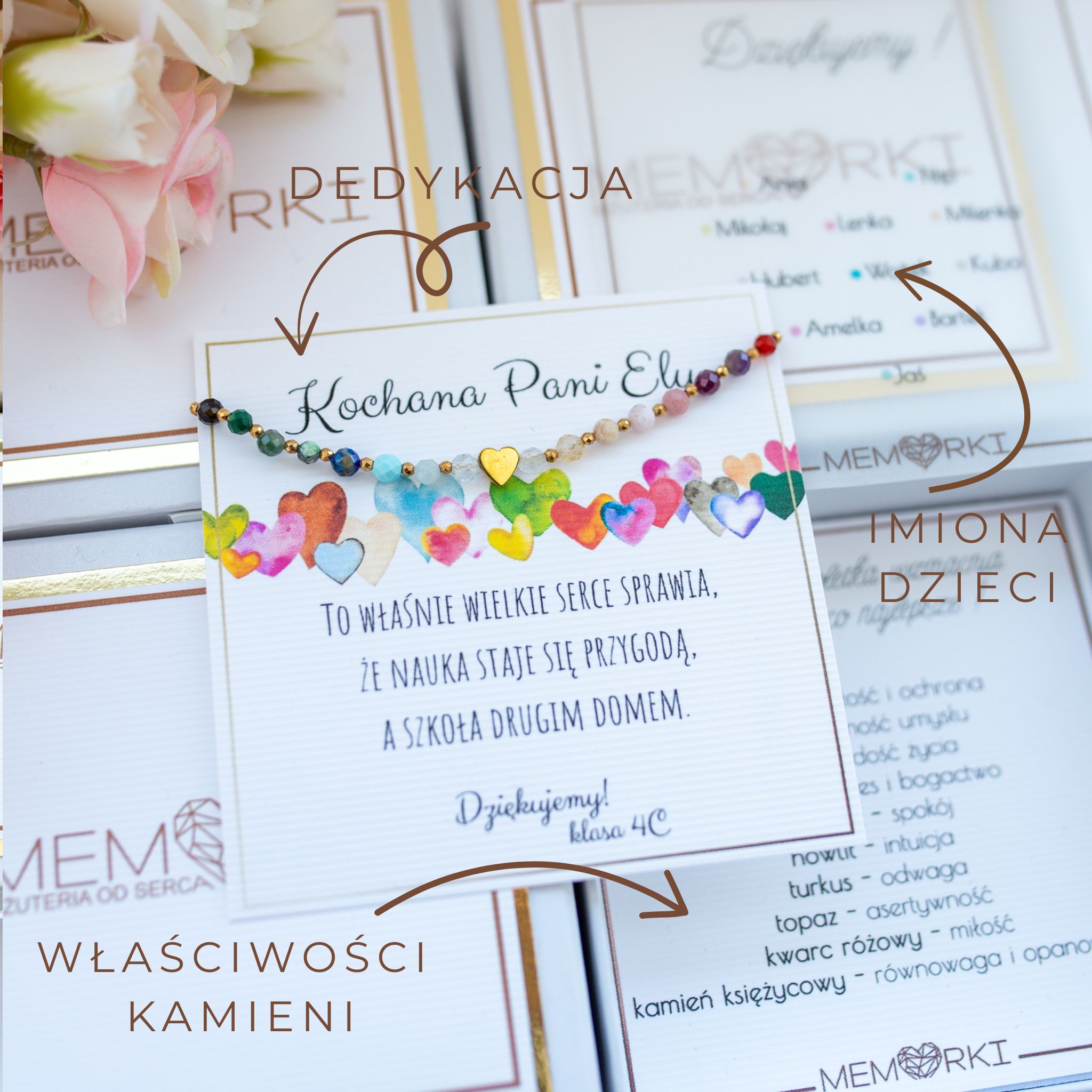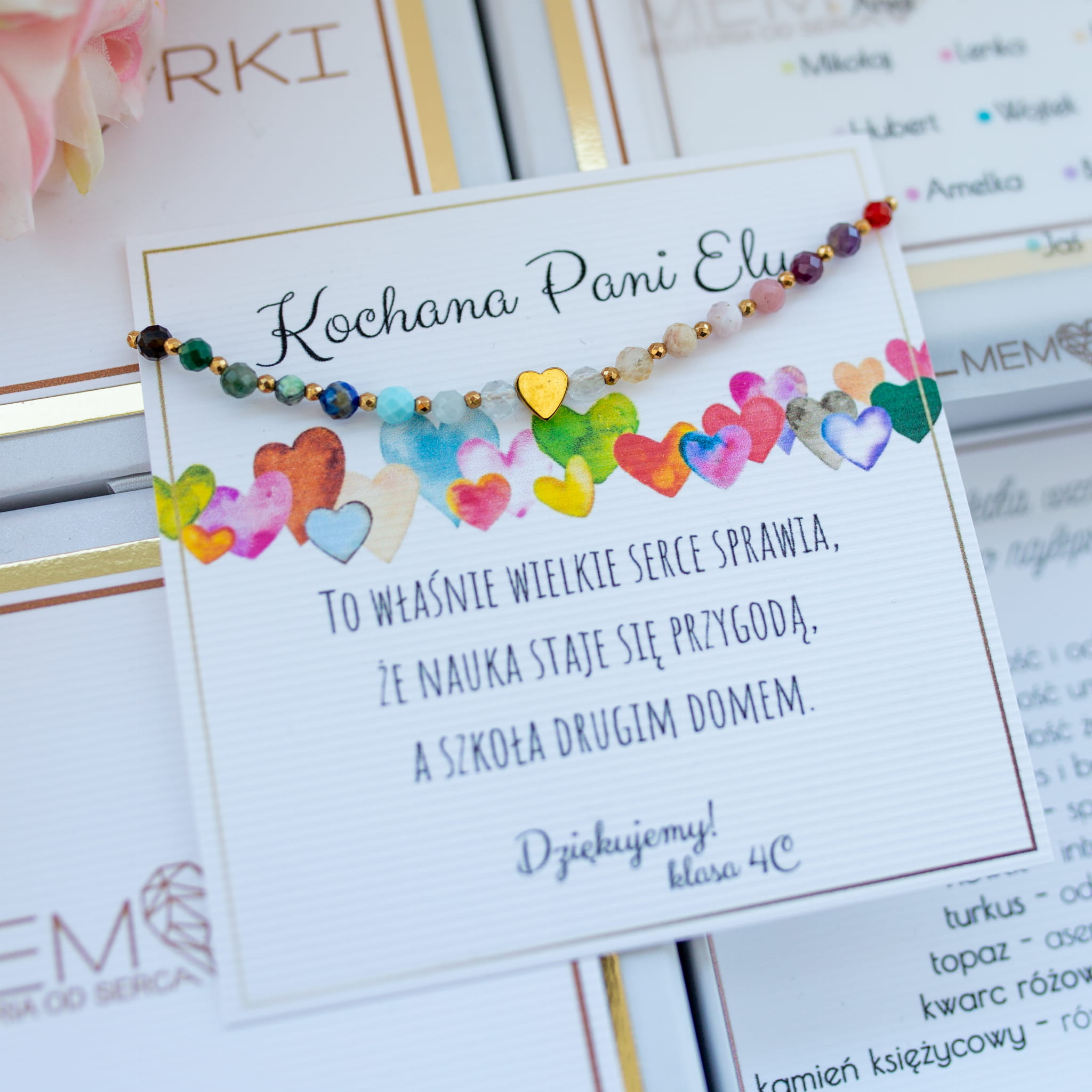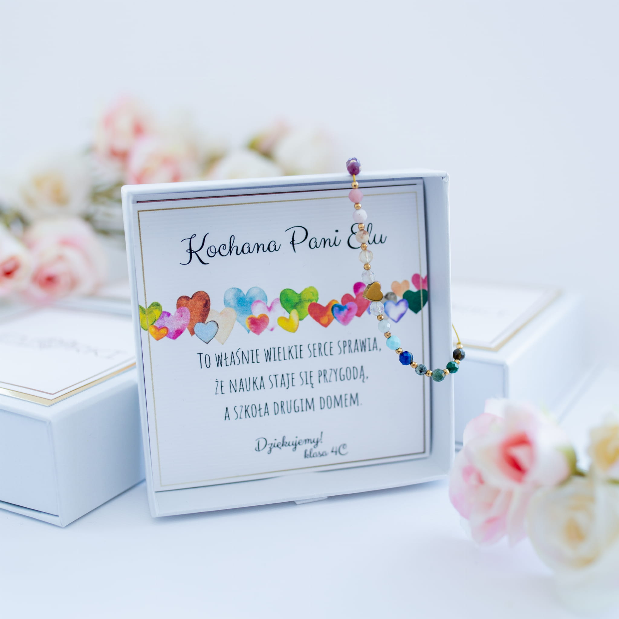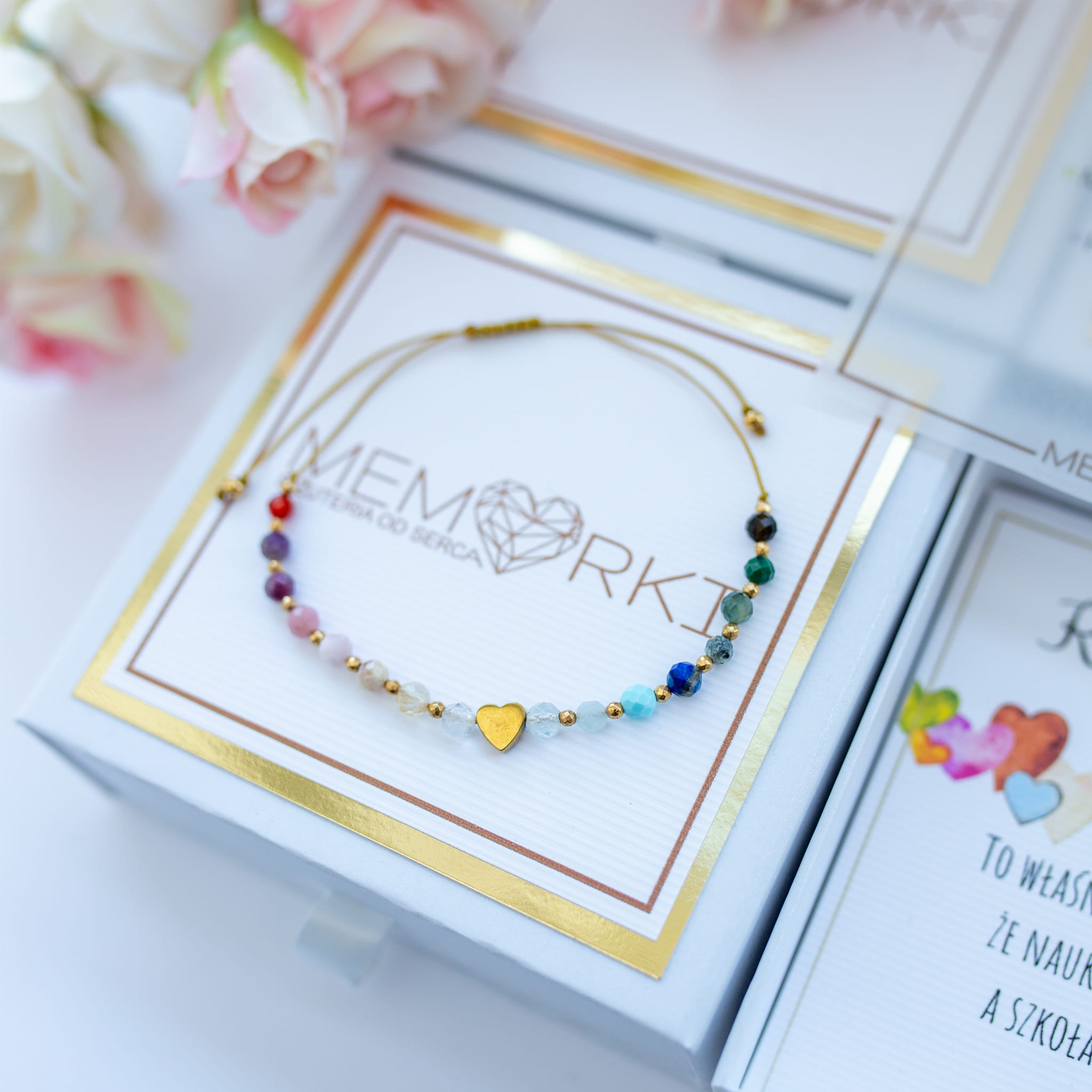 Kolorowa bransoletka z serduszkiem na DZIEŃ NAUCZYCIELA _ kamienie i stal