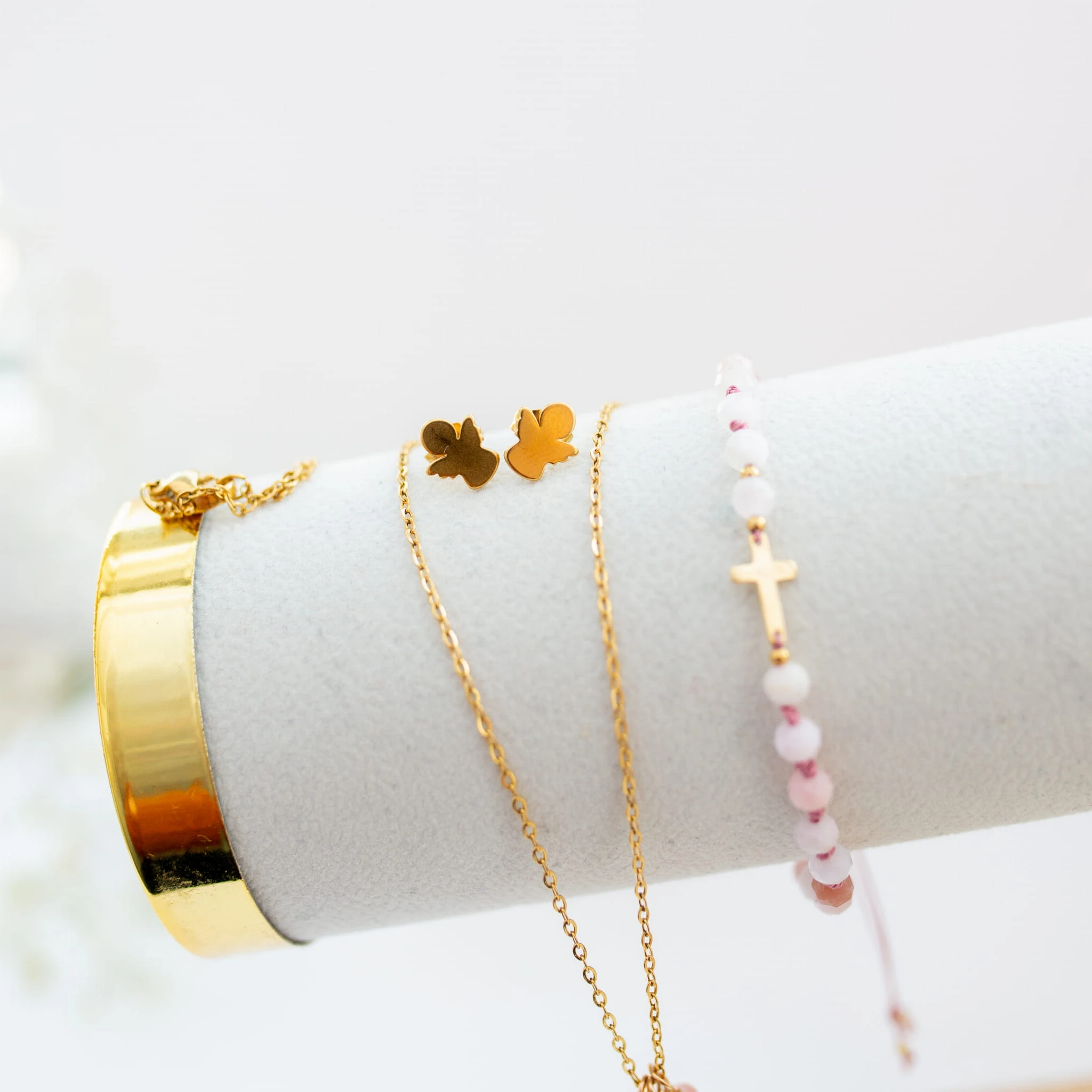 Łańcuszek z zawieszką + kolczyki + bransoletka w formie 10 różańca