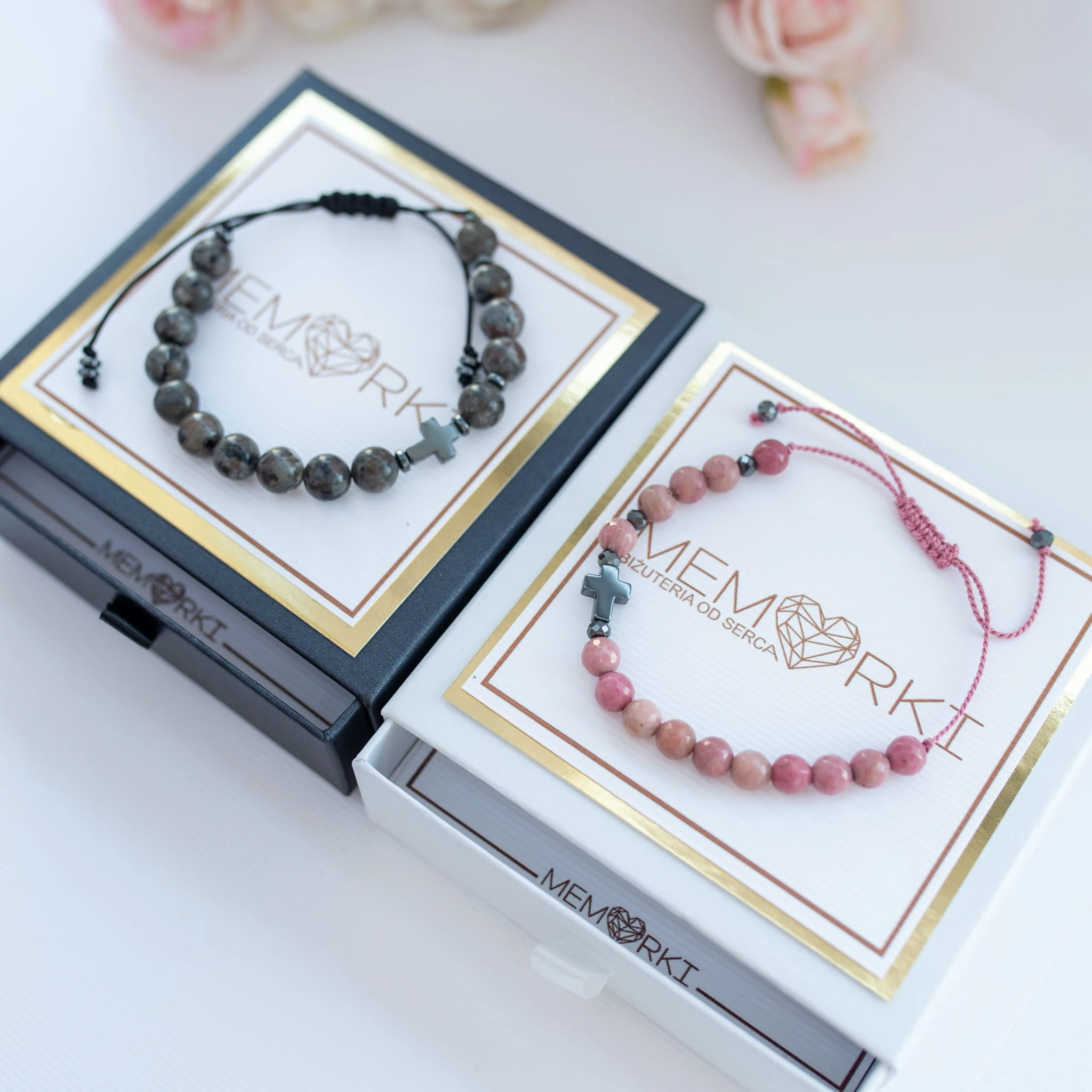 Każda bransoletka zapakowana jest w eleganckie ekologiczne pudełeczko do wyboru w kolorze CZARNYM lub BIAŁYM.