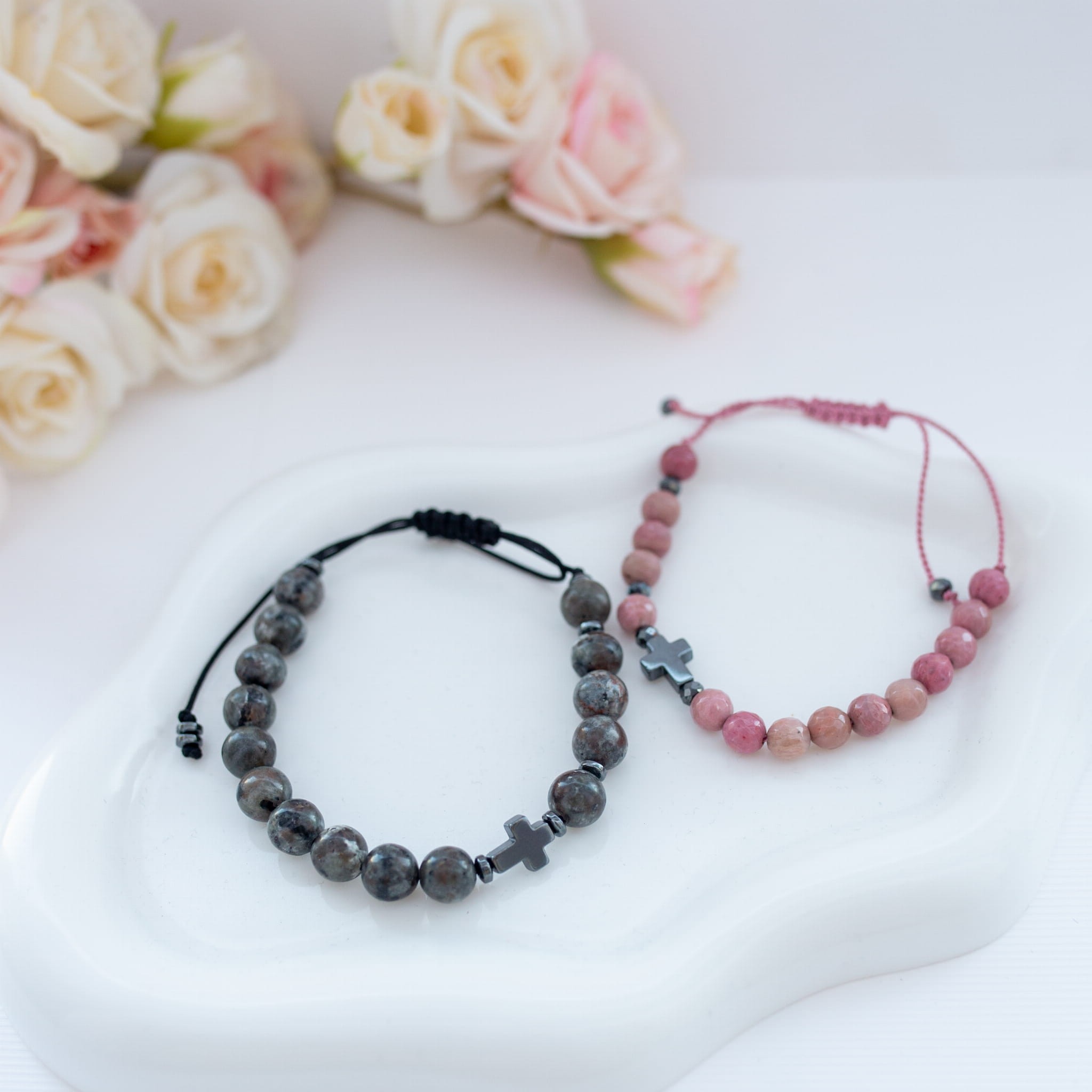 Bransoletki 10 różańca z krzyżykiem z hematytu to wyjątkowy komplet na wyjątkowe okazje.