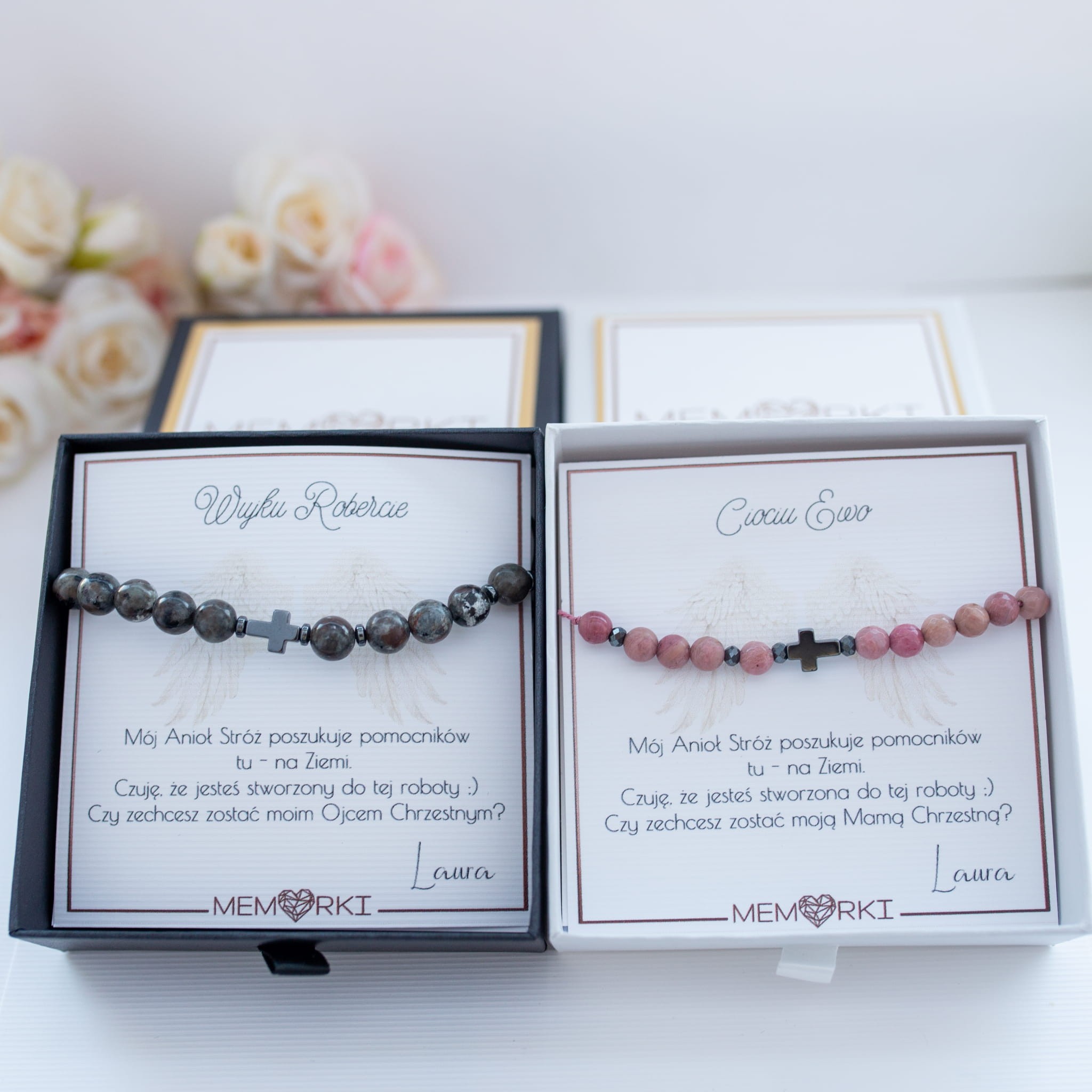 Ten elegancki komplet bransoletek z kamieni naturalnych został stworzony właśnie po to, aby w piękny, wzruszający i niezapomniany sposób podziękować za ICH obecność w życiu naszych dzieci.