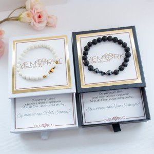 Każda bransoletka zapakowana jest w eleganckie ekologiczne pudełeczko do wyboru w kolorze CZARNYM lub BIAŁYM.